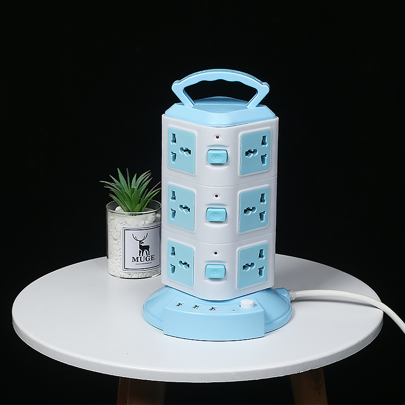 便携USB多孔充电手提立式插排 家用移动式多层开关插排电源插座