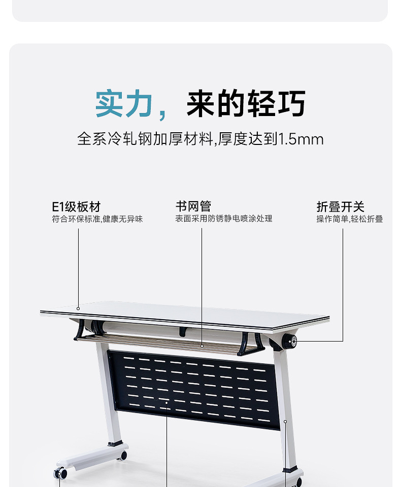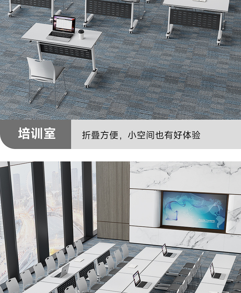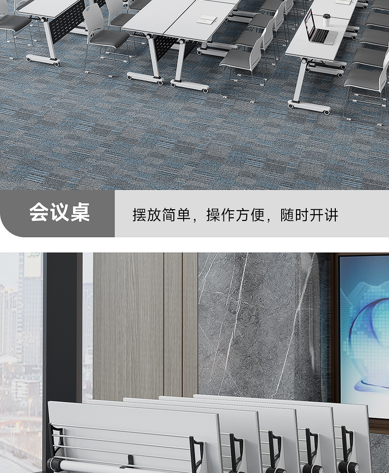 会议桌折叠培训桌移动办公桌职员可折叠桌子可拼接培训课桌椅组合