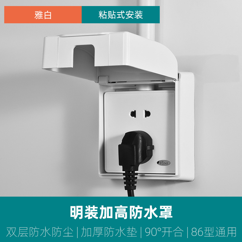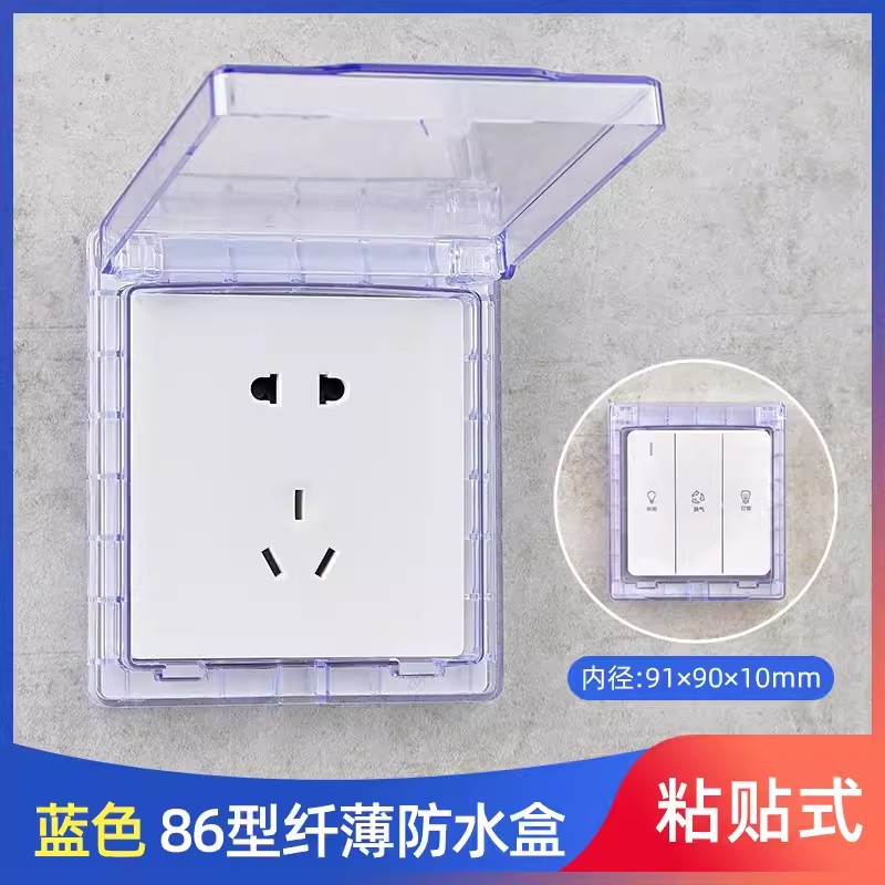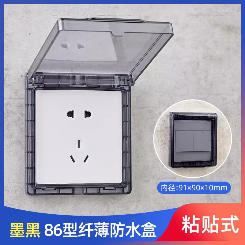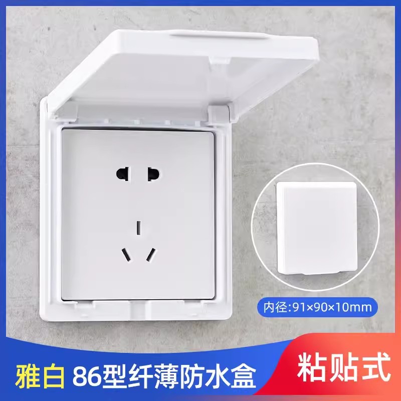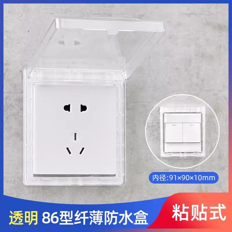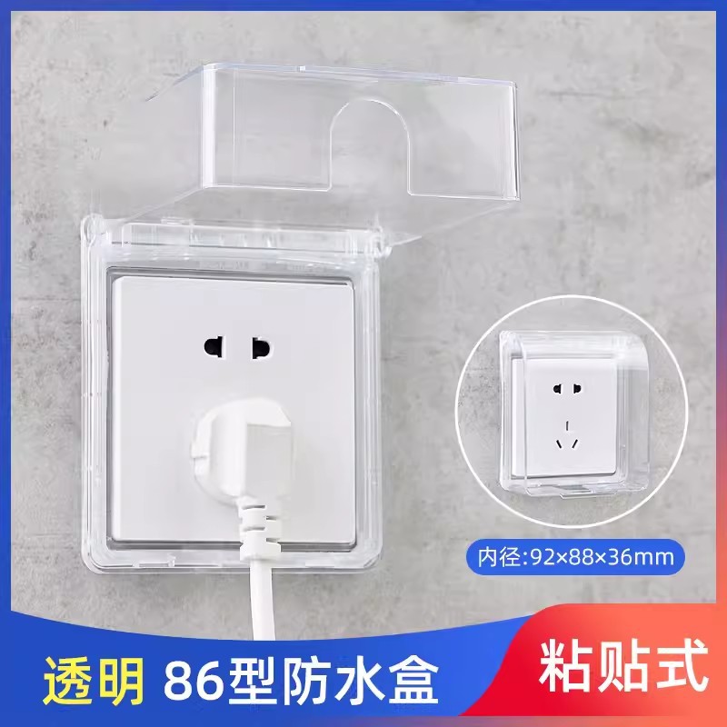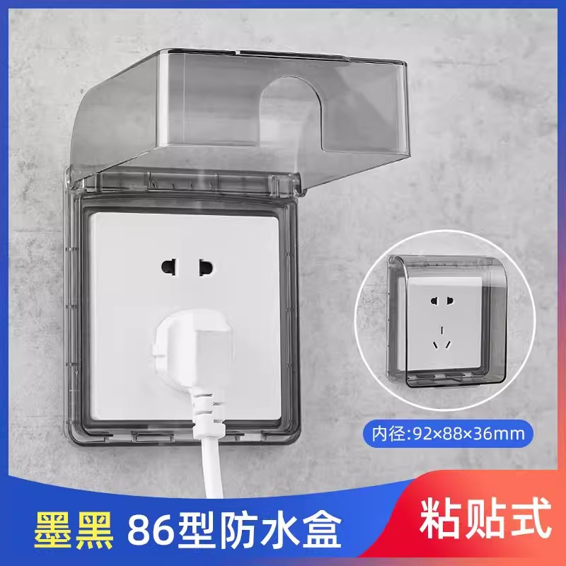 86型粘贴式防水插座盒卫生间浴室开关防水罩保护盖插头挡水保护盒