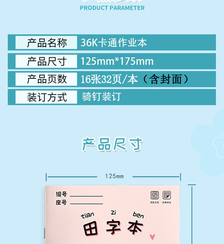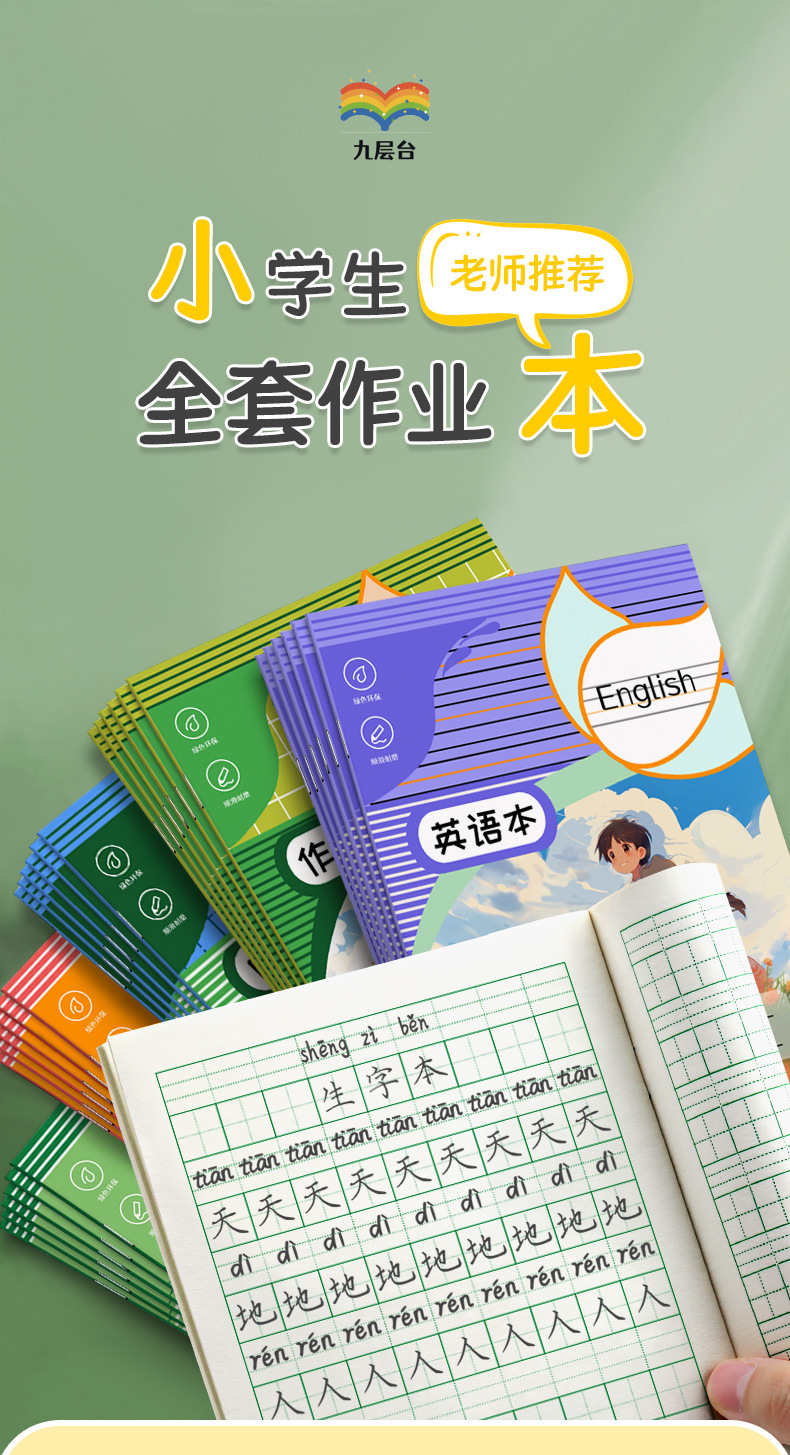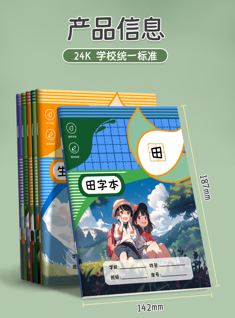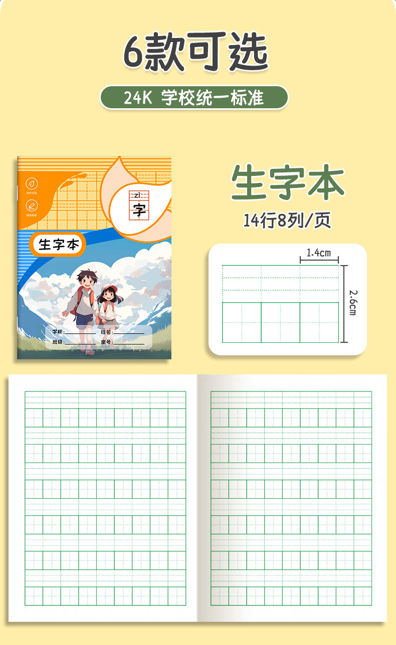 田字格小学生作业本拼音本生字本一二年级练习本幼儿园语文数学薄