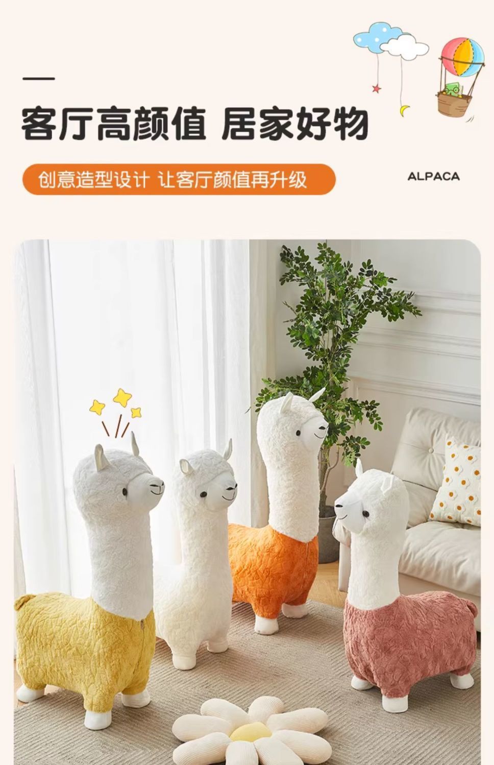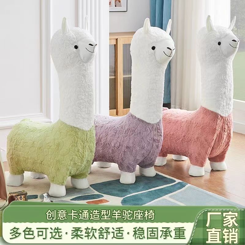 创意羊驼坐凳轻奢动物凳子落地儿童手工摆件北欧换鞋节日礼物