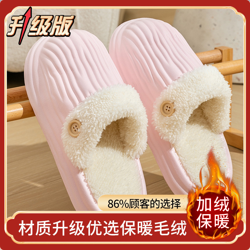踩屎感棉拖鞋女秋冬季室内家居厚底加绒防滑防水外穿棉拖男款冬天