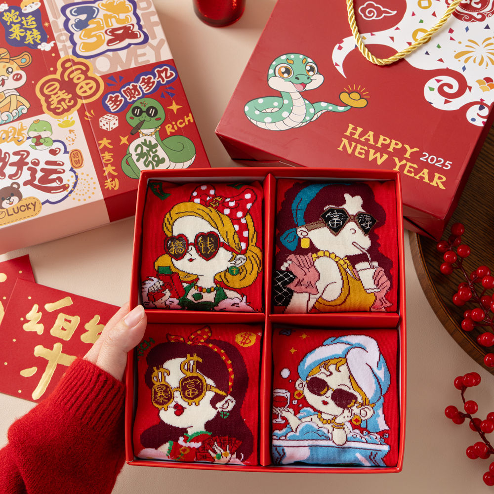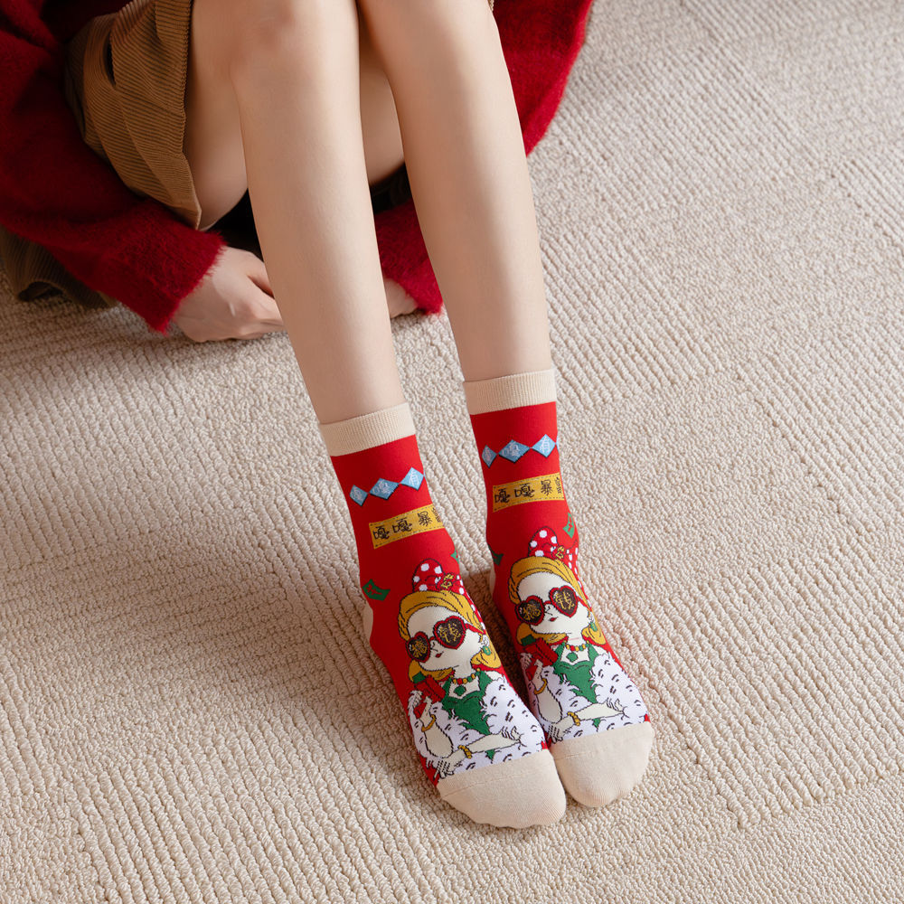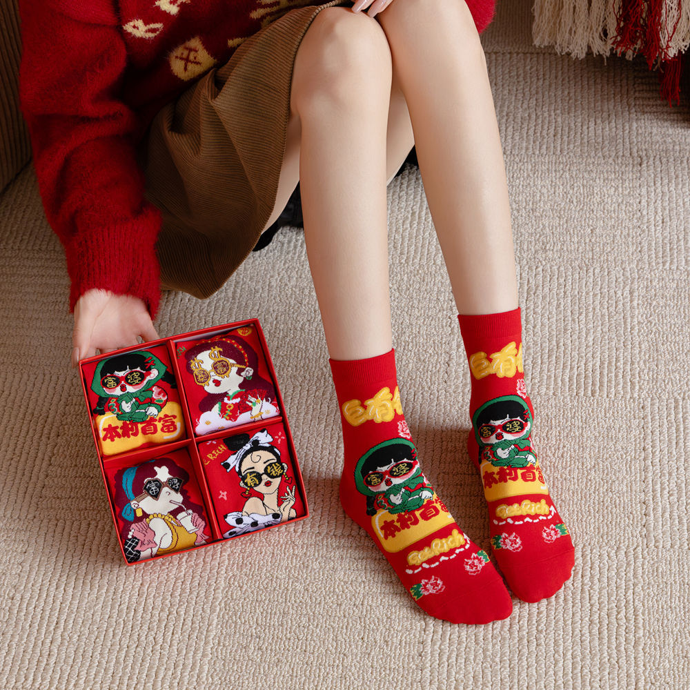 本命年袜子女款新年送礼大红色秋冬季中筒袜2024蛇年红袜子棉袜