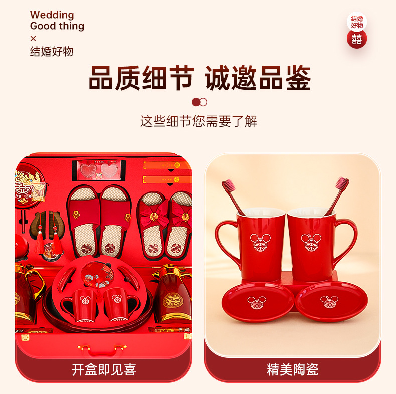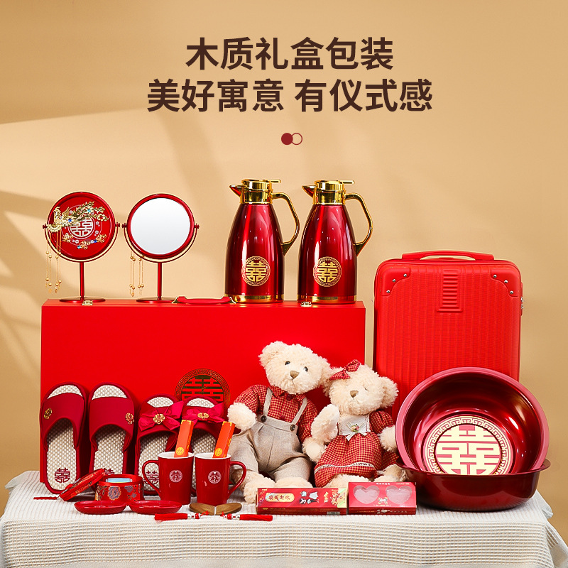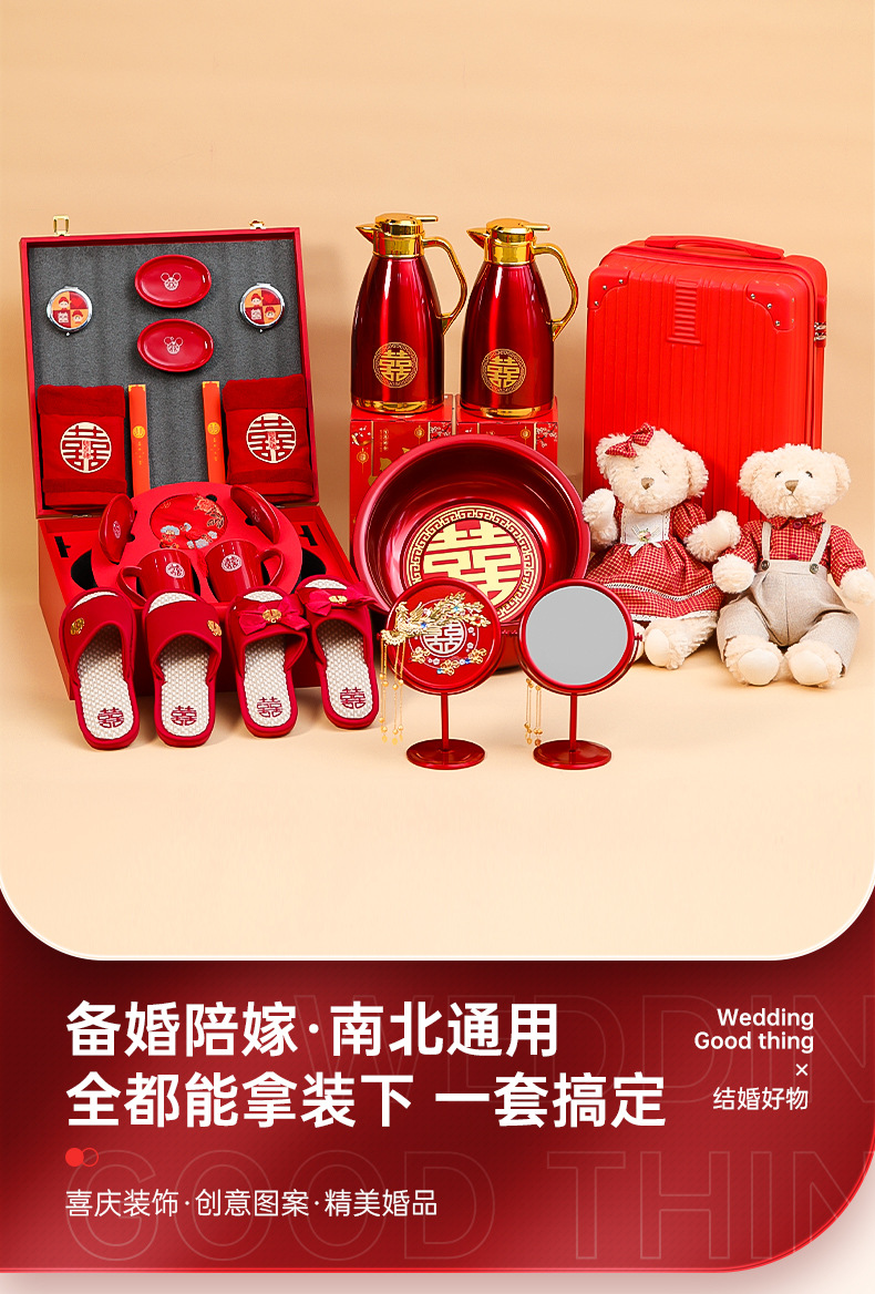 结婚女方陪嫁套装婚庆高档喜盆婚礼嫁妆喜箱新娘洗漱娘家备婚用品