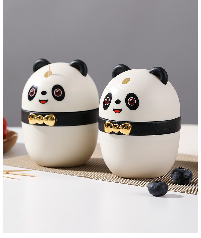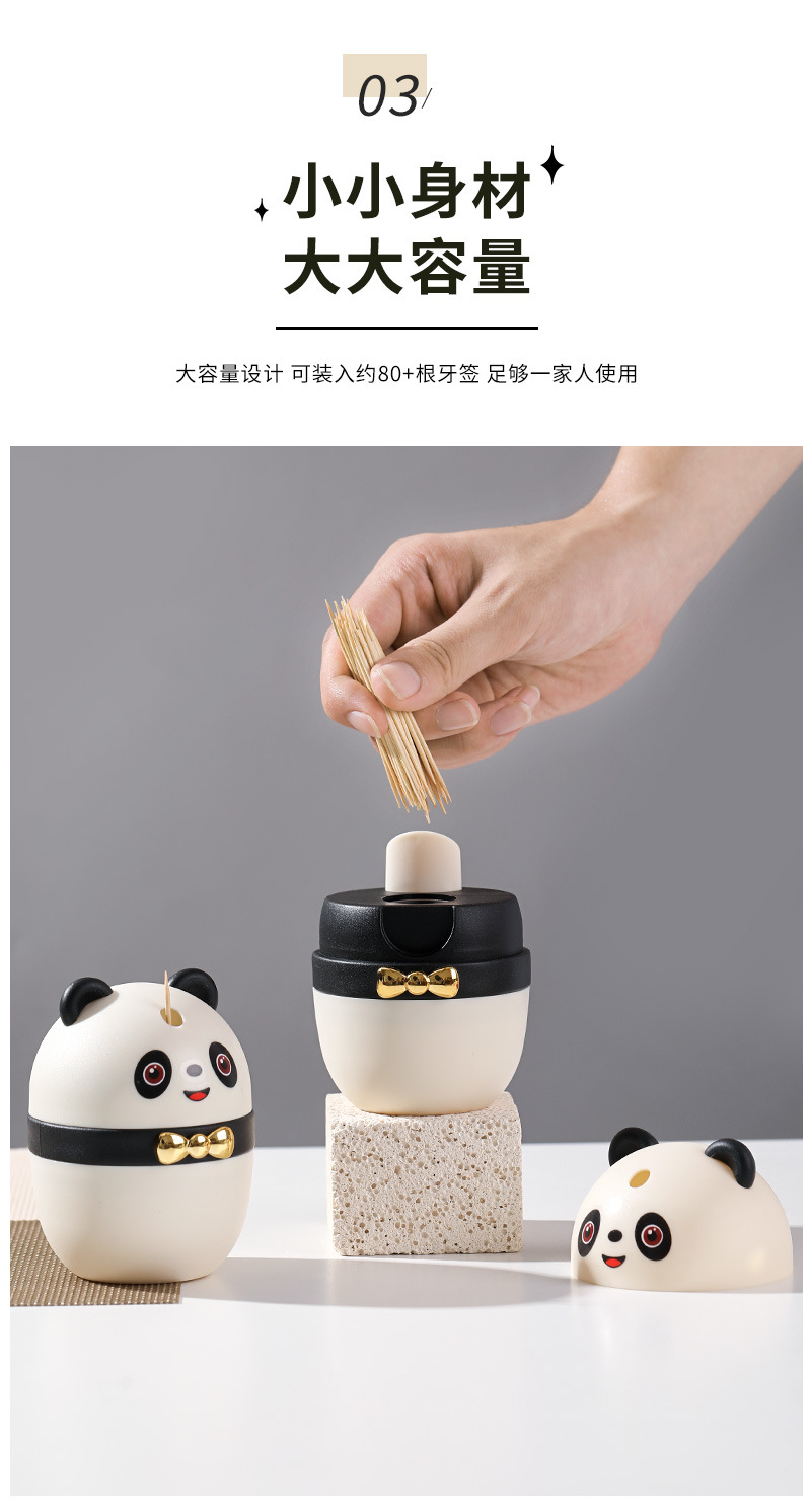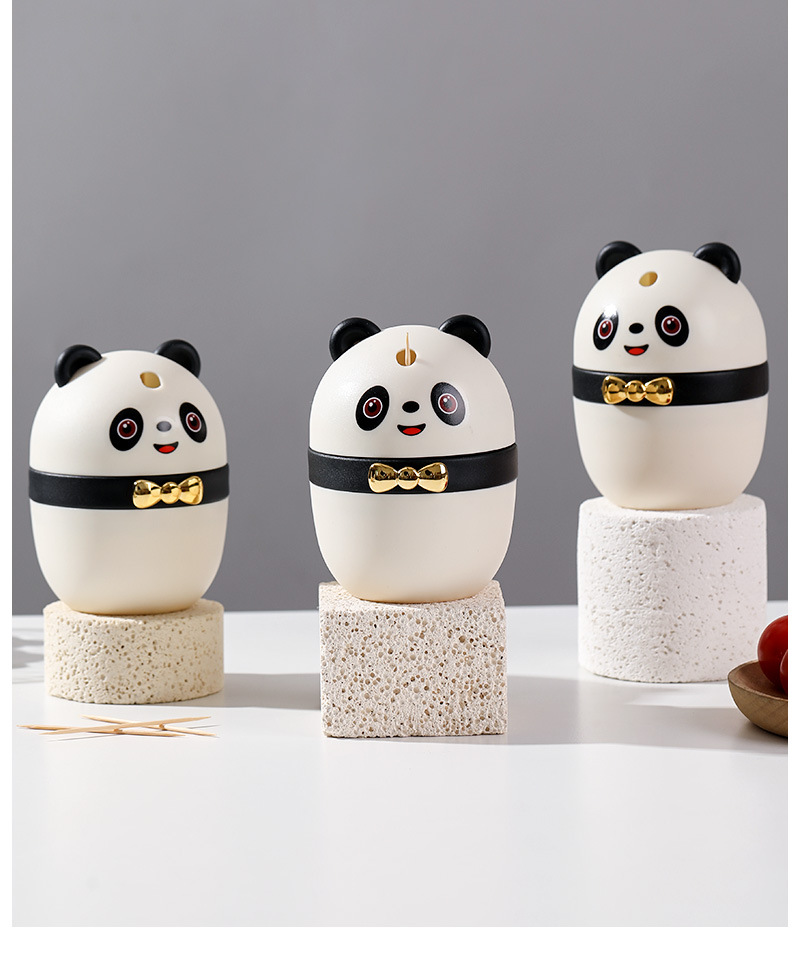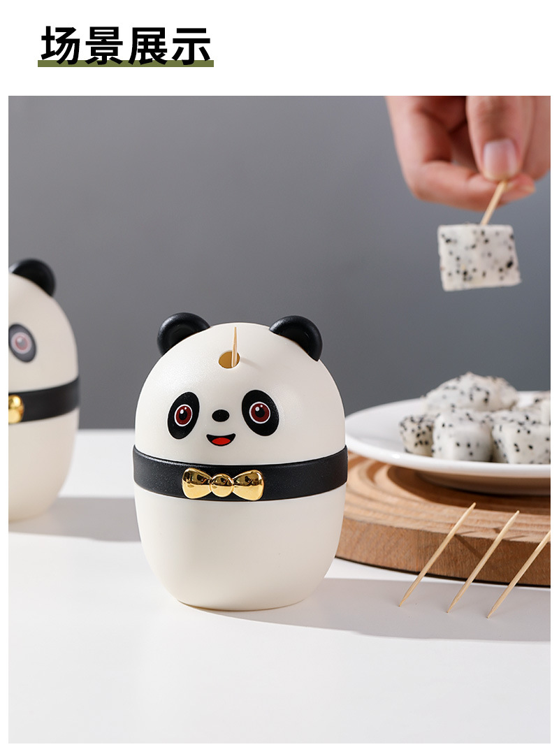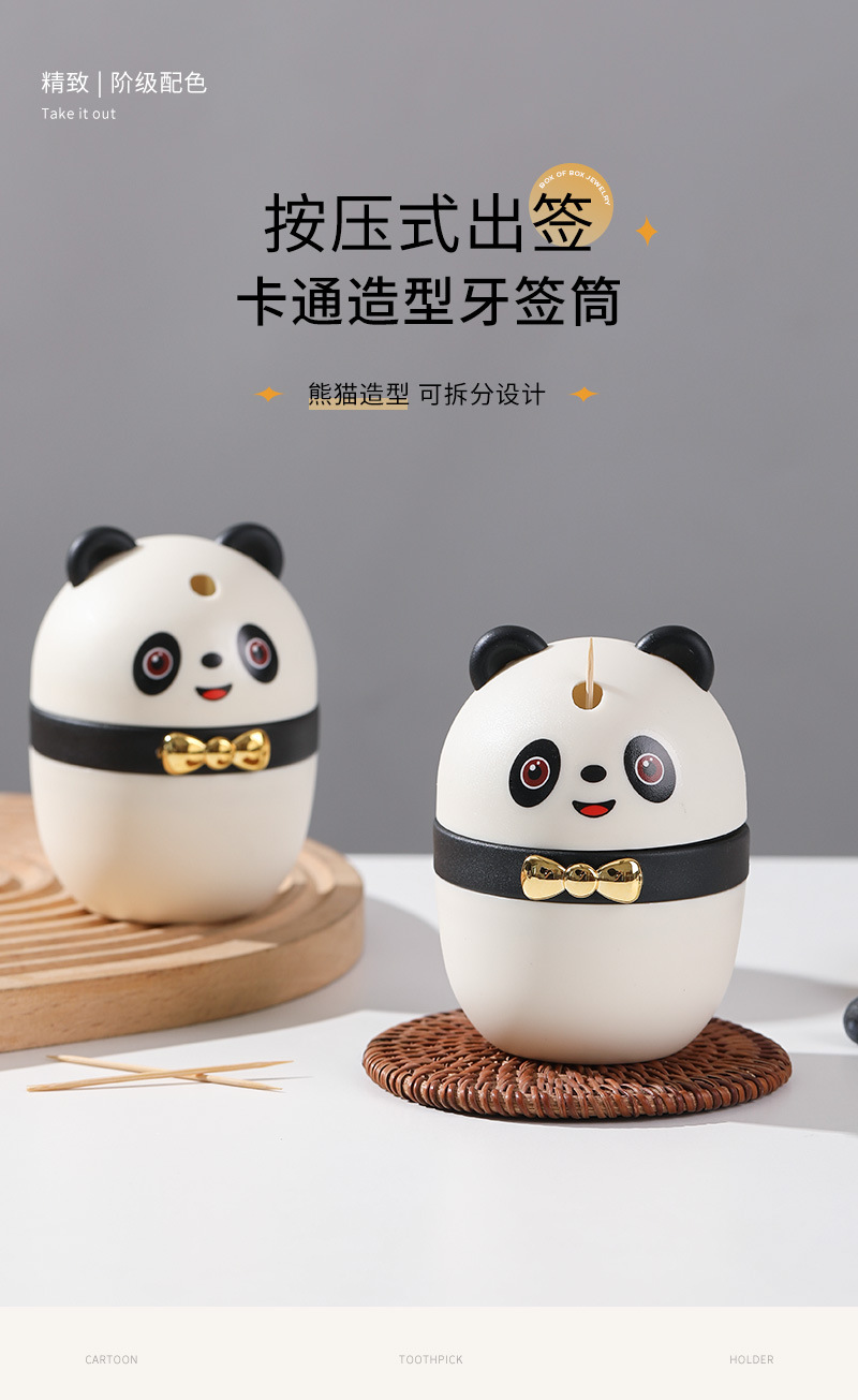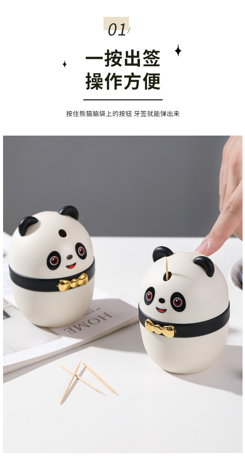 现货卡通牙签筒按压式熊猫造型自动出签牙签收纳盒家用餐厅牙签罐