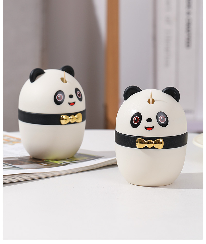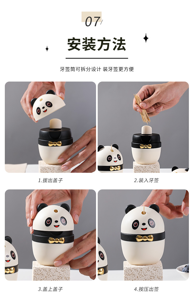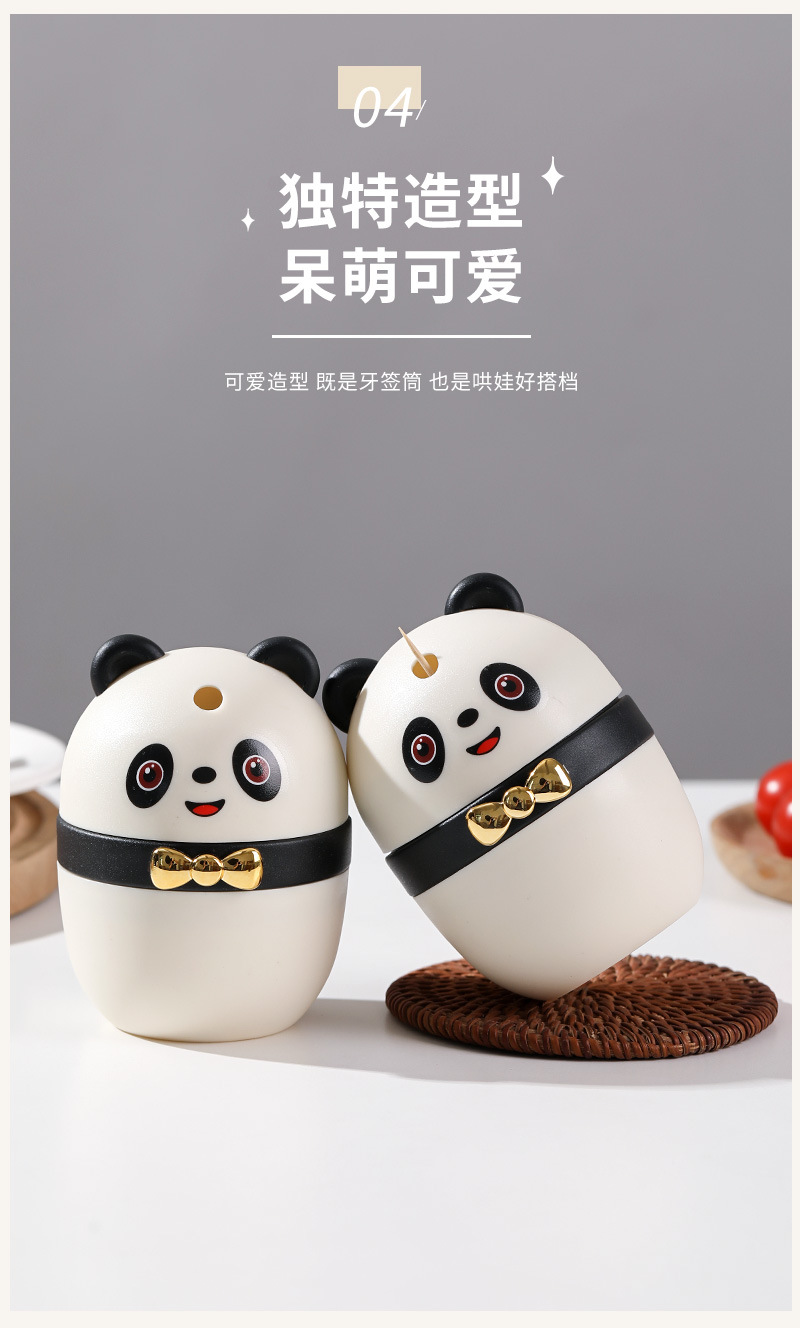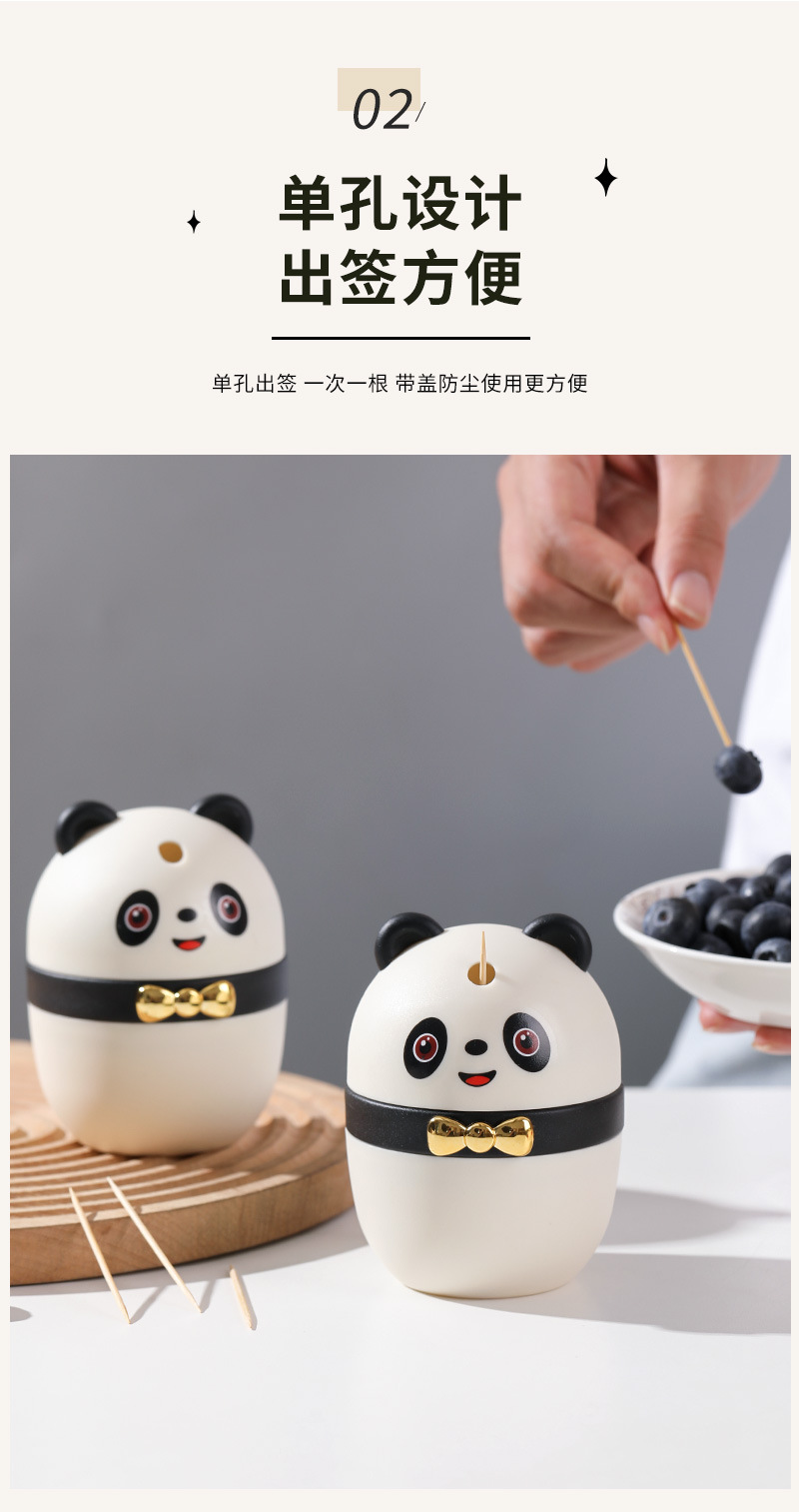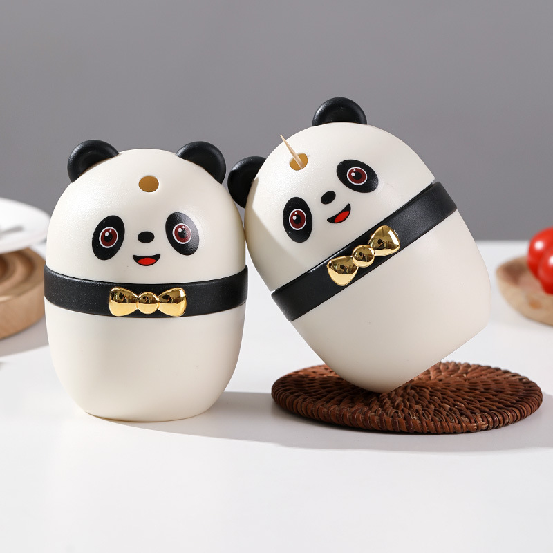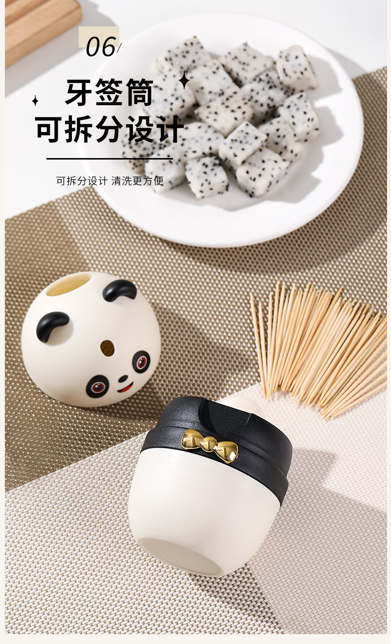 现货卡通牙签筒按压式熊猫造型自动出签牙签收纳盒家用餐厅牙签罐