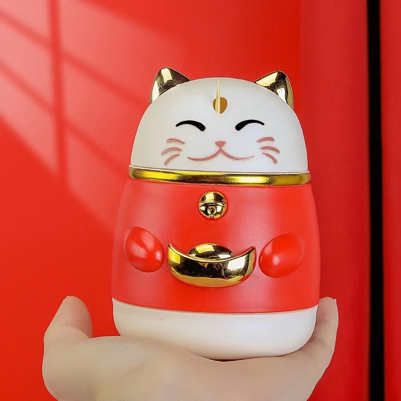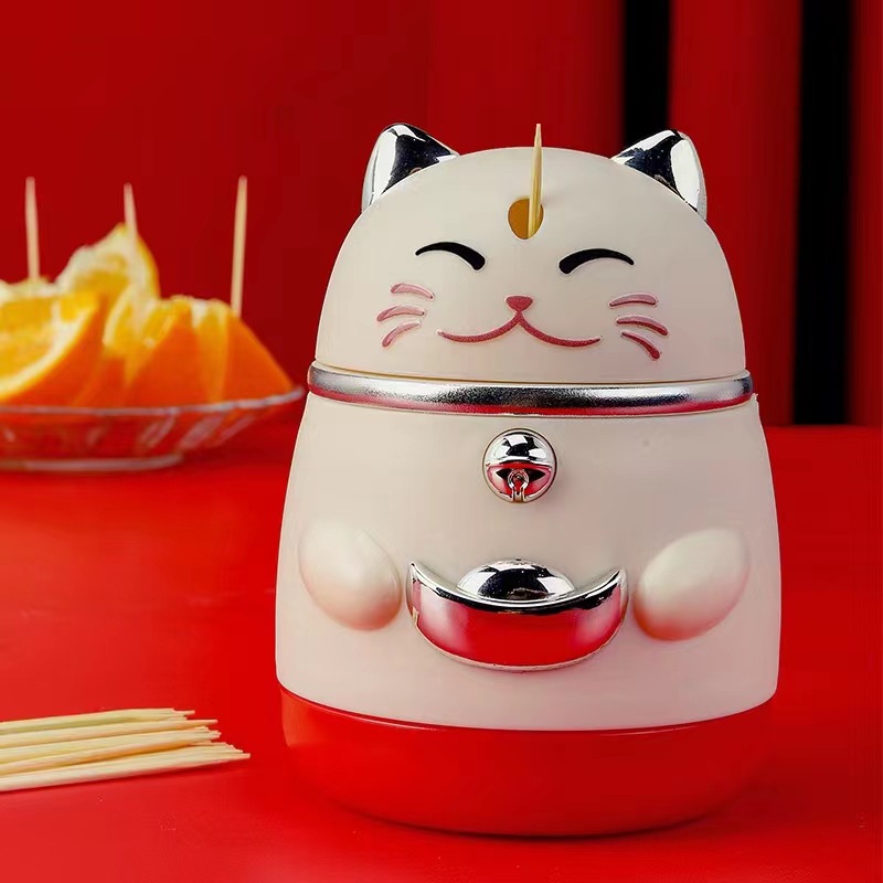 新款创意便携国潮卡通猫咪按压式牙签收纳筒罐牙签盒年货礼品