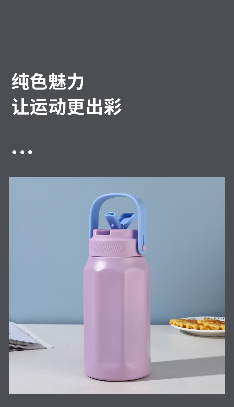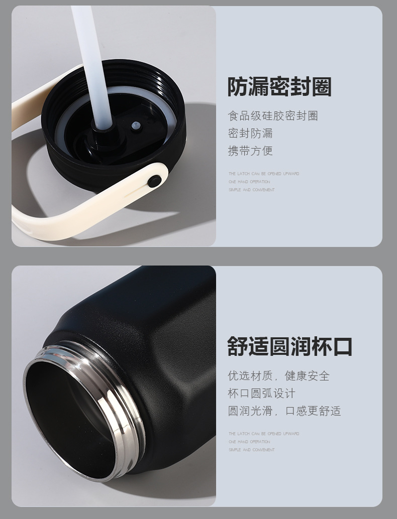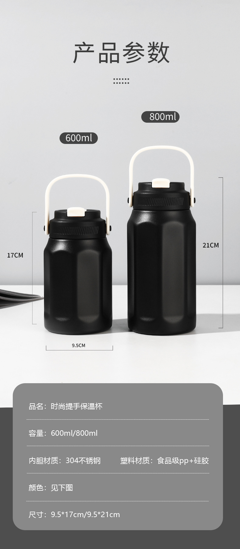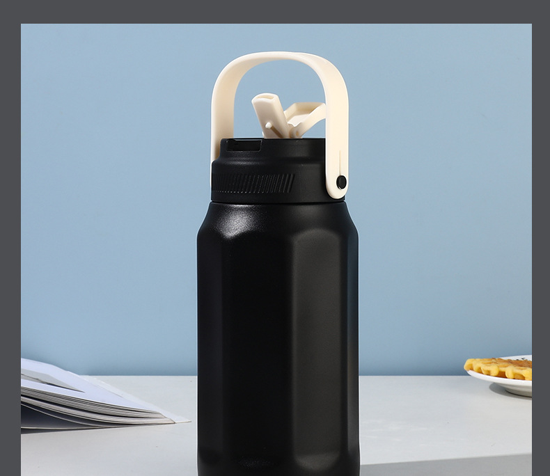 大容量八角大肚杯保温壶304不锈钢保温杯便携手提运动吸管随行杯