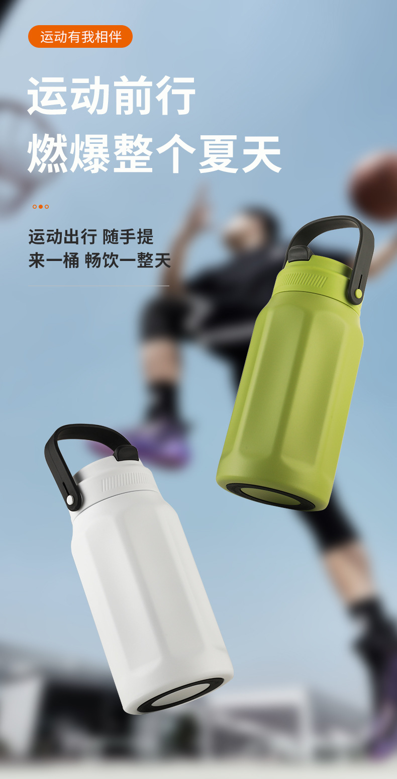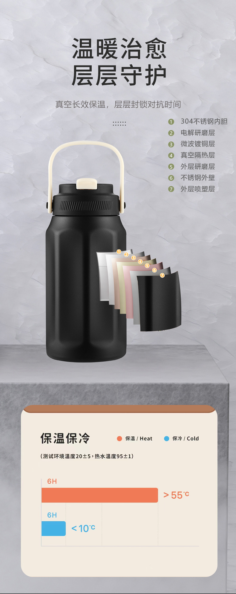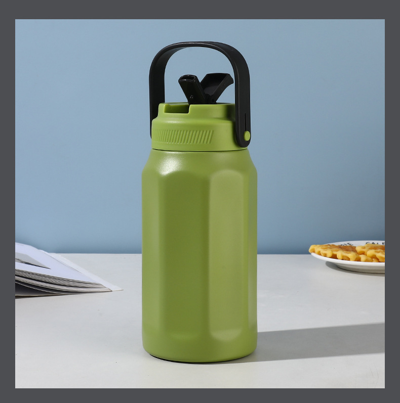 大容量八角大肚杯保温壶304不锈钢保温杯便携手提运动吸管随行杯