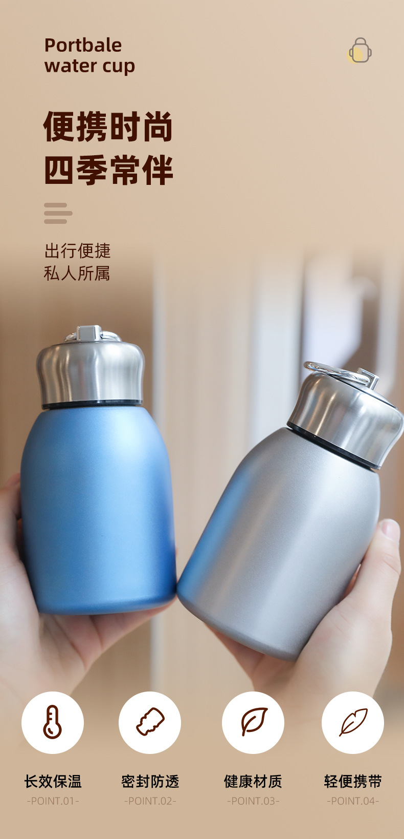 304不锈钢小胖丁保温杯户外便携迷你小肚杯带提环水杯运动水壶