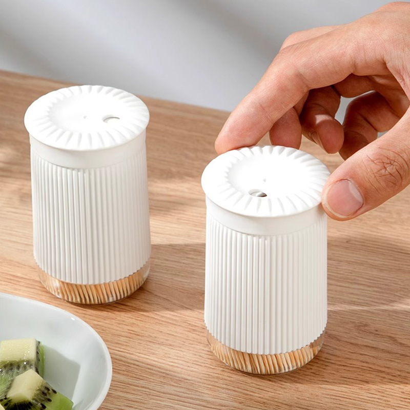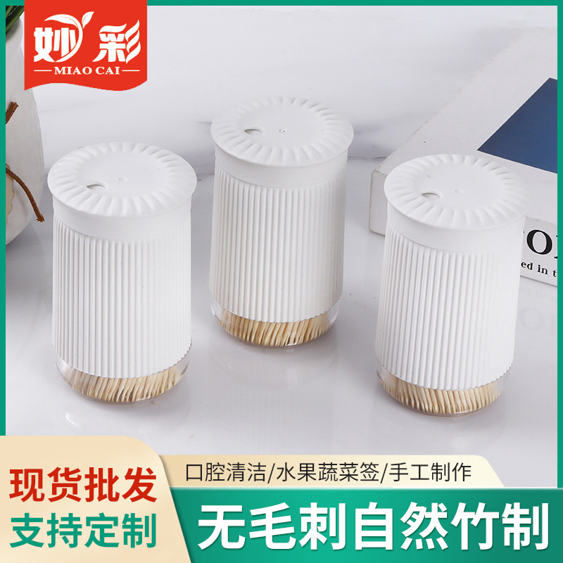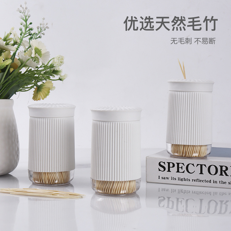 创意个性一次性罐装牙签轻奢经典白高档牙签筒竹制牙签盒厂家现货