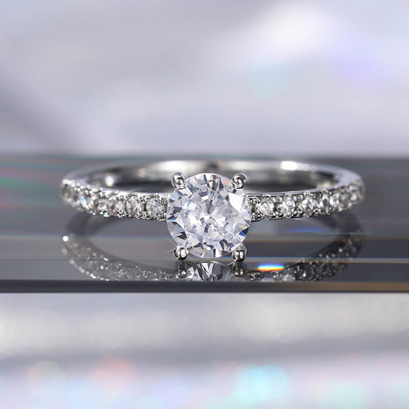 曹适wish跨境ebay爆款 欧美简约锆石订婚结婚戒指 铜镀白金仿钻戒
