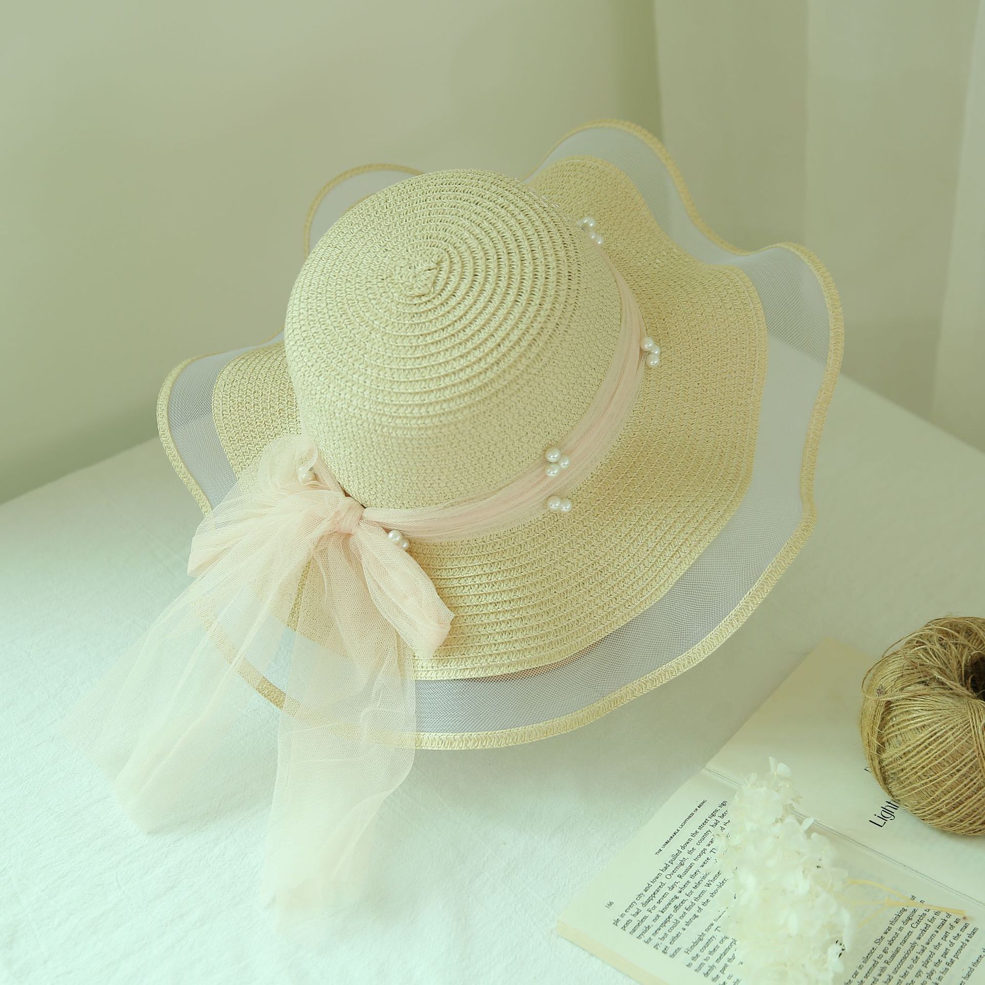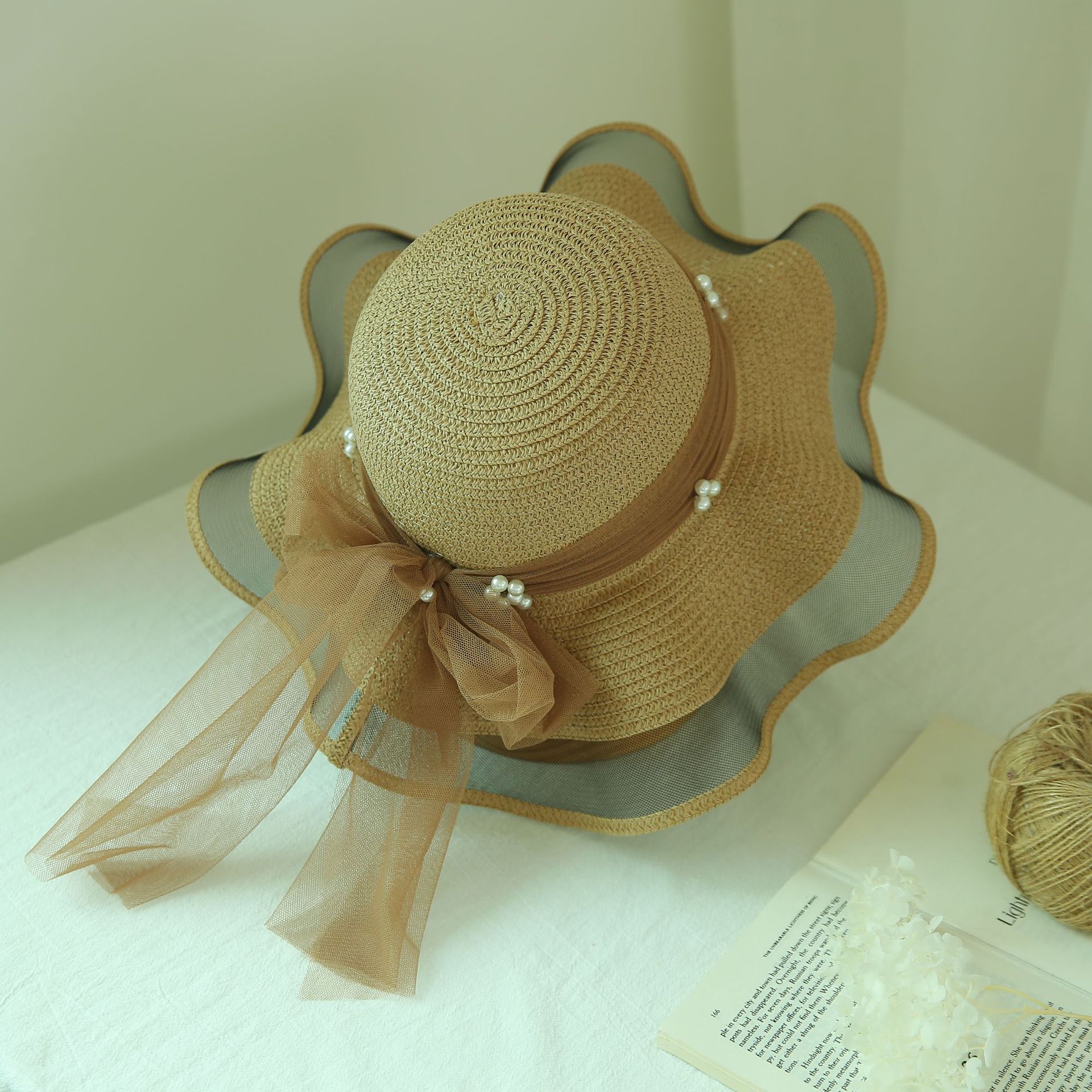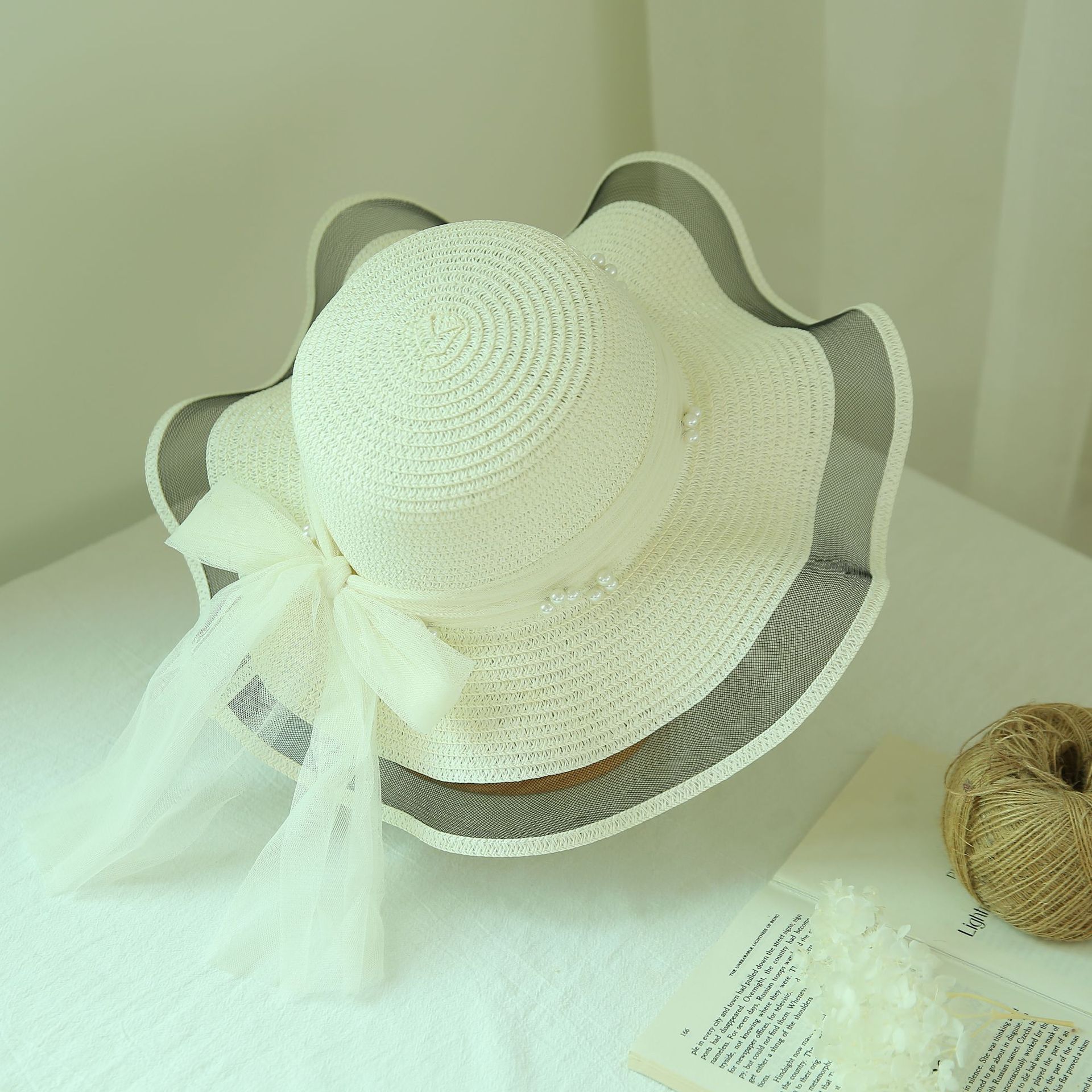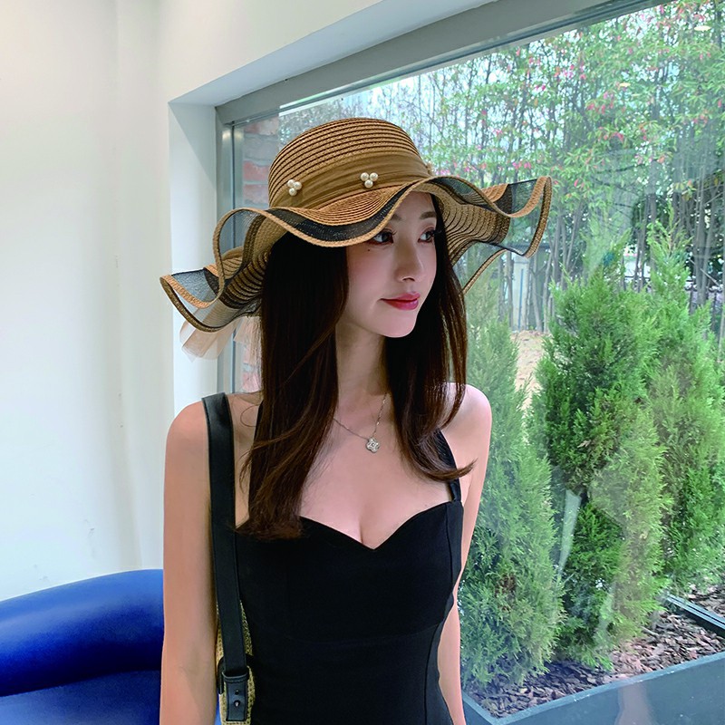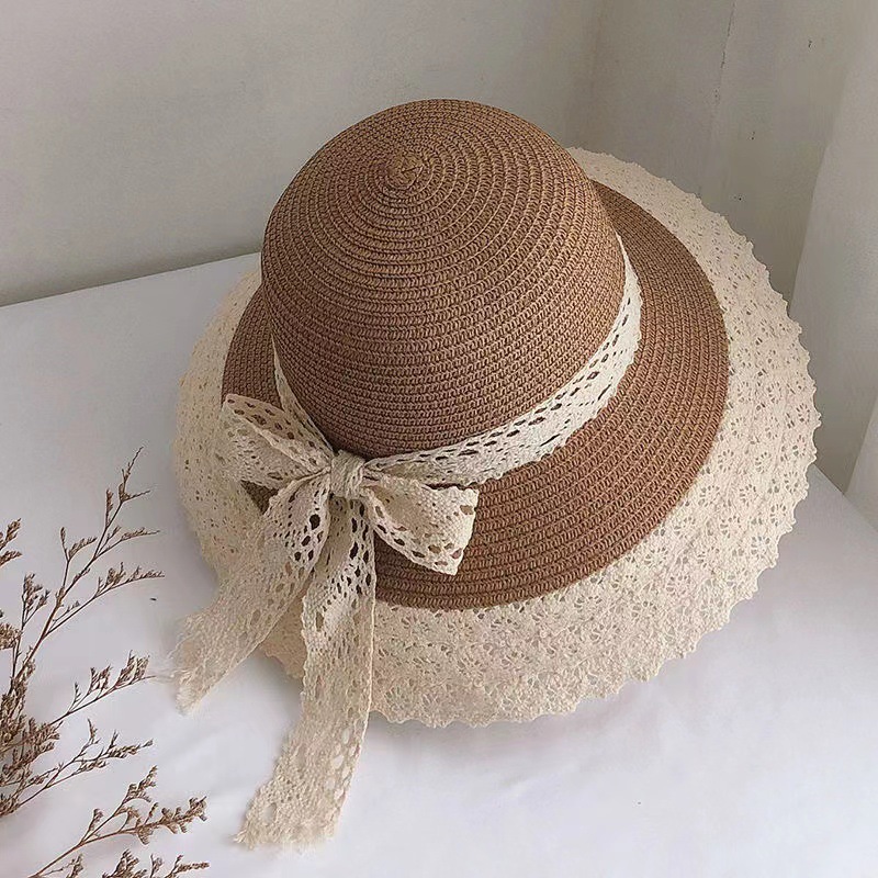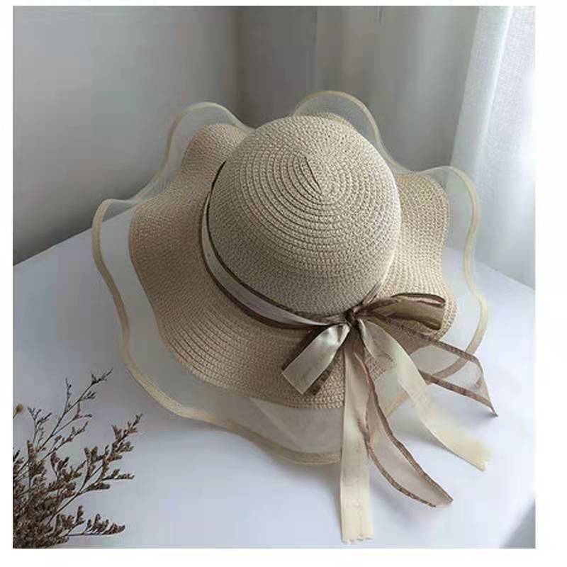 洋气百搭夏季新款蝴蝶结大檐草帽女防晒遮阳时尚海边沙滩帽子批发