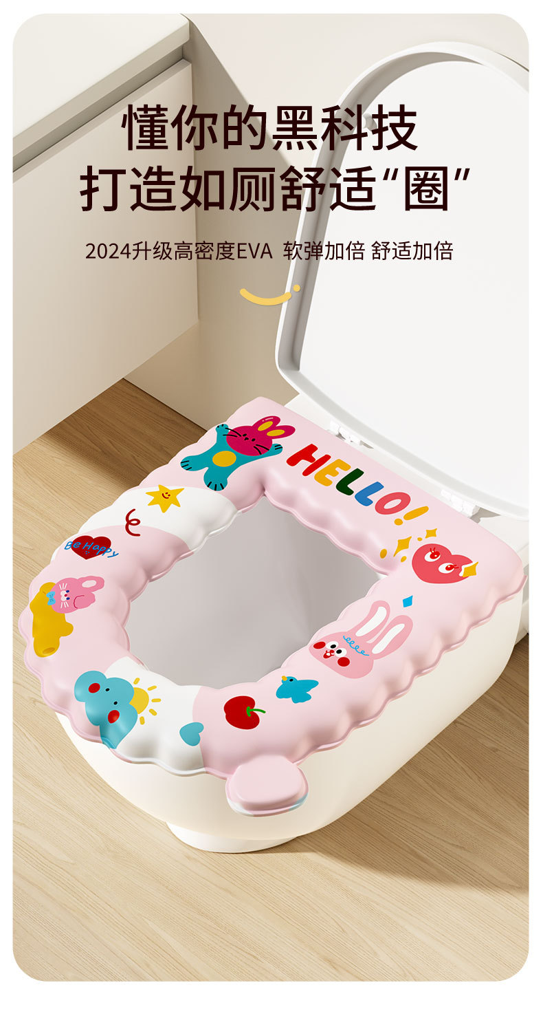 马桶垫冬季防水四季通用不冰屁股家用坐便套粘贴式带提手马桶坐垫