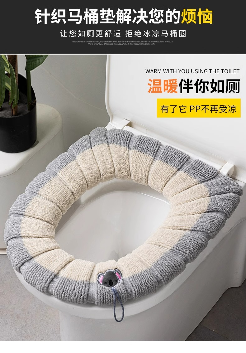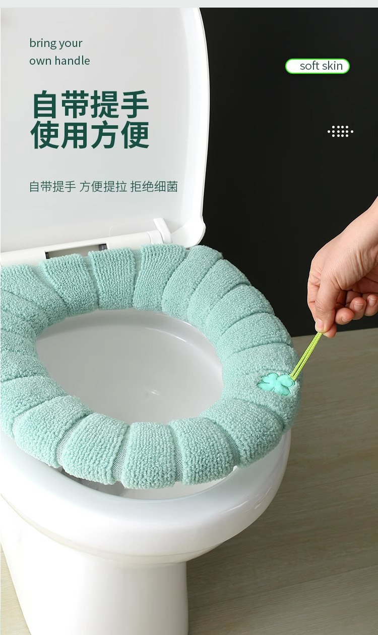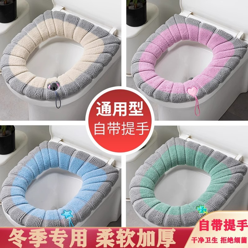 马桶垫冬季加厚保暖座便套涤纶马桶坐垫提手款四季通用加绒马桶套