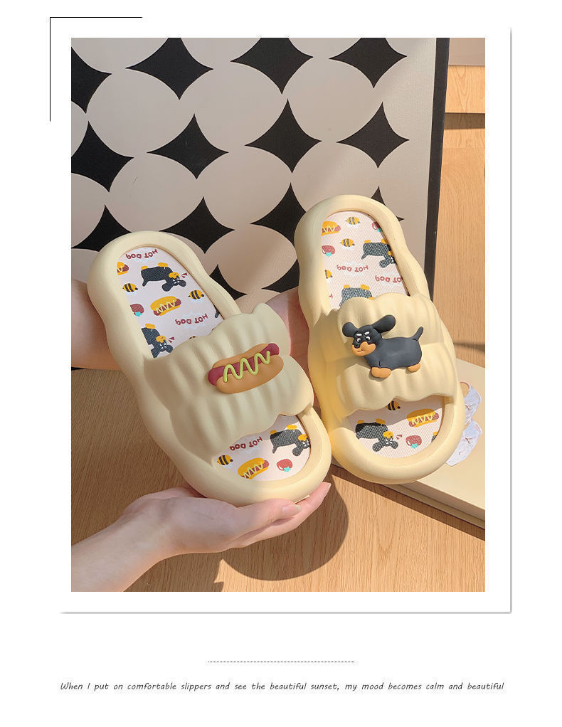 踩屎感拖鞋女夏外穿卡通热狗网红情侣软底居家防滑室内凉拖鞋假日