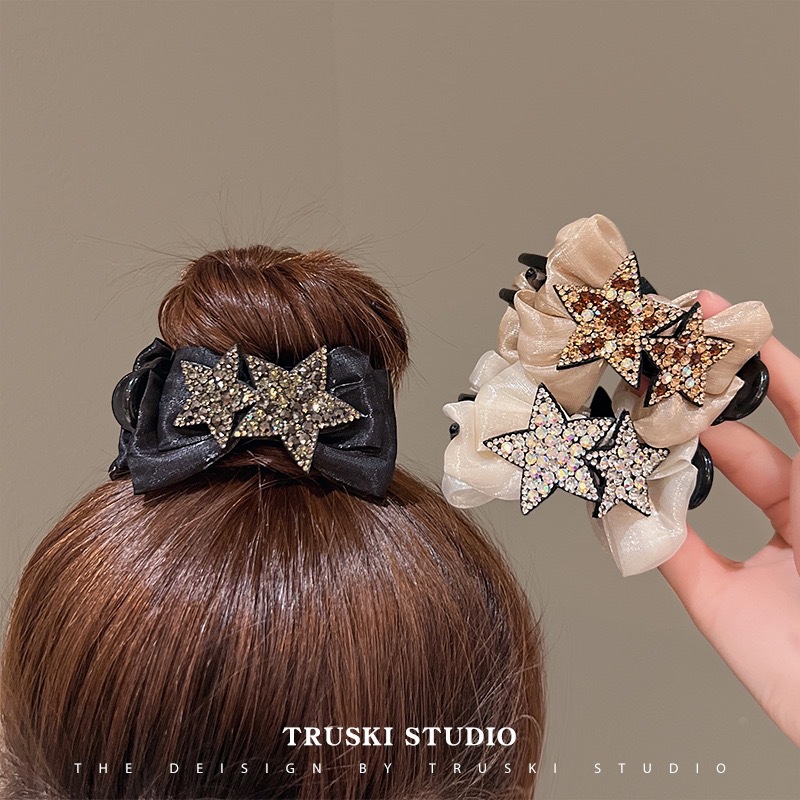 新款韩国双面蝴蝶结抓夹可爱高级感后脑勺丸子头盘发大号发夹发饰