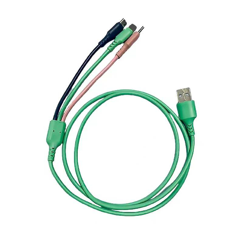 液态硅胶一拖三数据线地推热销礼品厂家 3a快充三合一手机充电线
