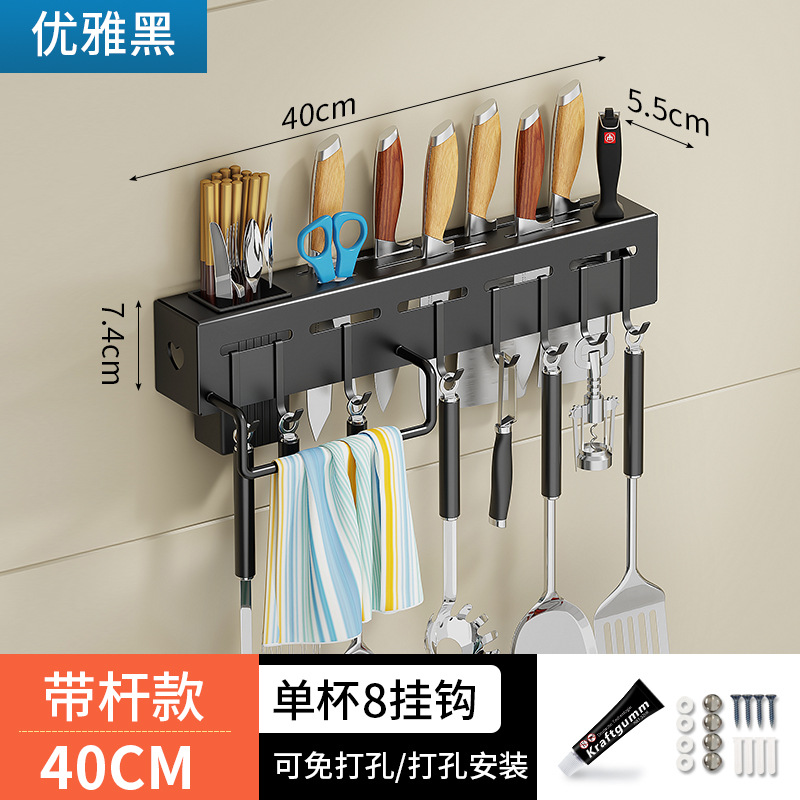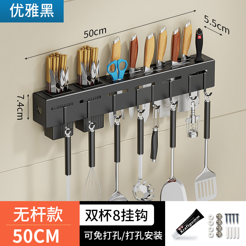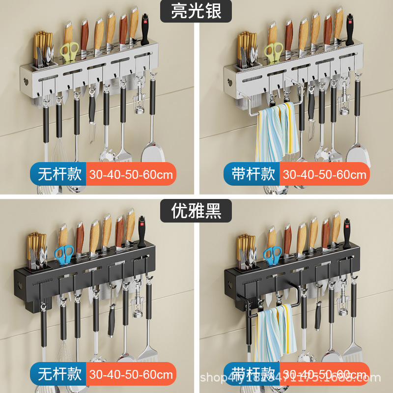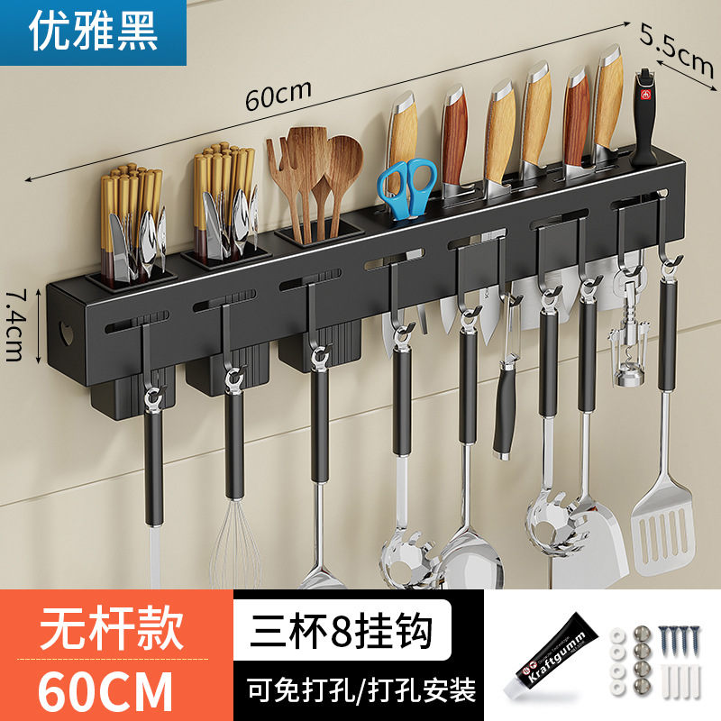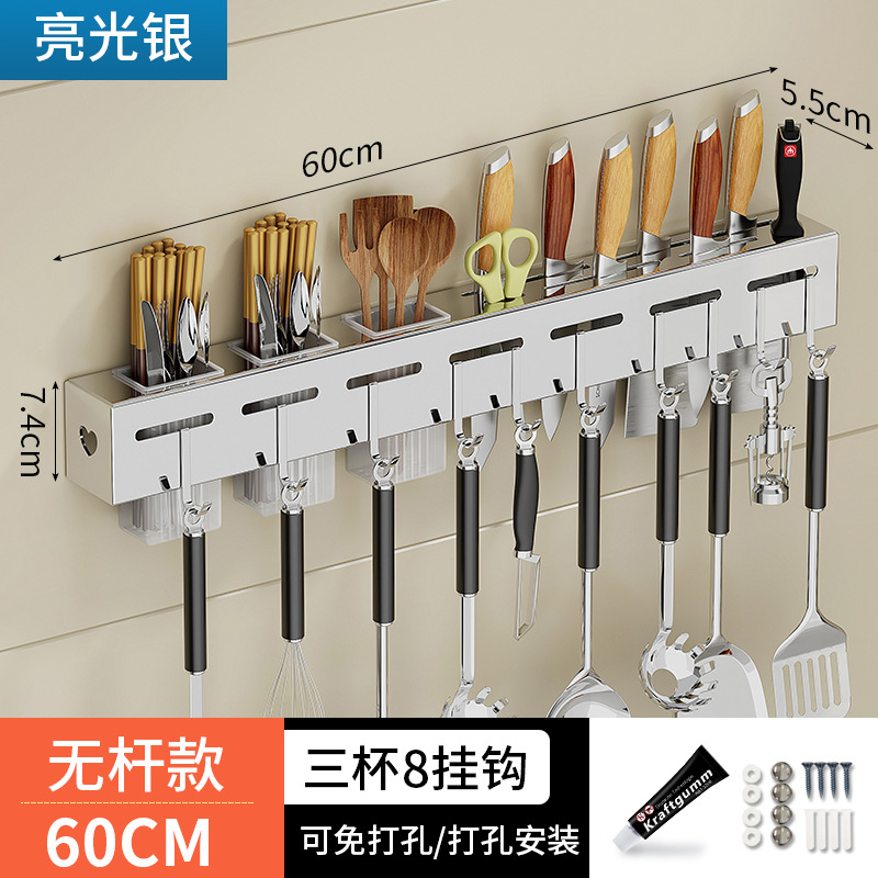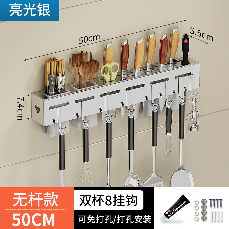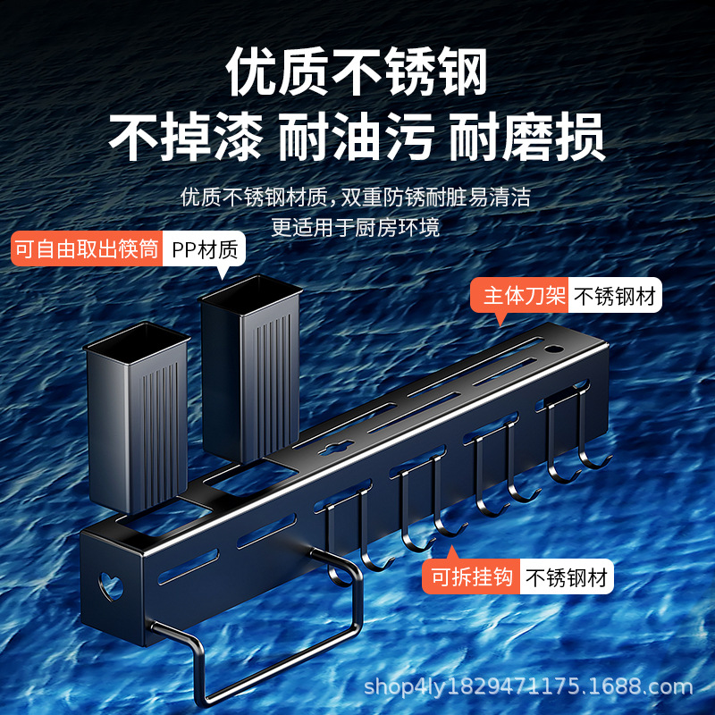 不锈钢刀架免打孔厨房家用一体刀具筷子笼锅勺铲收纳置物架壁挂式