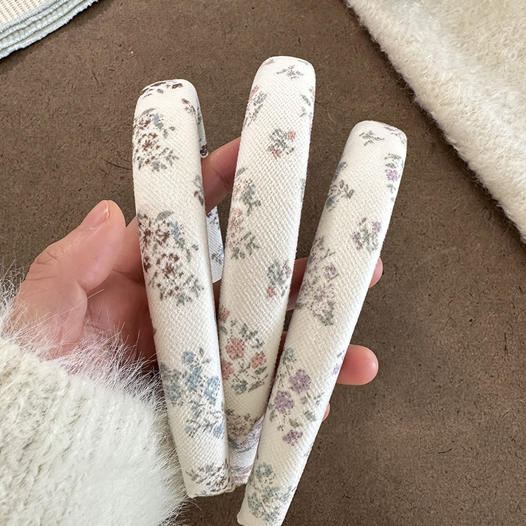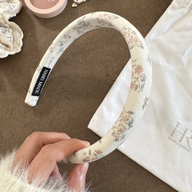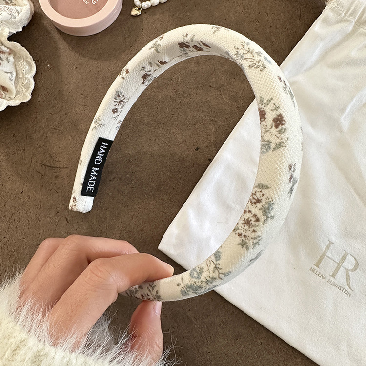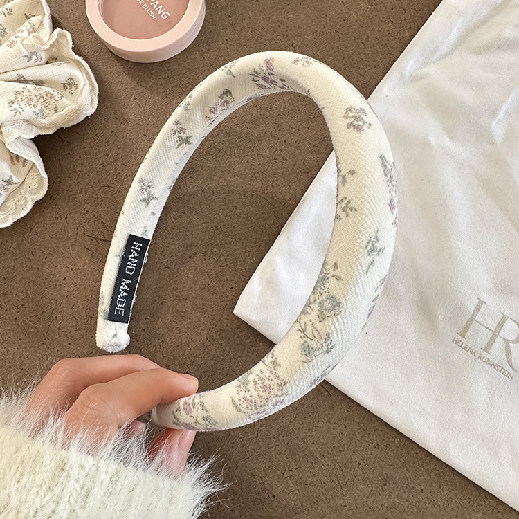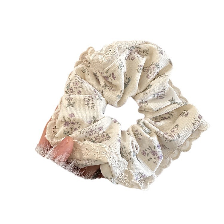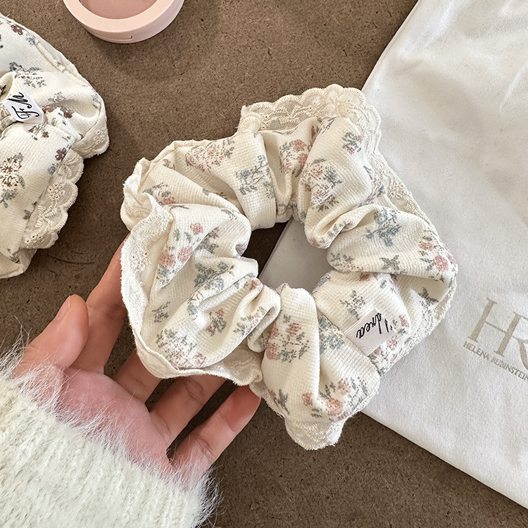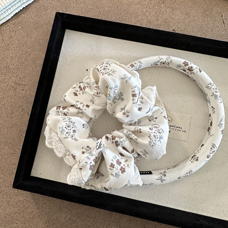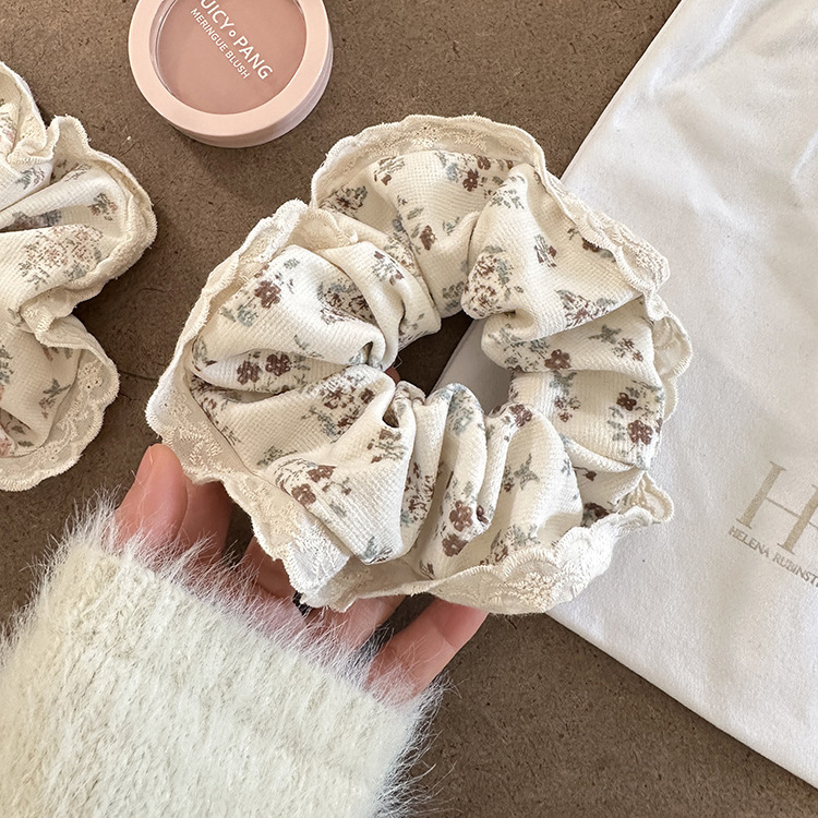 秋冬新款法式小清新奶白底碎花大肠发圈发箍马尾头箍发饰头饰批发