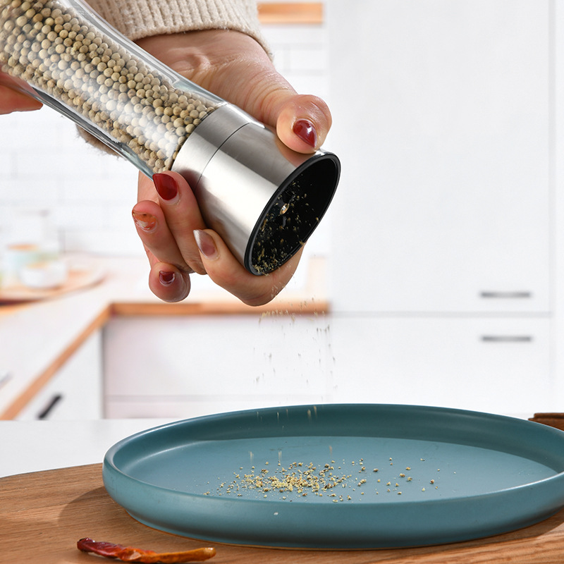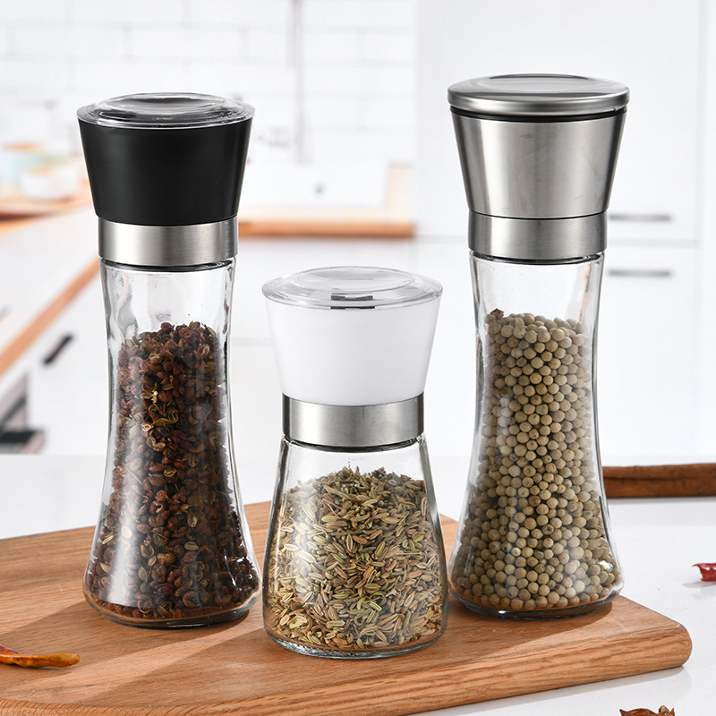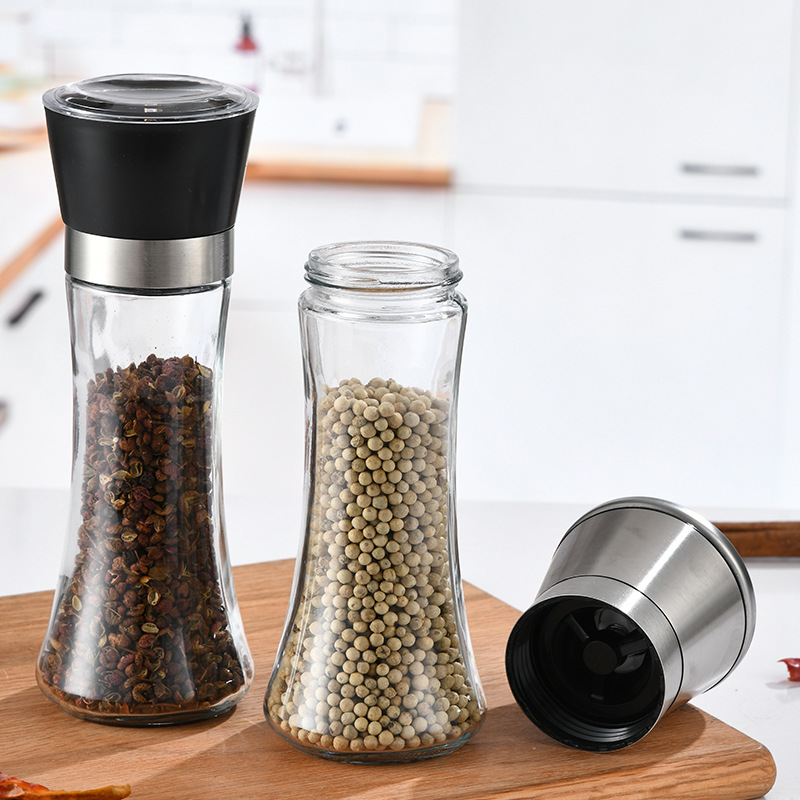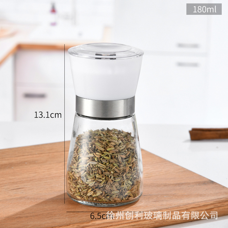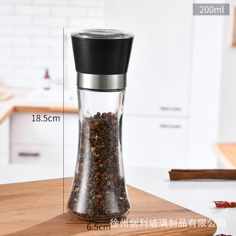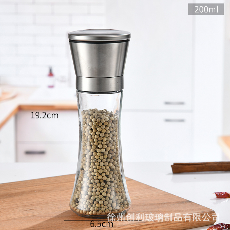 304不锈钢手动家用研磨器花椒黑胡椒研磨瓶玻璃调味瓶跨境亚马逊