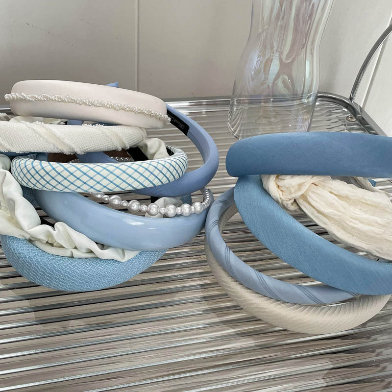 奶油蓝色小清新高颅顶发箍女2024新款头箍发卡网红洗脸发饰批发