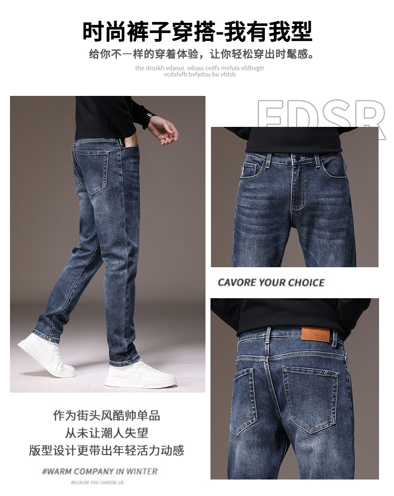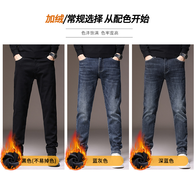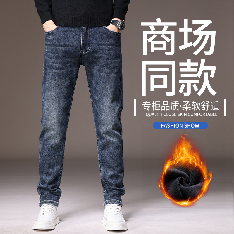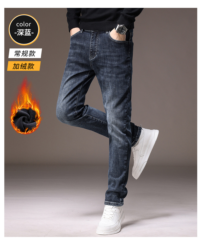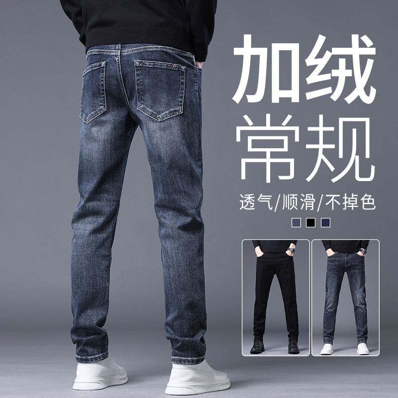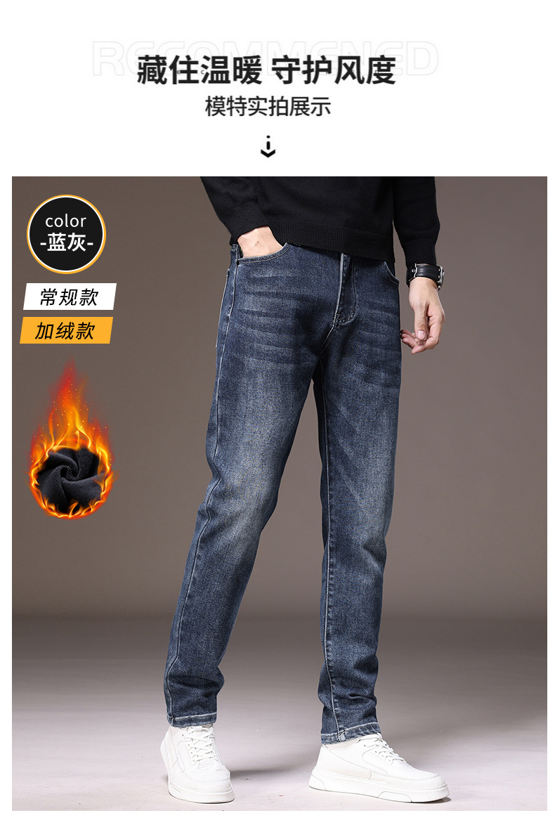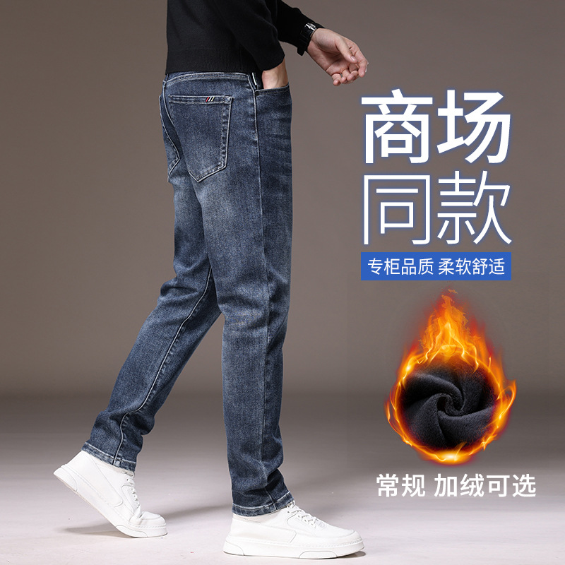 2023春秋季新款高端牛仔裤男直筒修身弹力冬季加绒加厚休闲保暖裤