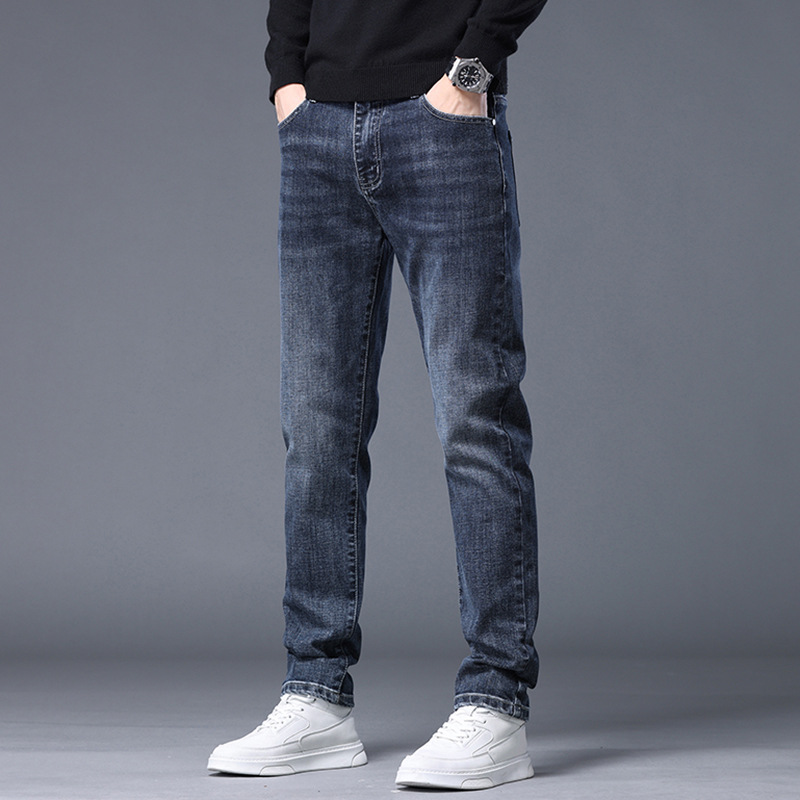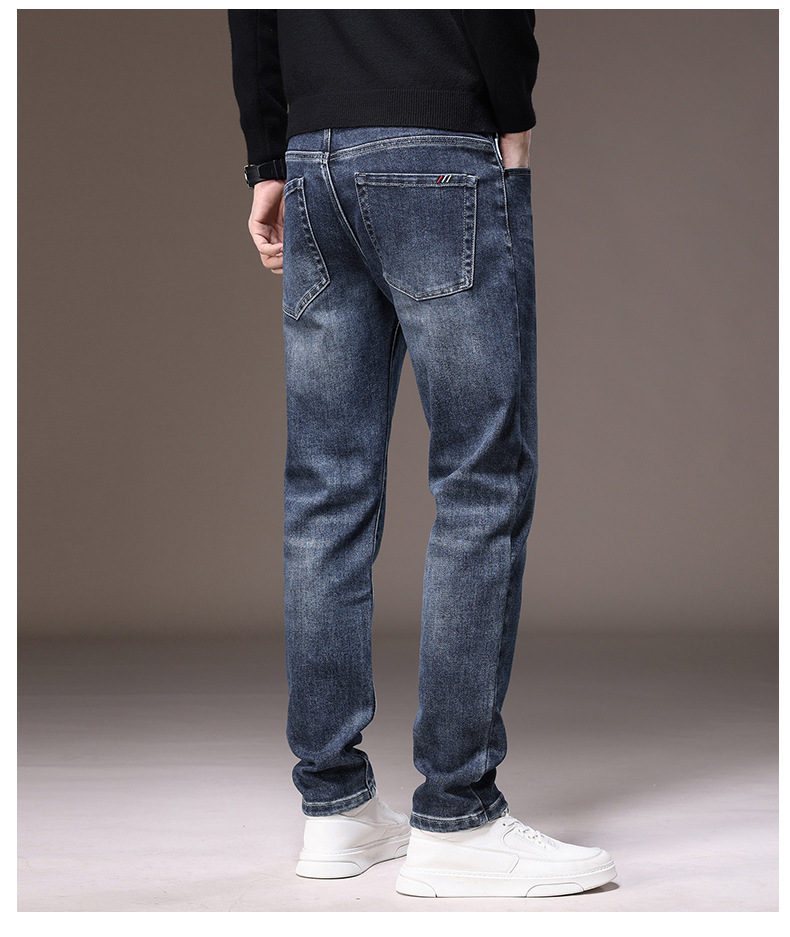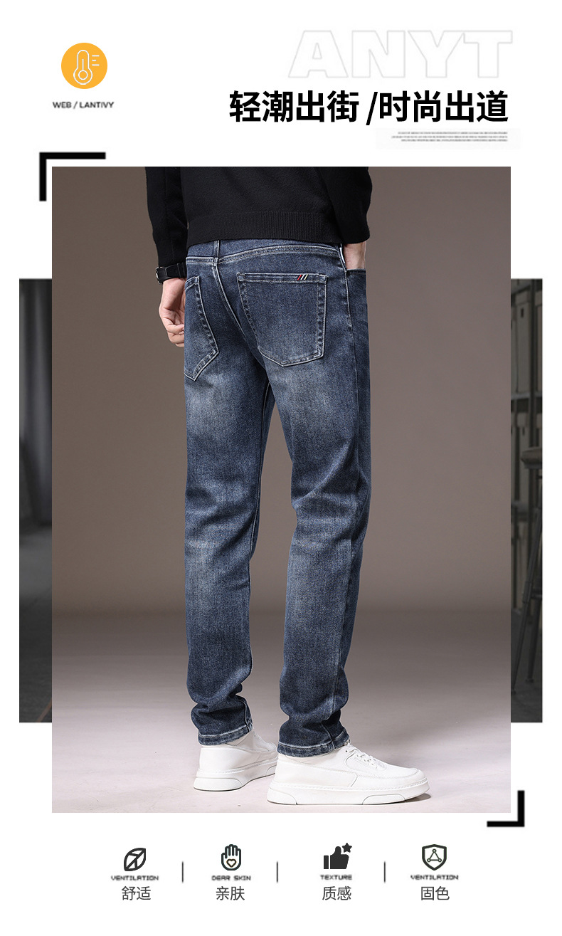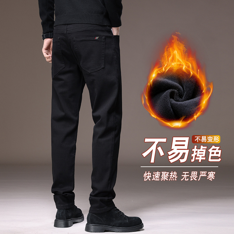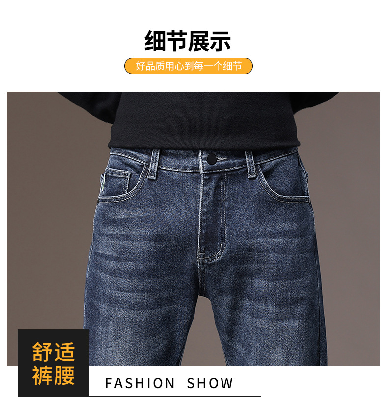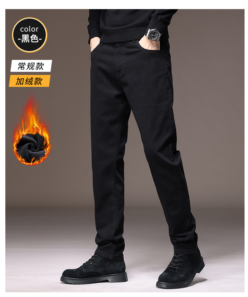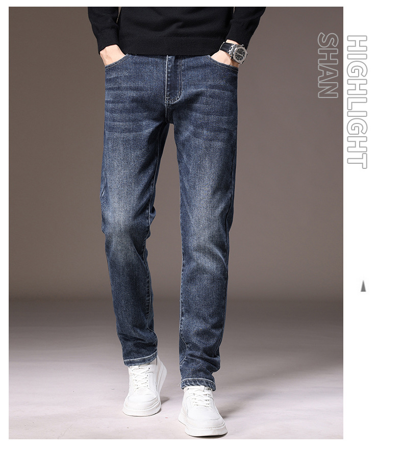 2023春秋季新款高端牛仔裤男直筒修身弹力冬季加绒加厚休闲保暖裤