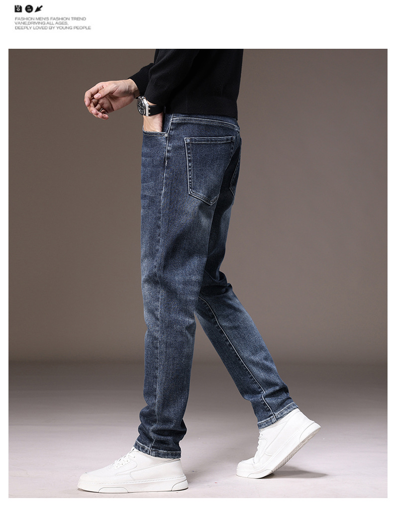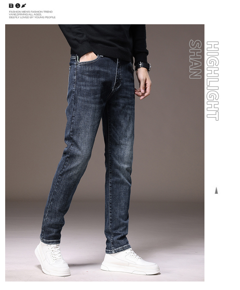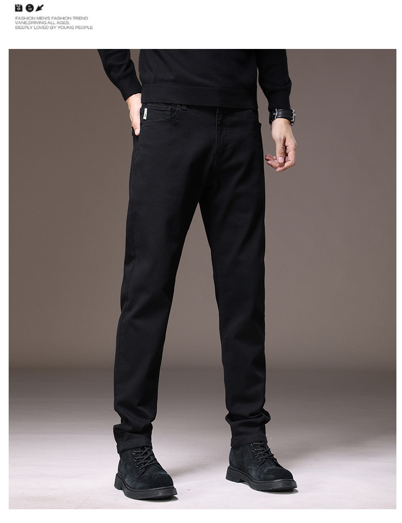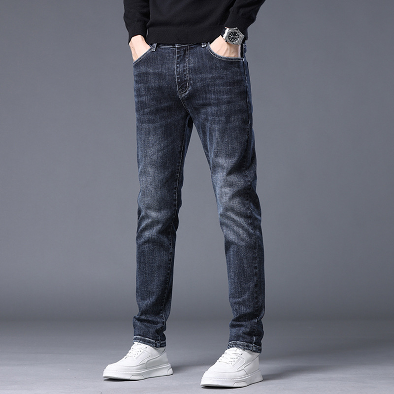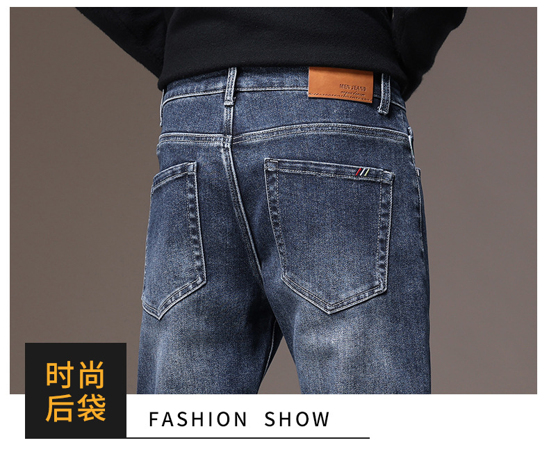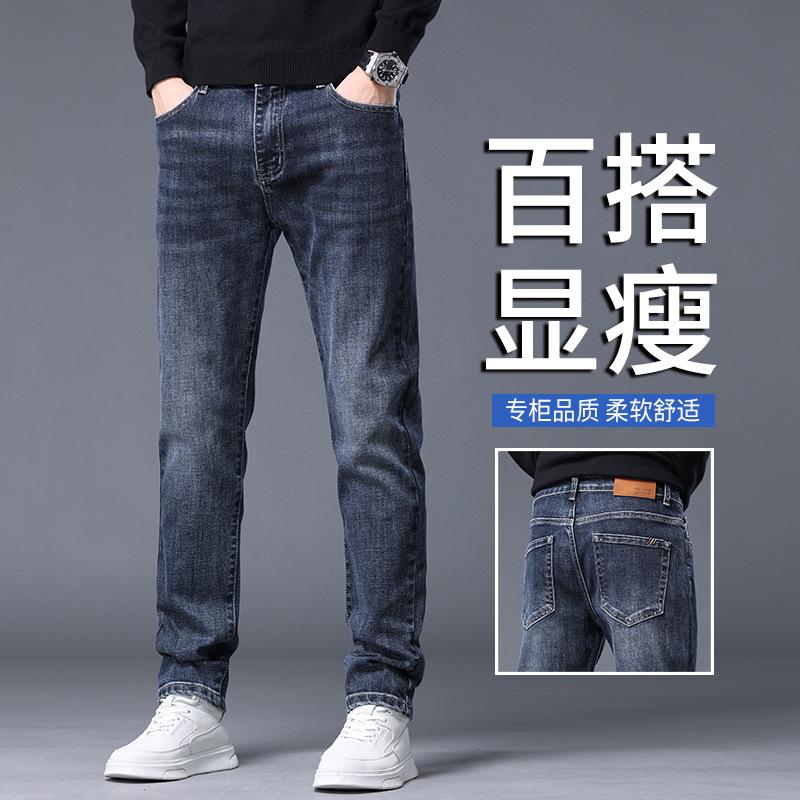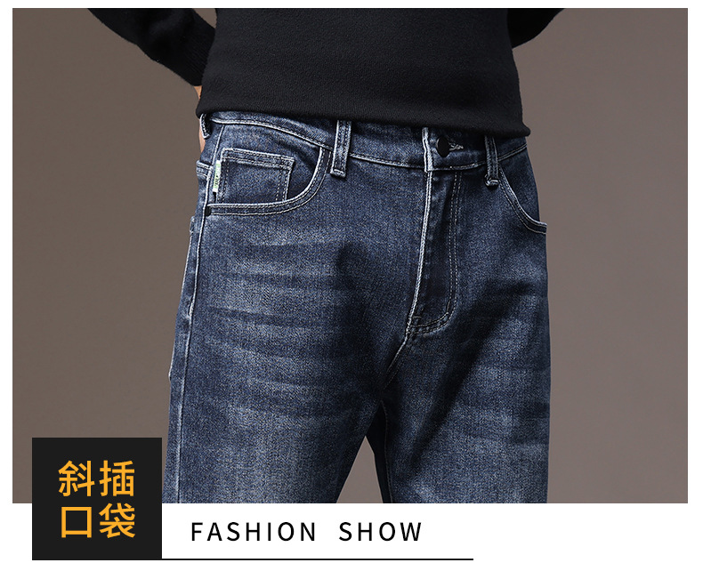 2023春秋季新款高端牛仔裤男直筒修身弹力冬季加绒加厚休闲保暖裤