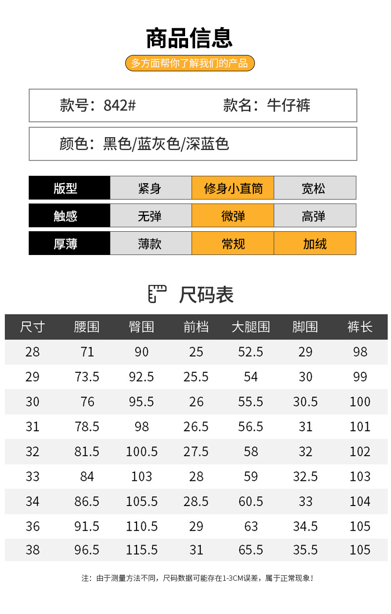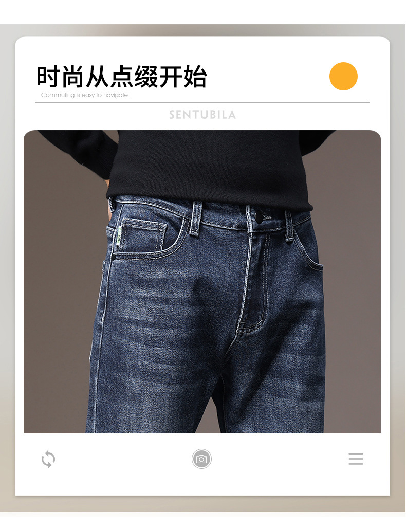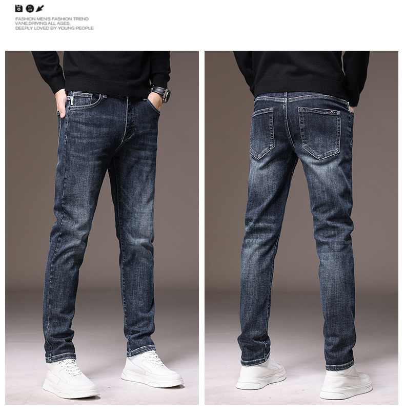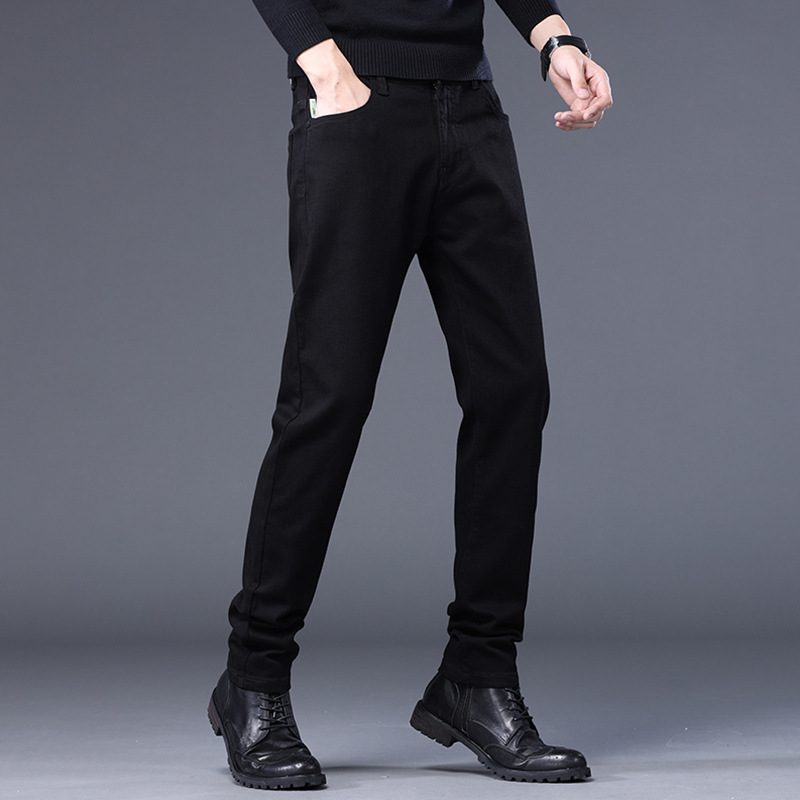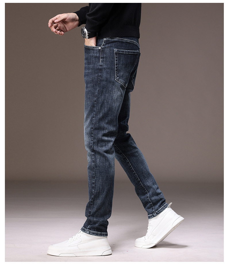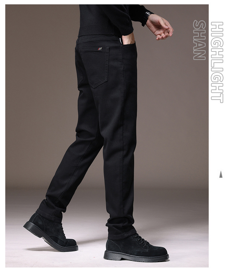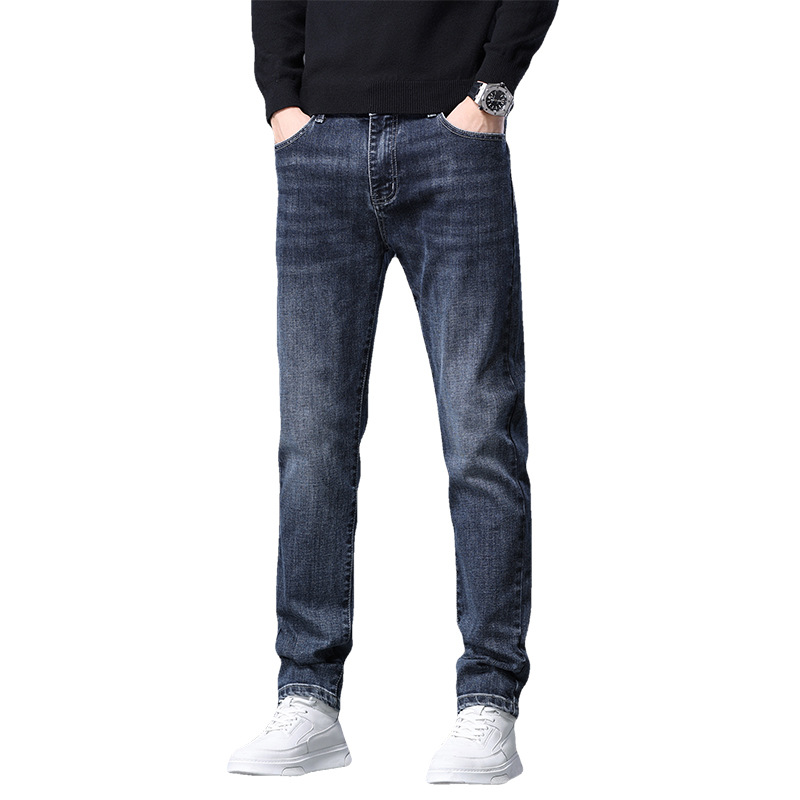 2023春秋季新款高端牛仔裤男直筒修身弹力冬季加绒加厚休闲保暖裤