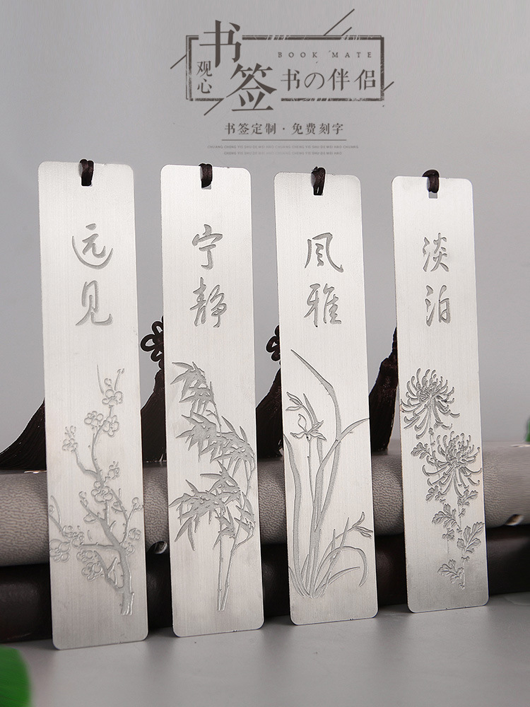 创意黄铜光板金属书签定制 中国风激光刻字logo黄铜蚀刻书签定做