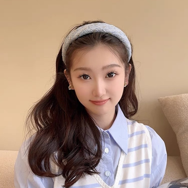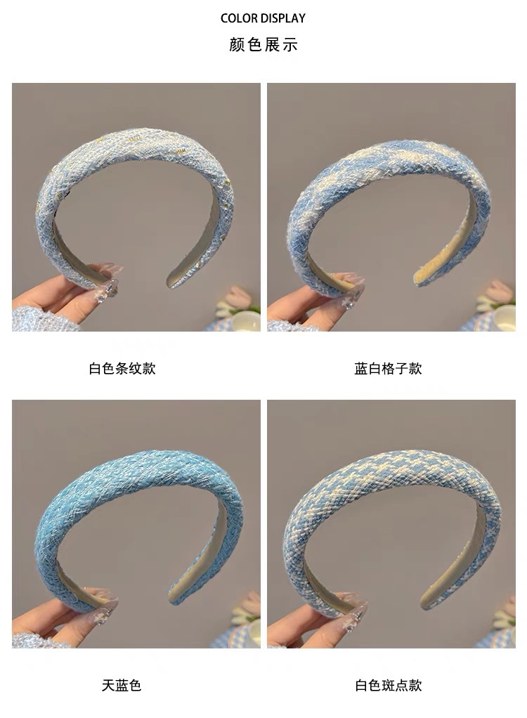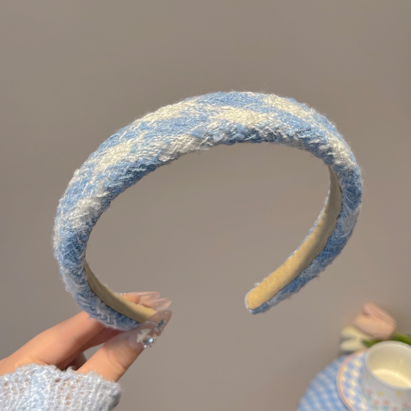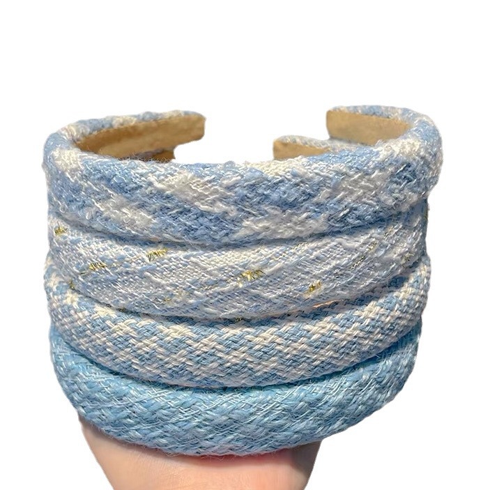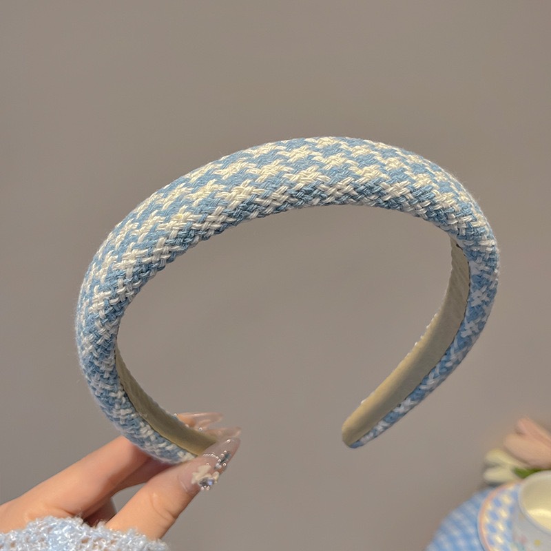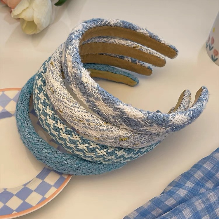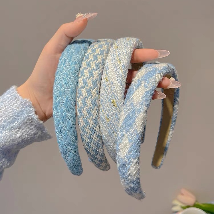蓝色系针织格纹高颅顶压发头箍时尚百搭发饰防滑发捆头饰秋发箍女