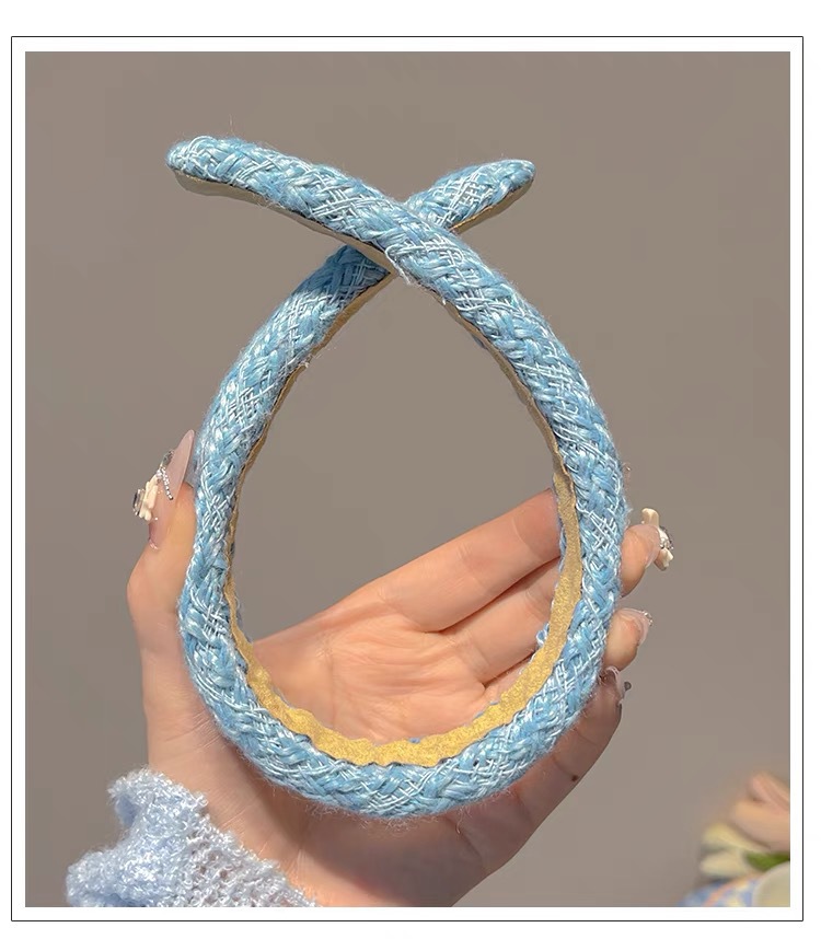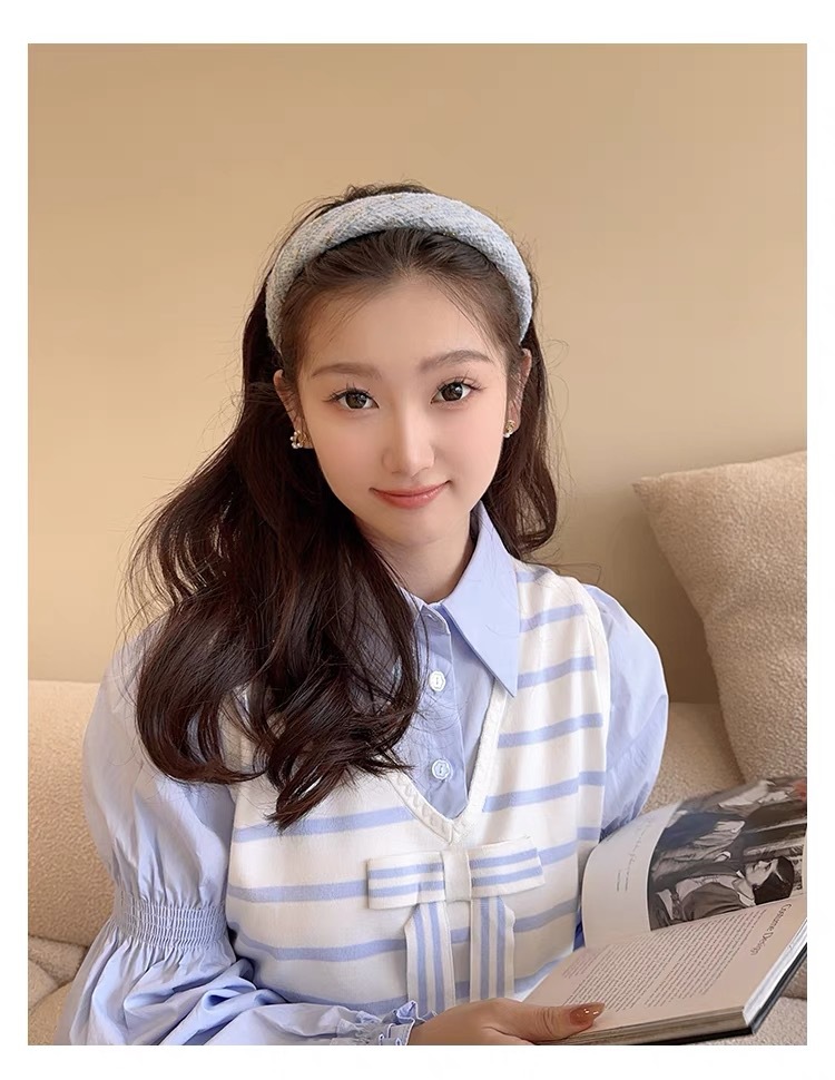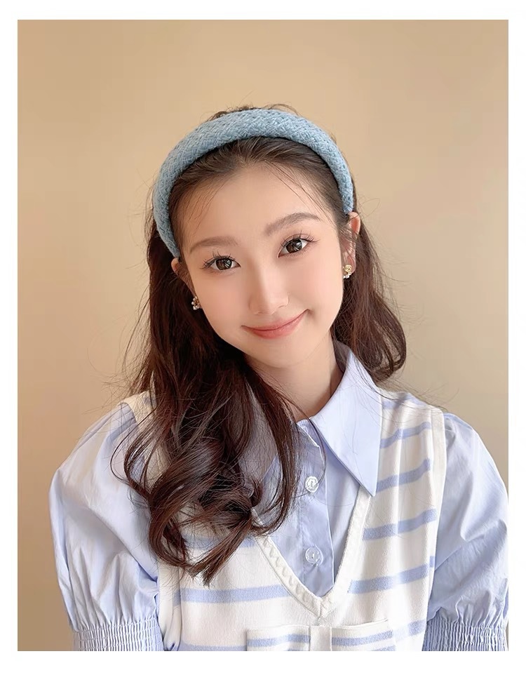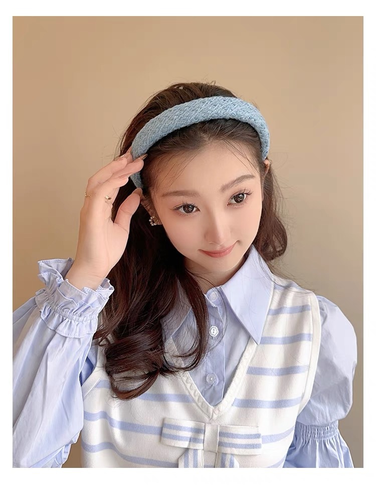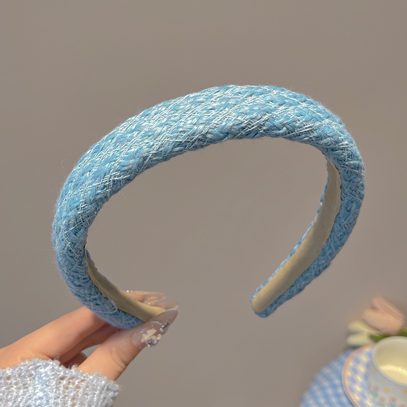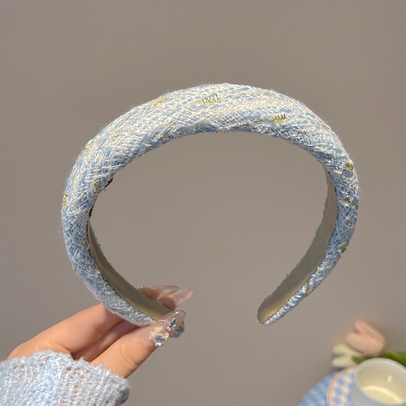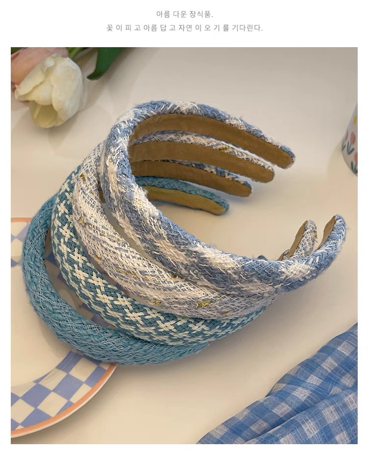 蓝色系针织格纹高颅顶压发头箍时尚百搭发饰防滑发捆头饰秋发箍女
