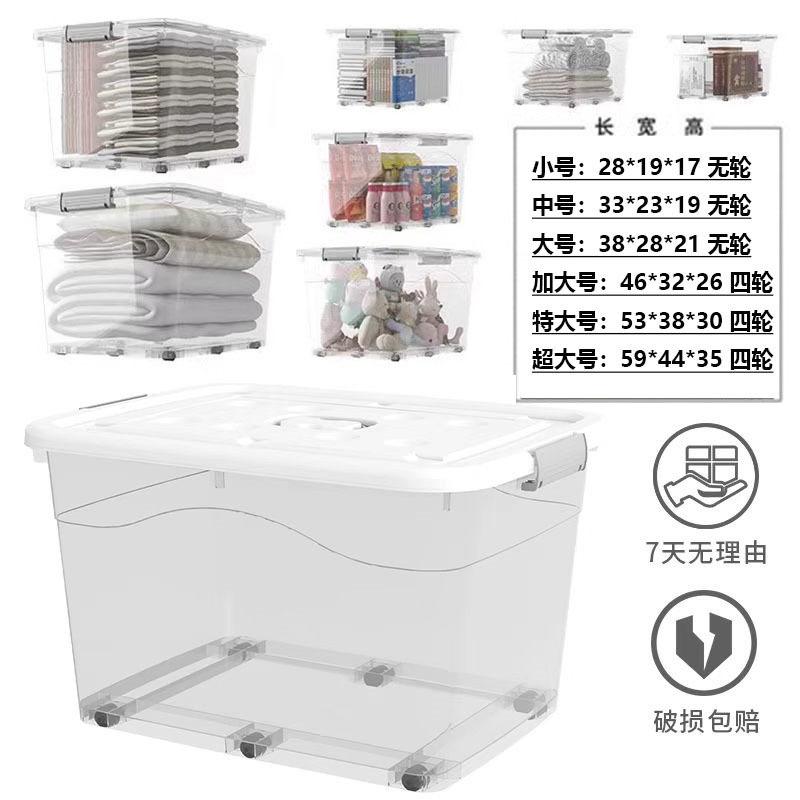 收纳箱家用储物箱透明杂物玩具收纳盒大号衣服整理箱零食箱批发
