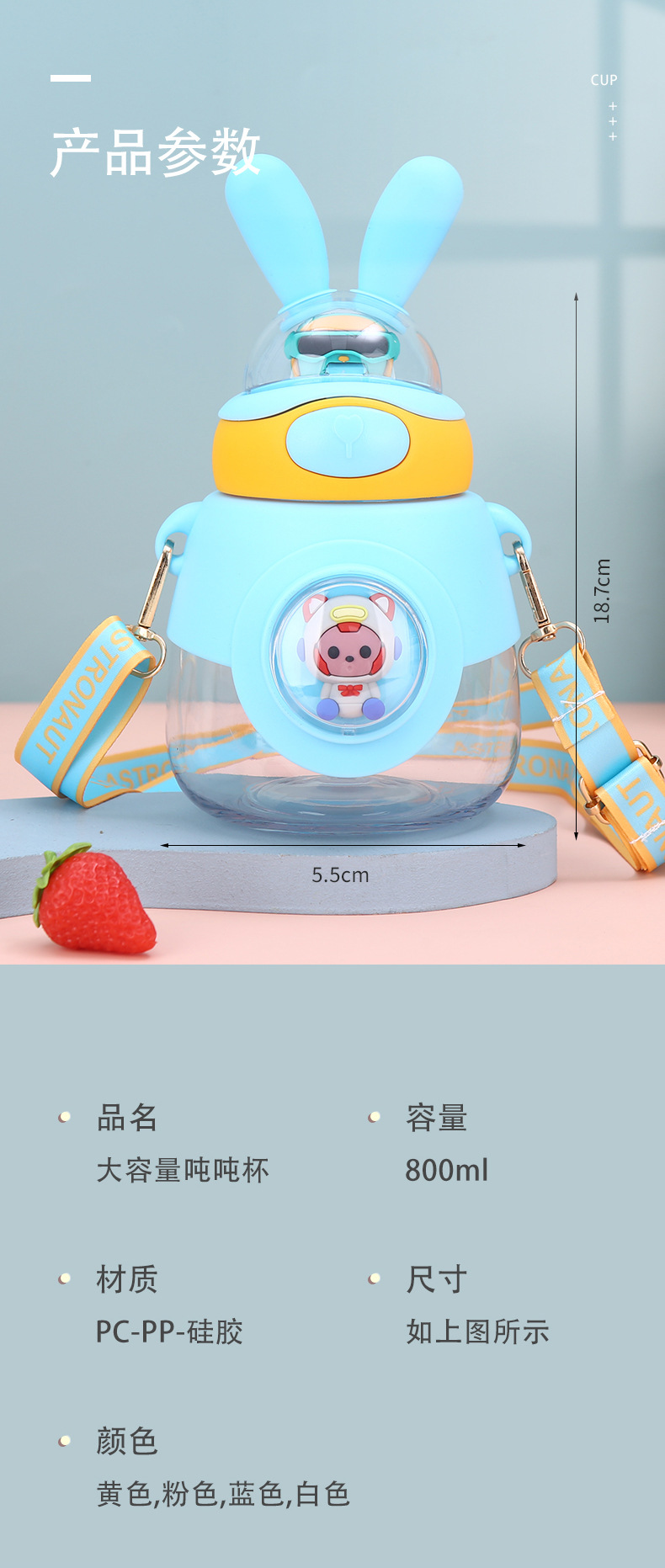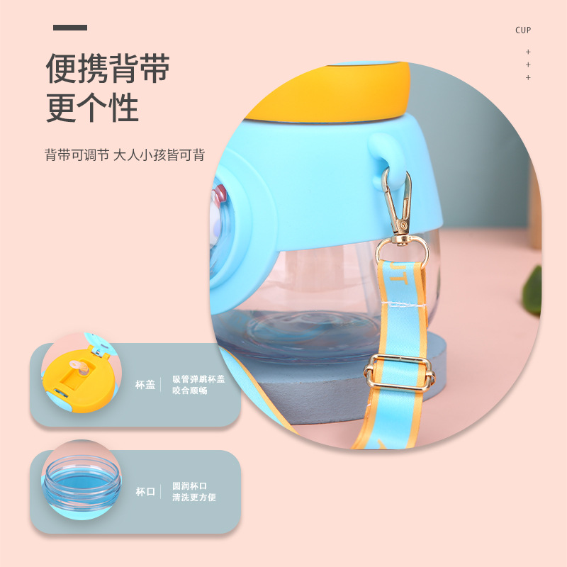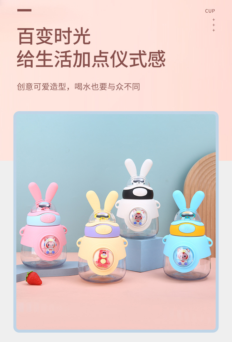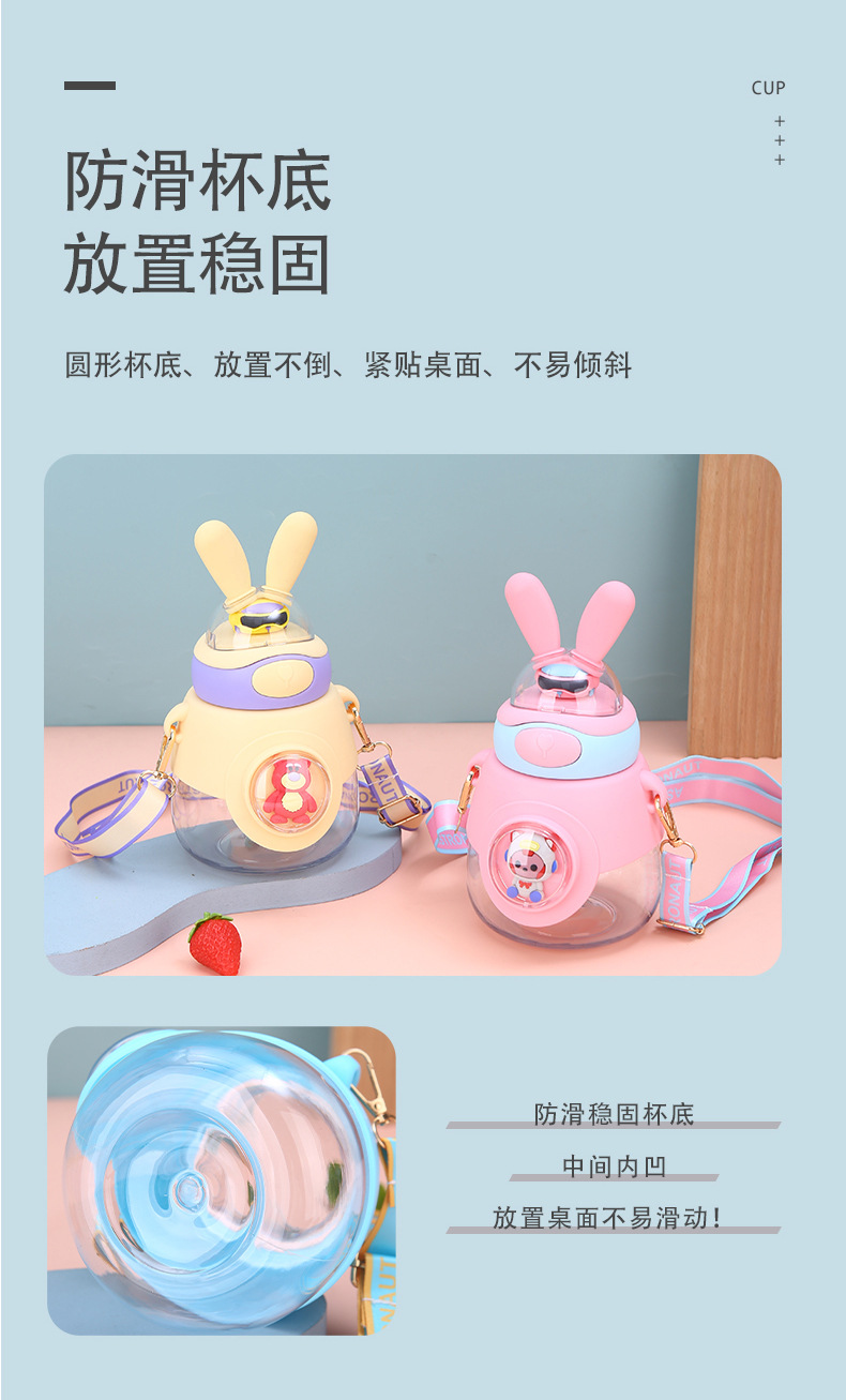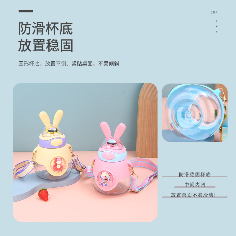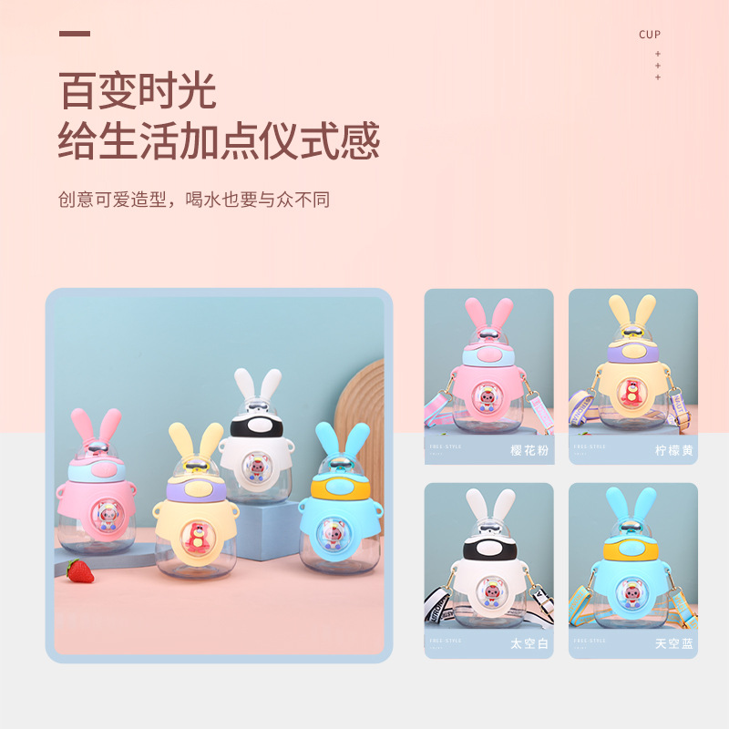 新款兔耳弹跳水杯户外背带便携大容量吨吨杯高颜值儿童吸管杯
