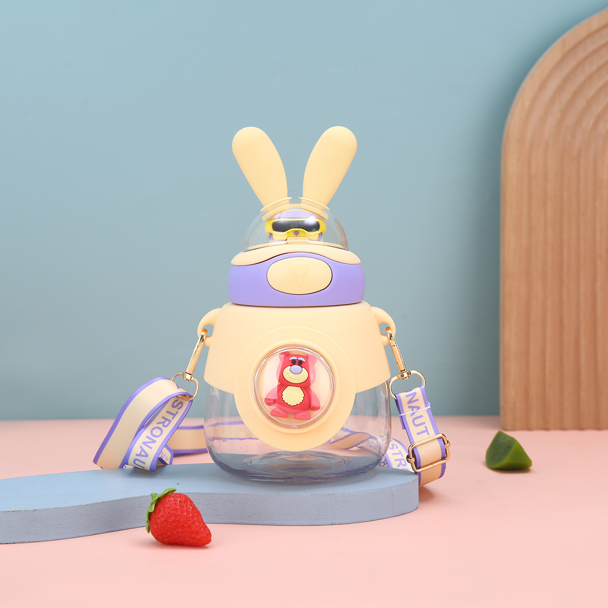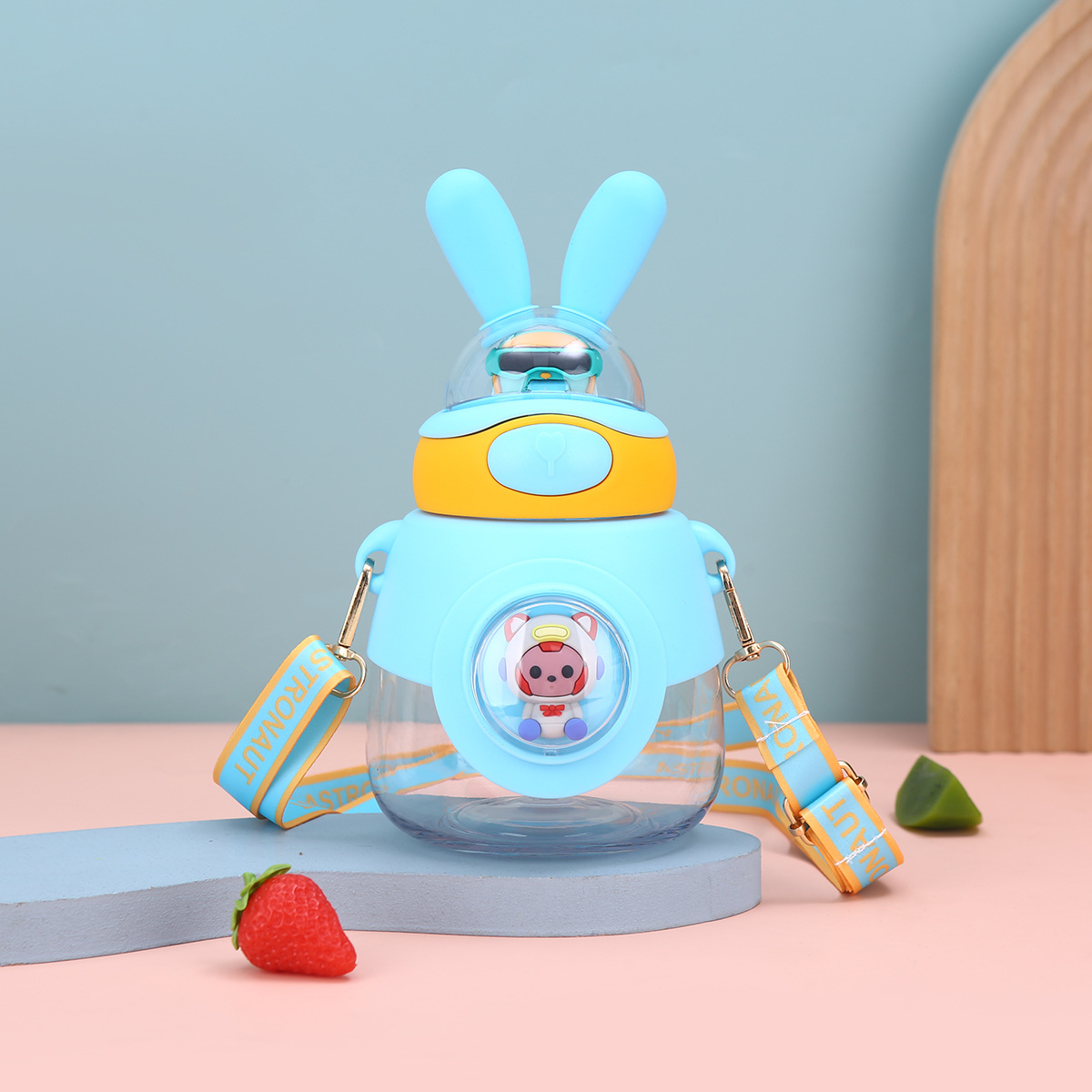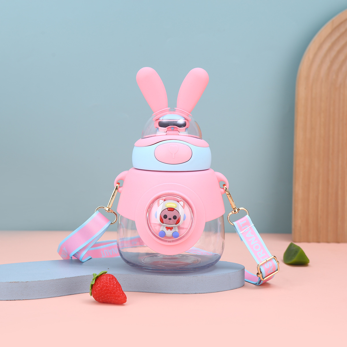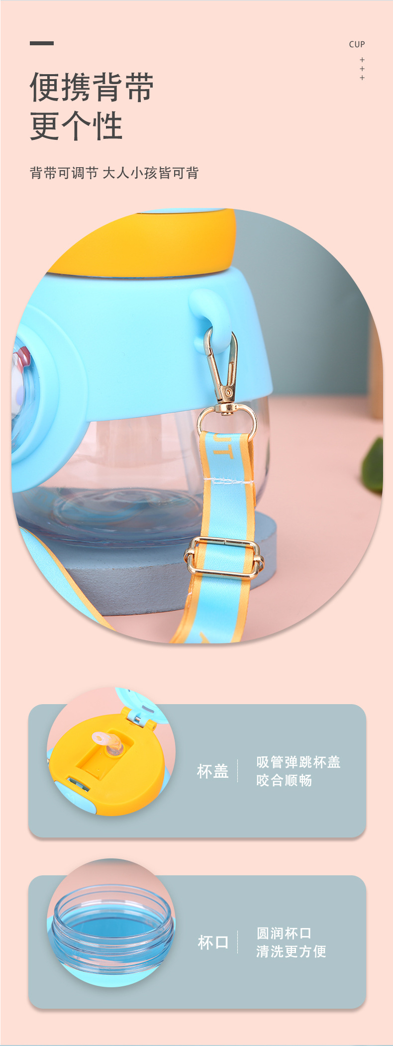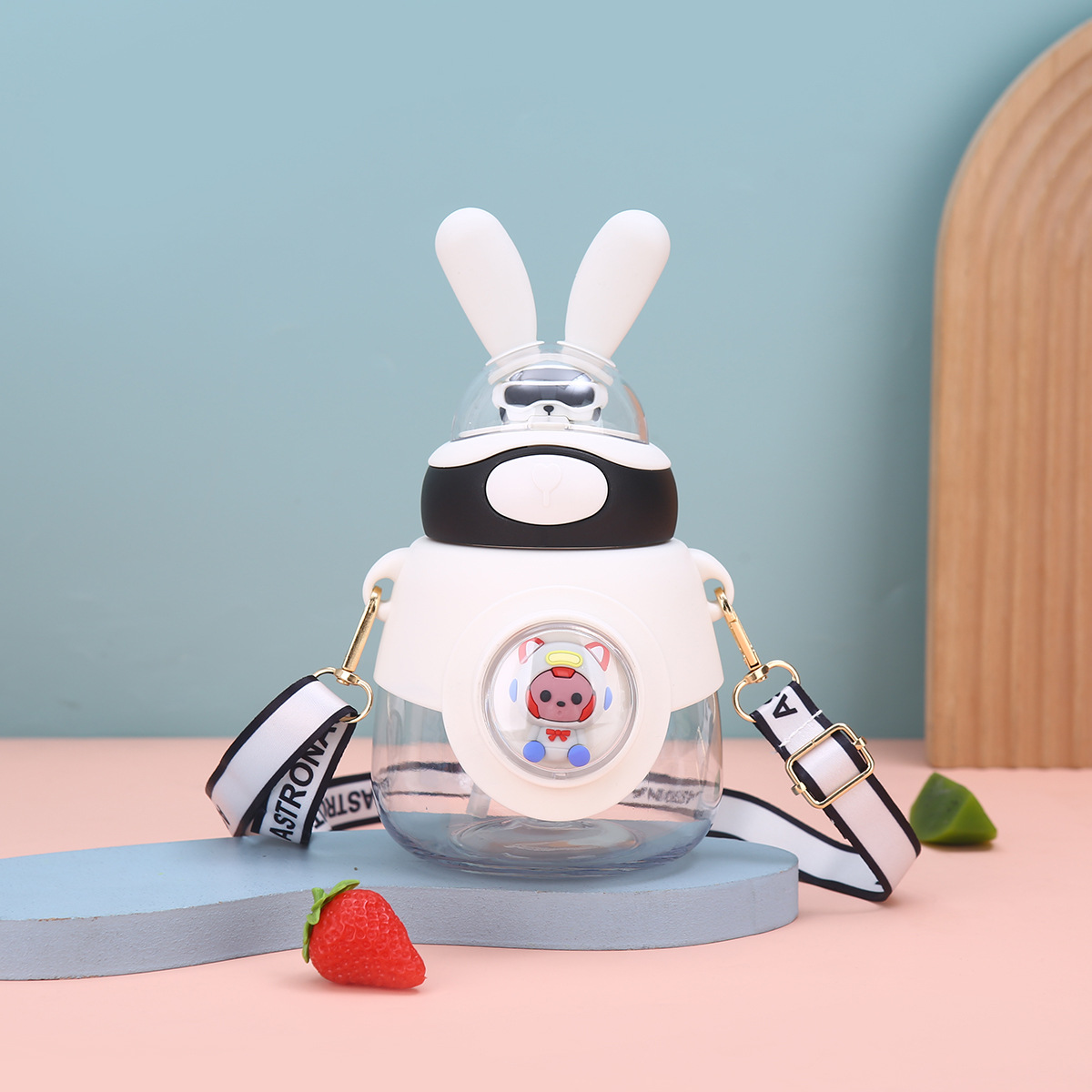 新款兔耳弹跳水杯户外背带便携大容量吨吨杯高颜值儿童吸管杯