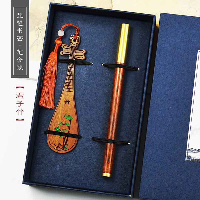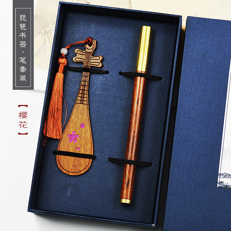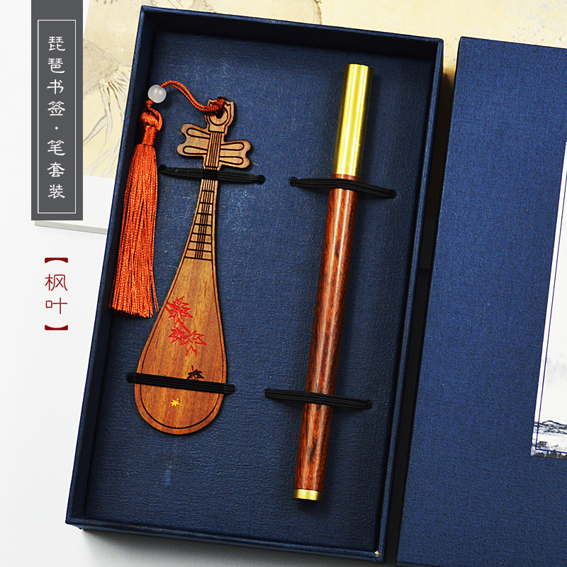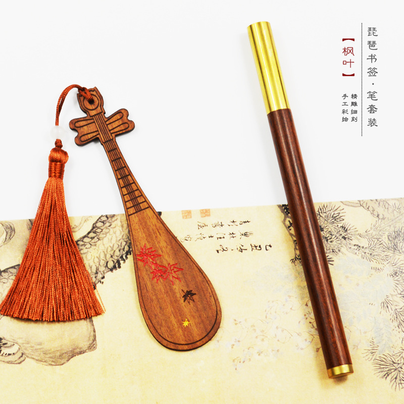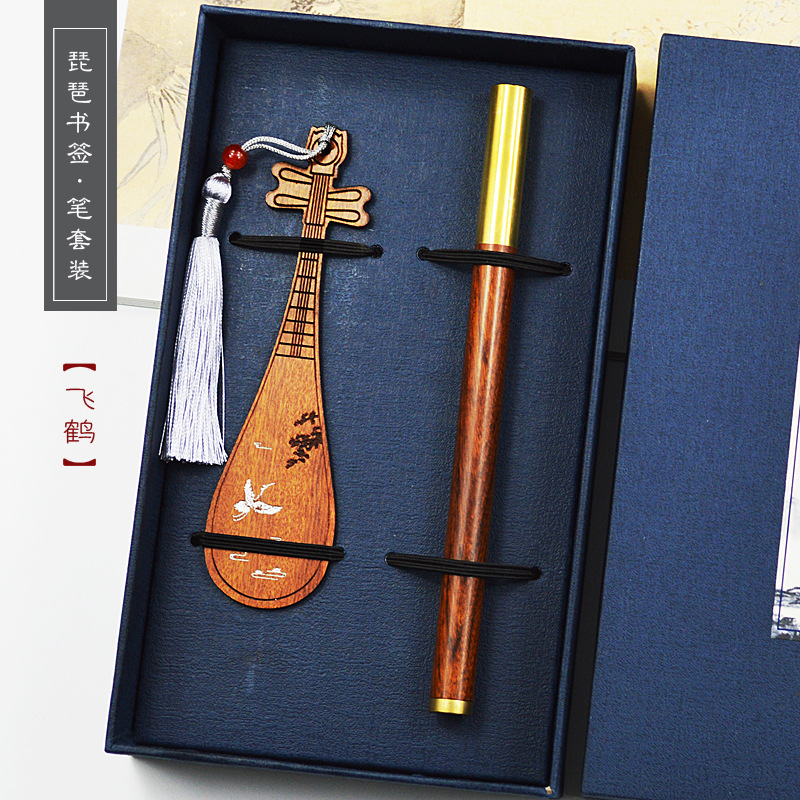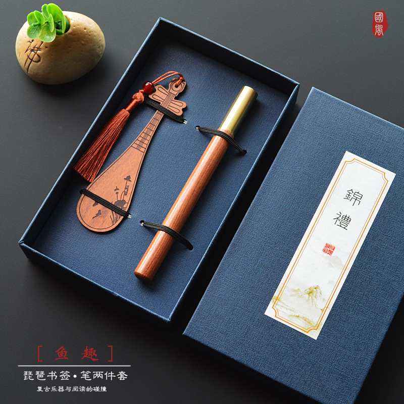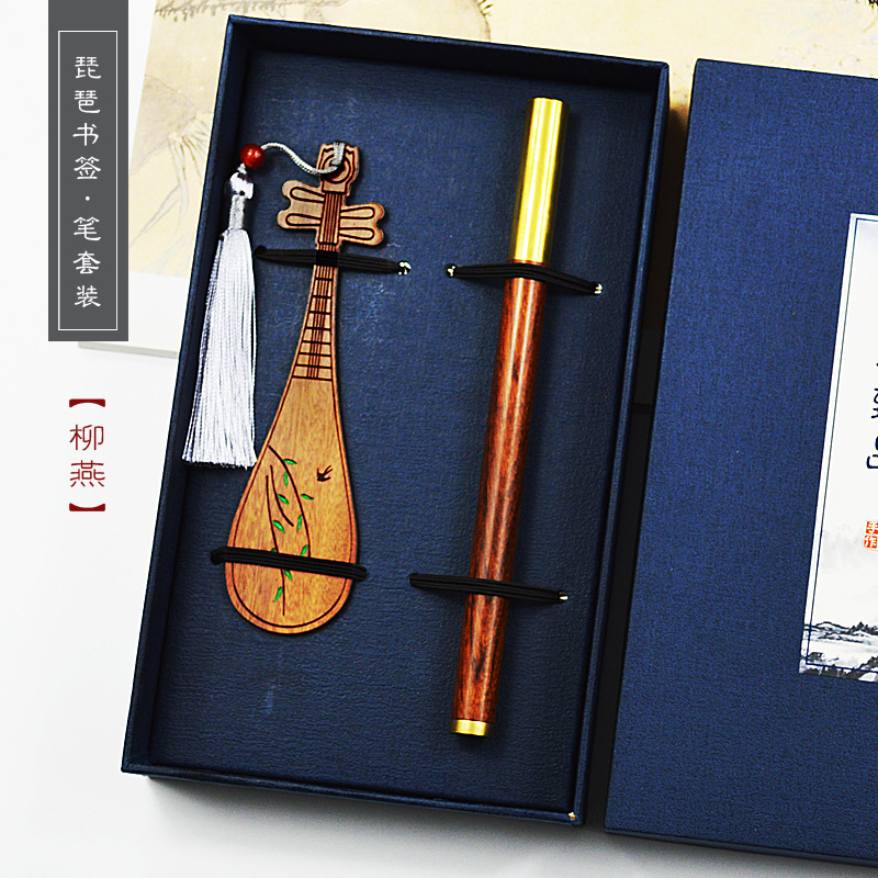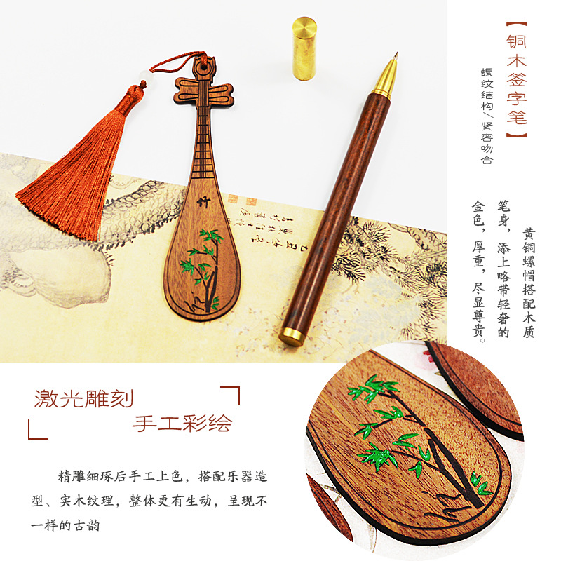 中国风木质琵琶书签笔礼盒雕刻毕业纪念品乐器书签套装定制logo
