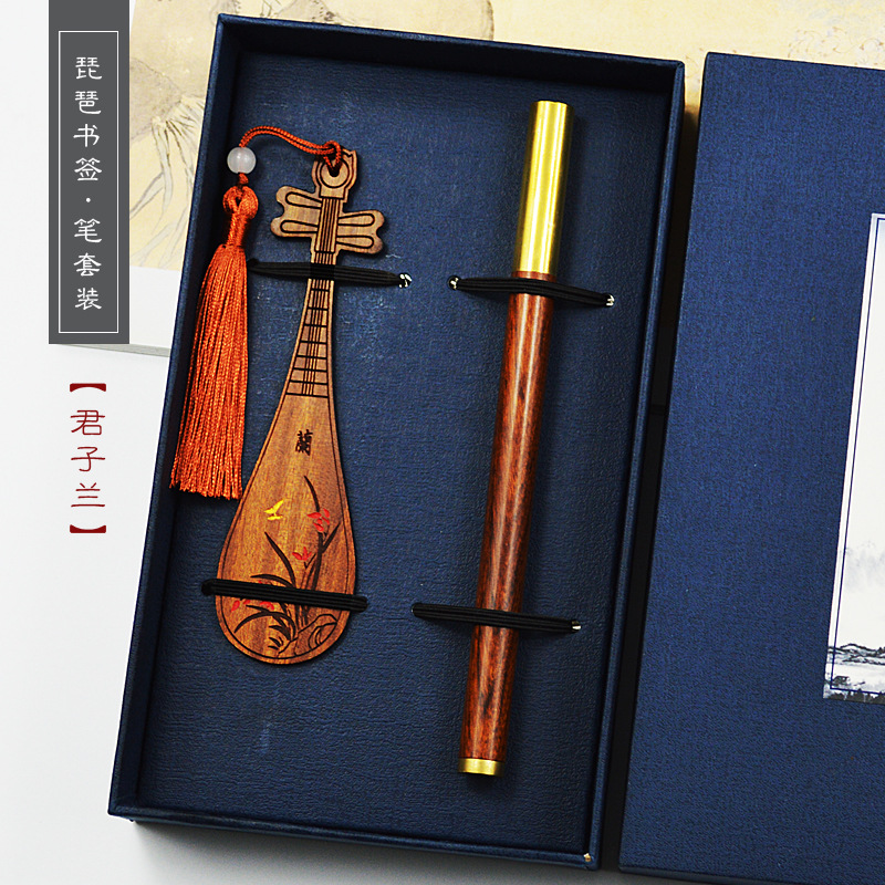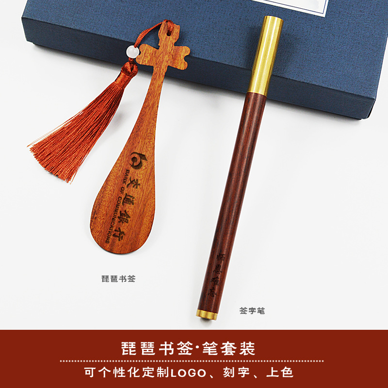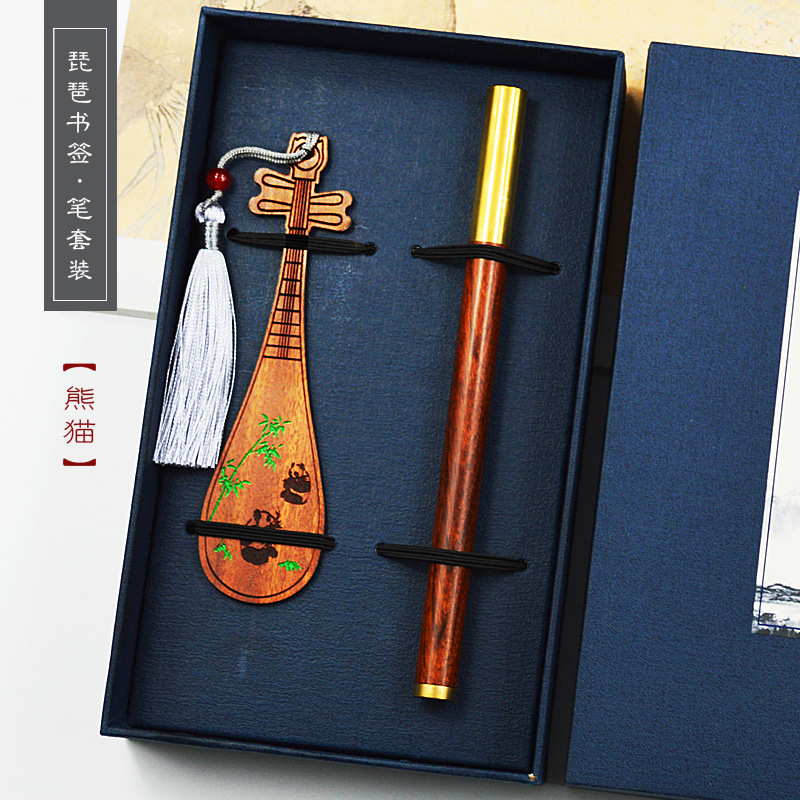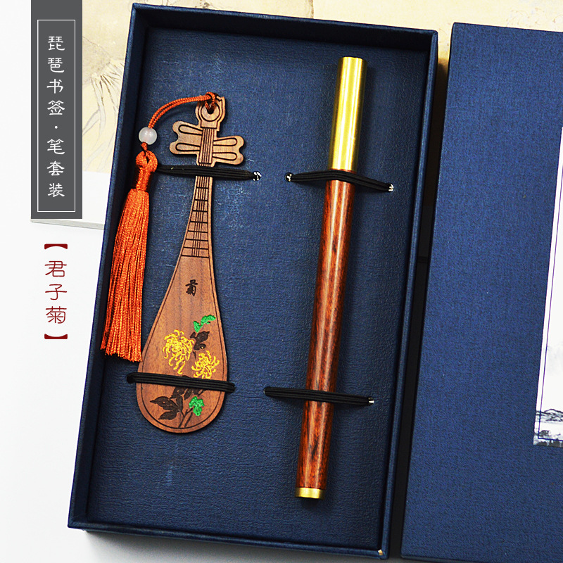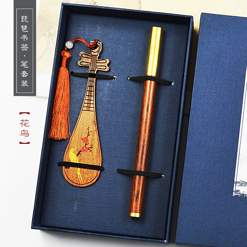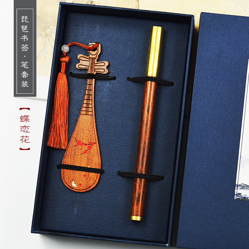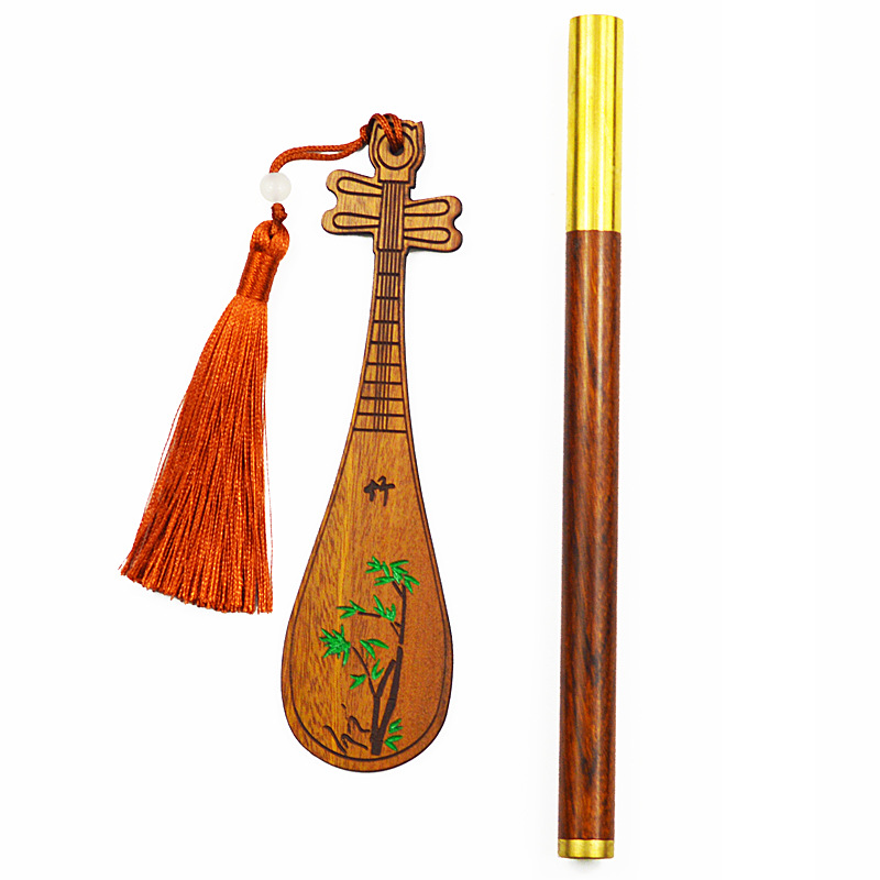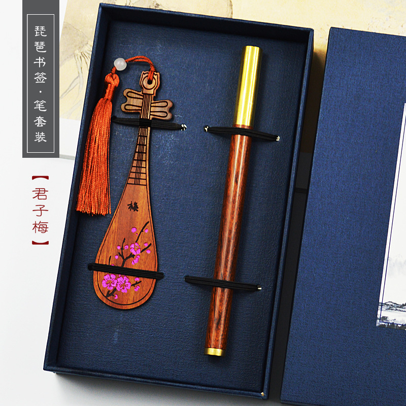 中国风木质琵琶书签笔礼盒雕刻毕业纪念品乐器书签套装定制logo