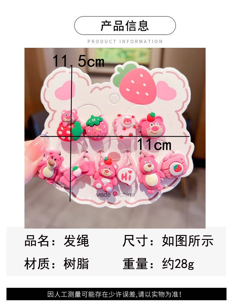 儿童发圈草莓熊发绳手工扎头发橡皮筋卡通树脂头绳饰品发饰头饰
