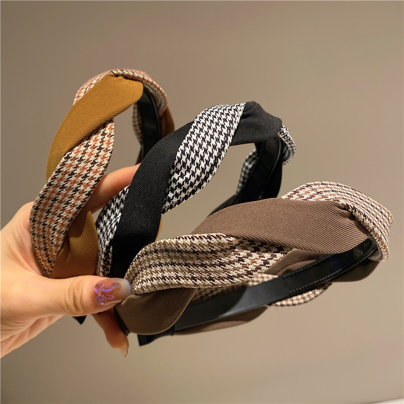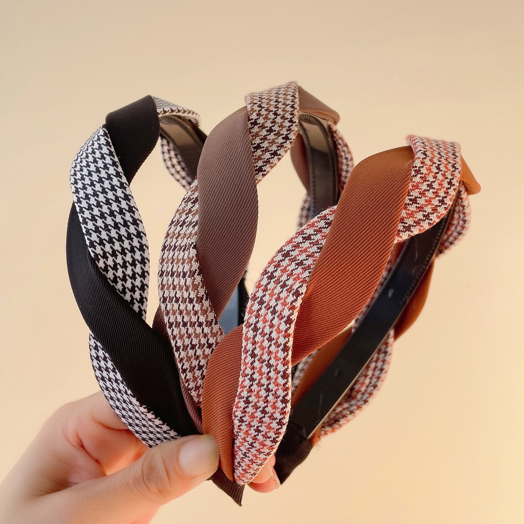 新款春夏麻花发箍发饰拼色简约布艺头饰防滑洗脸外戴百搭发箍批发