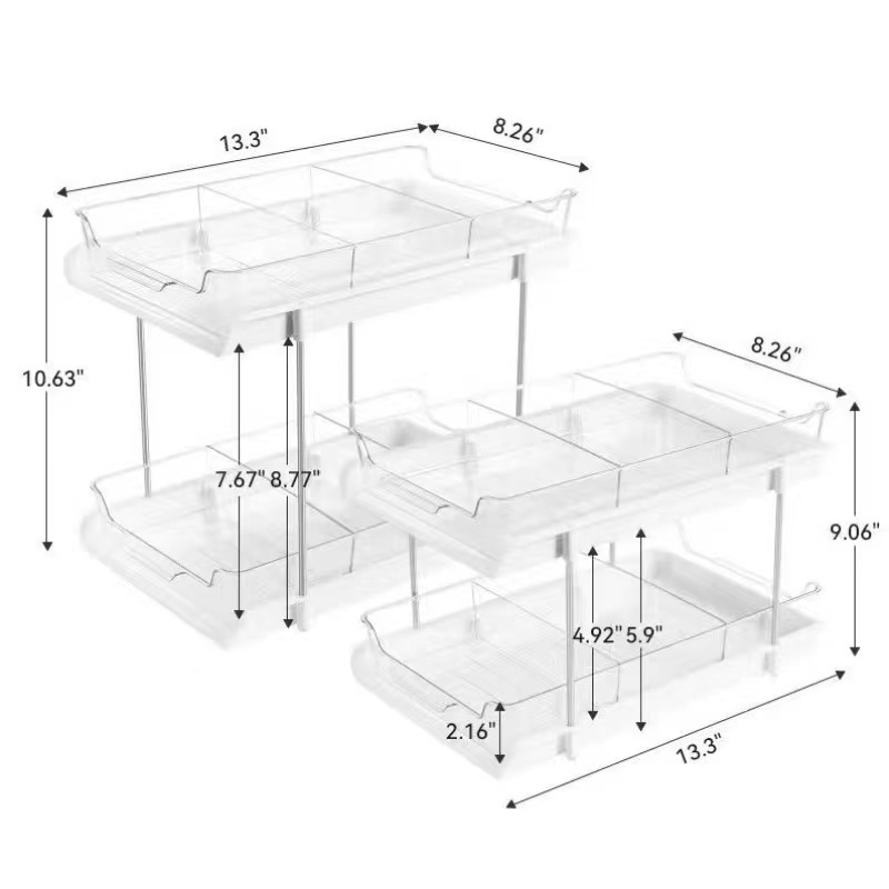亚马逊爆款厨房水槽下双层置物架 浴室可抽拉带抽屉多功能置物架