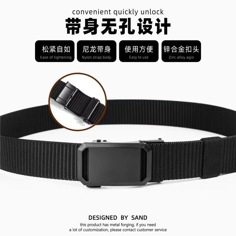 男士无牙自动扣帆布腰带仿尼龙户外休闲军训裤腰带百搭战术皮带