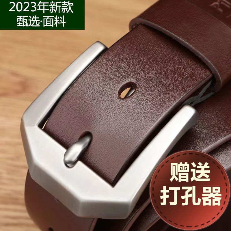 【送打孔器】男士皮带纯皮针扣男牛仔简约复古休闲百搭真皮裤腰带