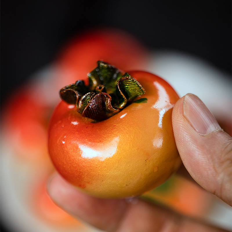 宜兴紫砂茶宠柿子摆件茶玩可养雕塑茶具配件手工变色事事如意批发