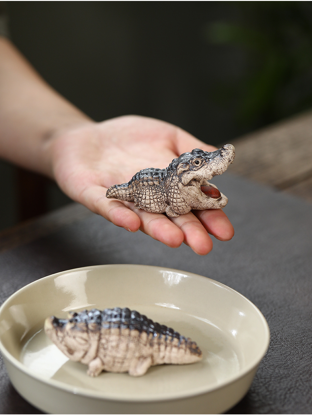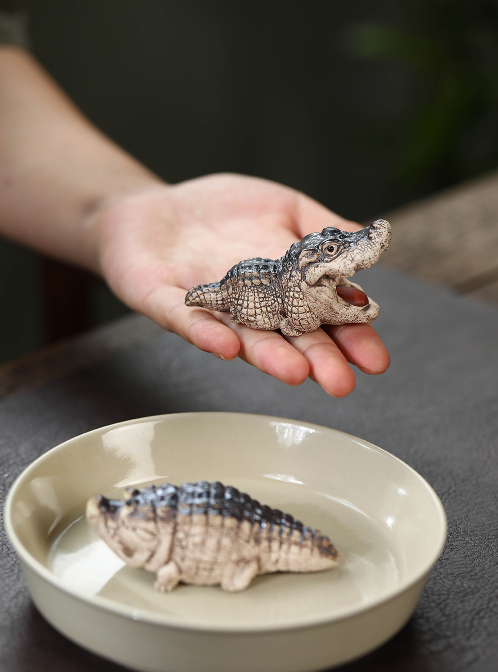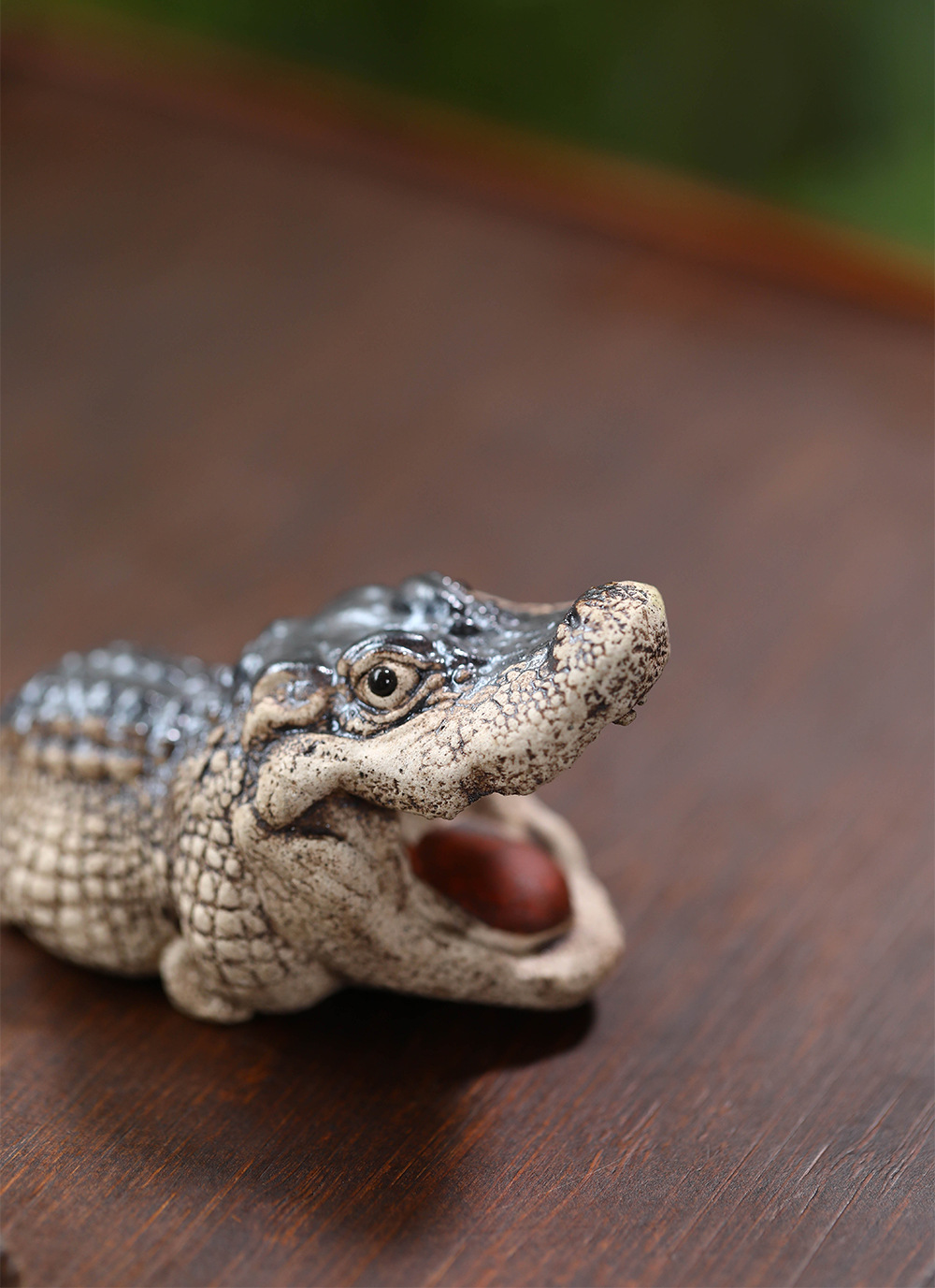 宜兴紫砂茶宠小摆件金融大鳄茶道茶具配件茶桌茶玩可养大嘴鳄