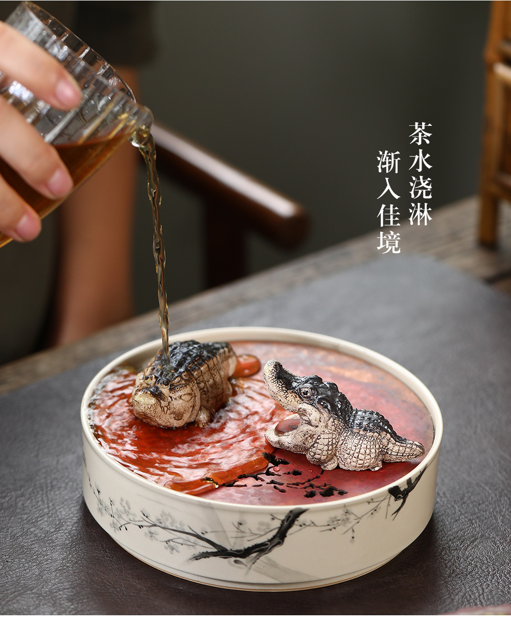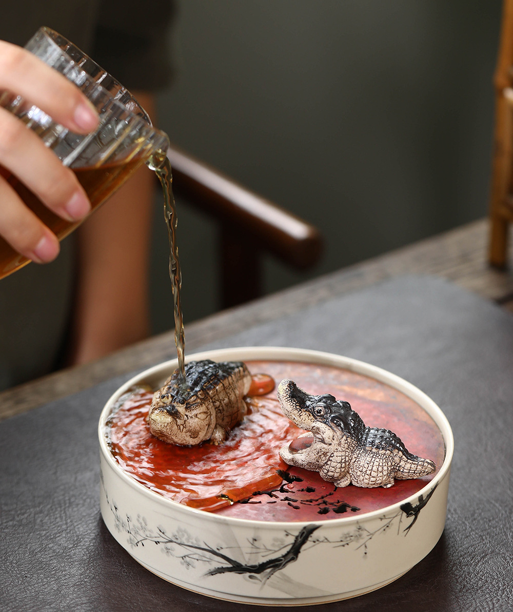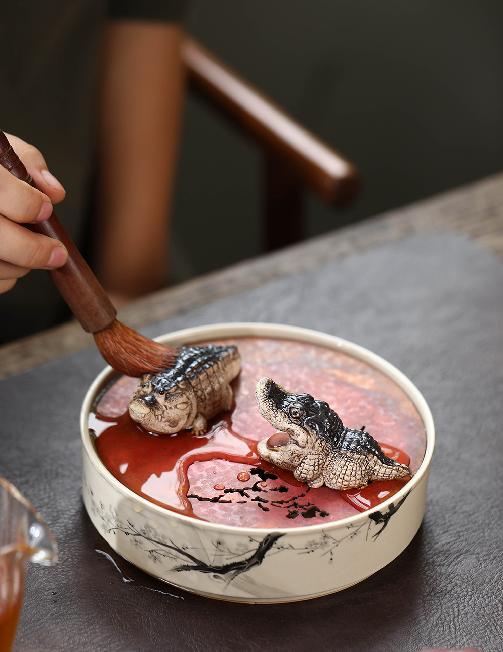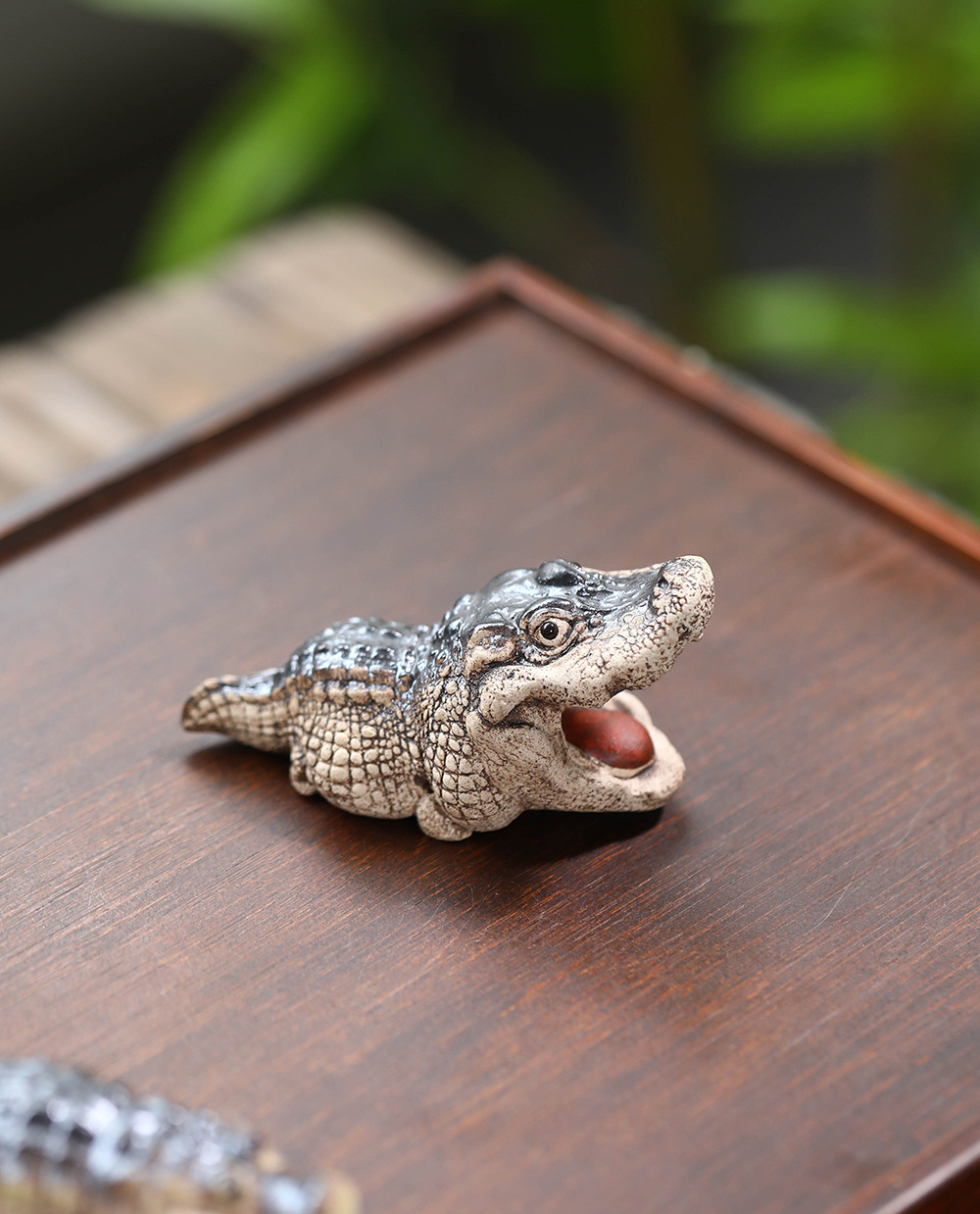 宜兴紫砂茶宠小摆件金融大鳄茶道茶具配件茶桌茶玩可养大嘴鳄