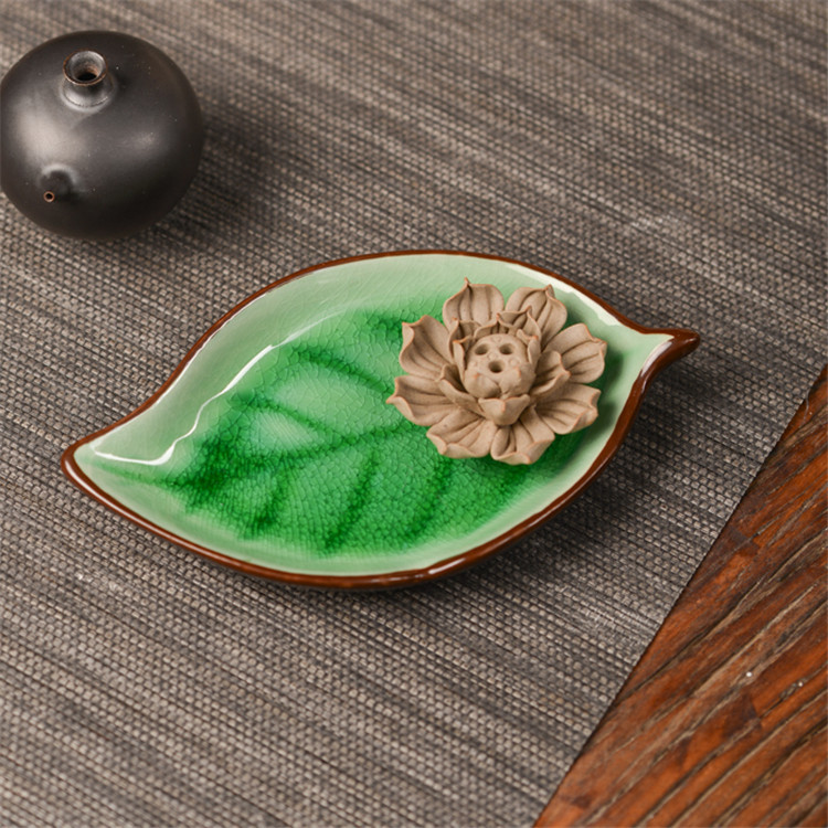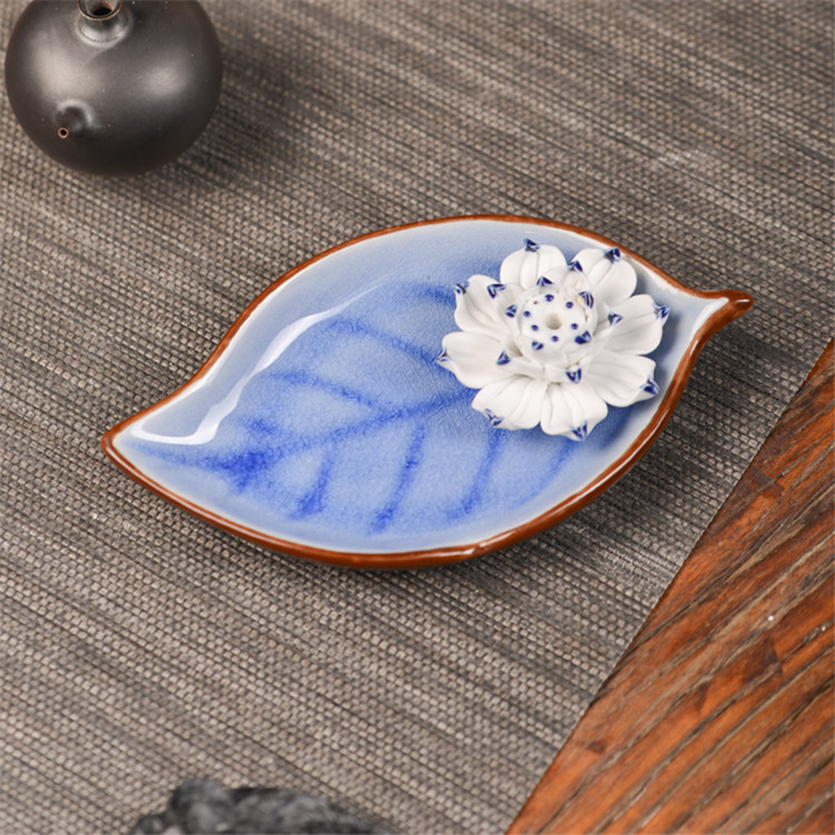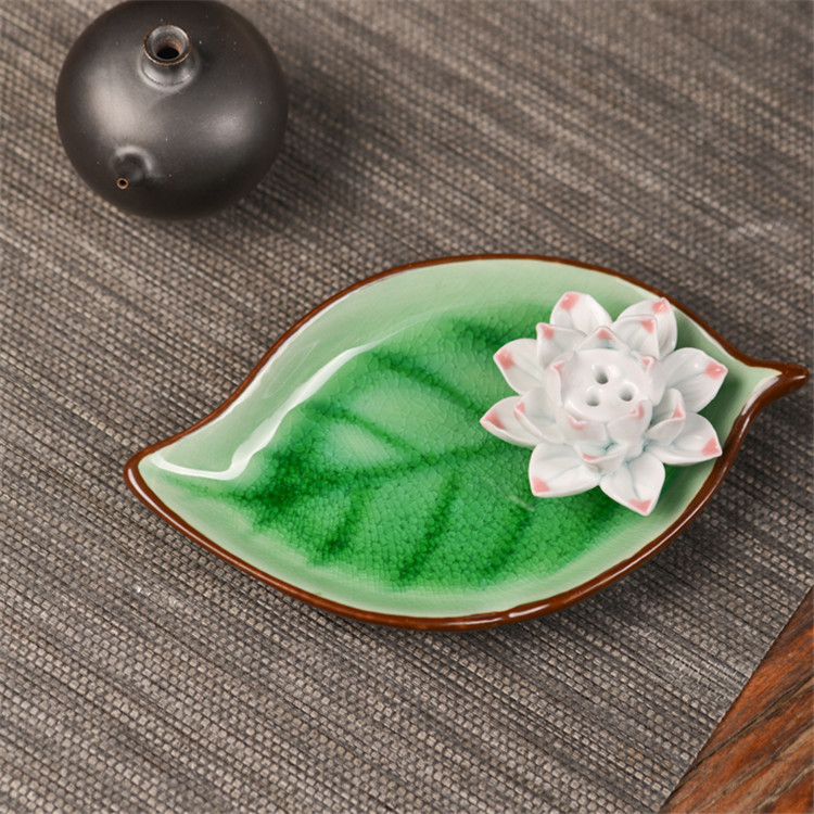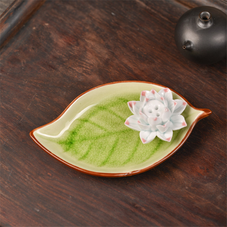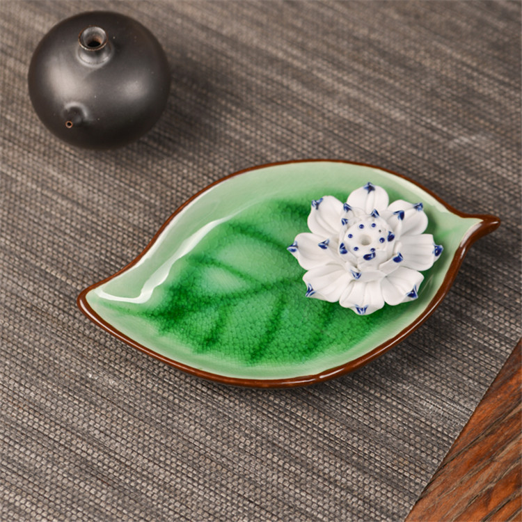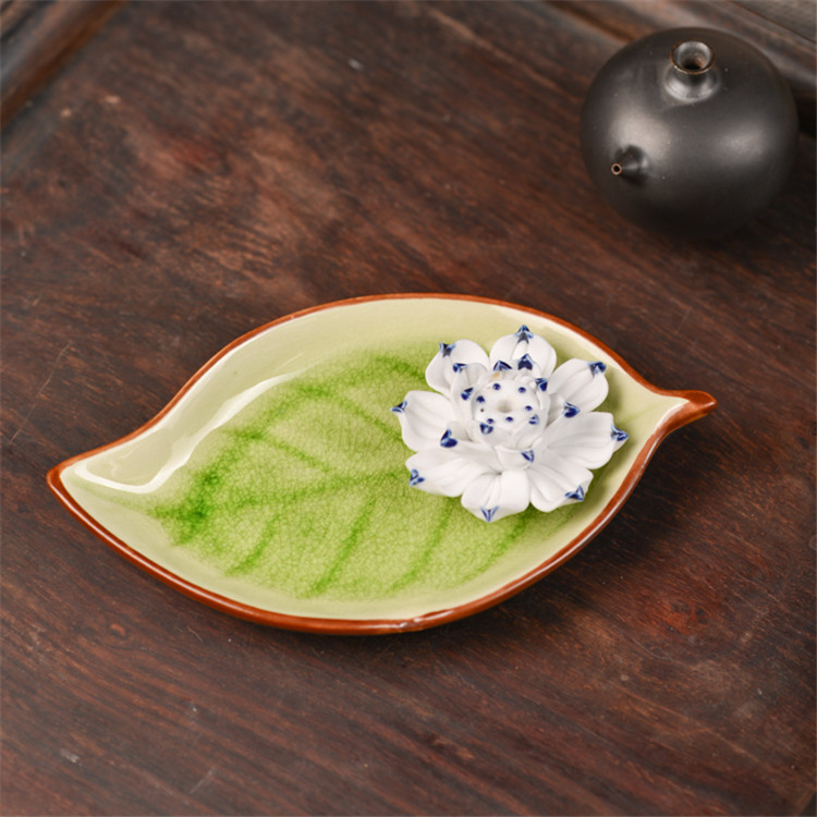 陶瓷香盘 香插 大树叶 摆件装饰品 陶瓷摆件