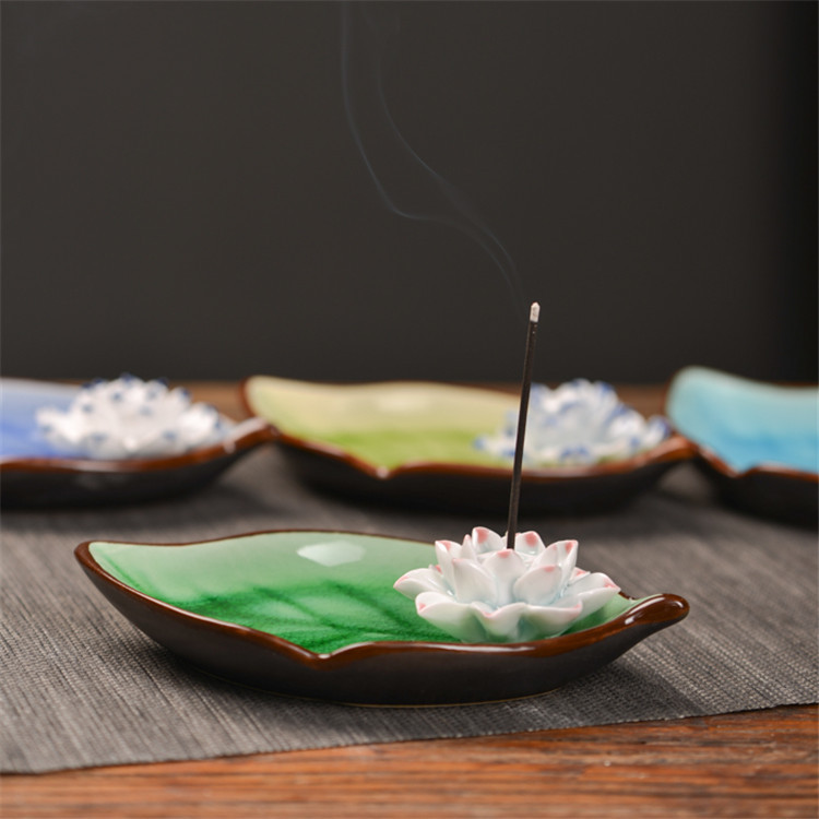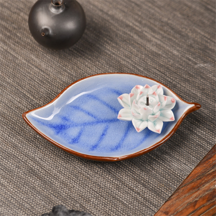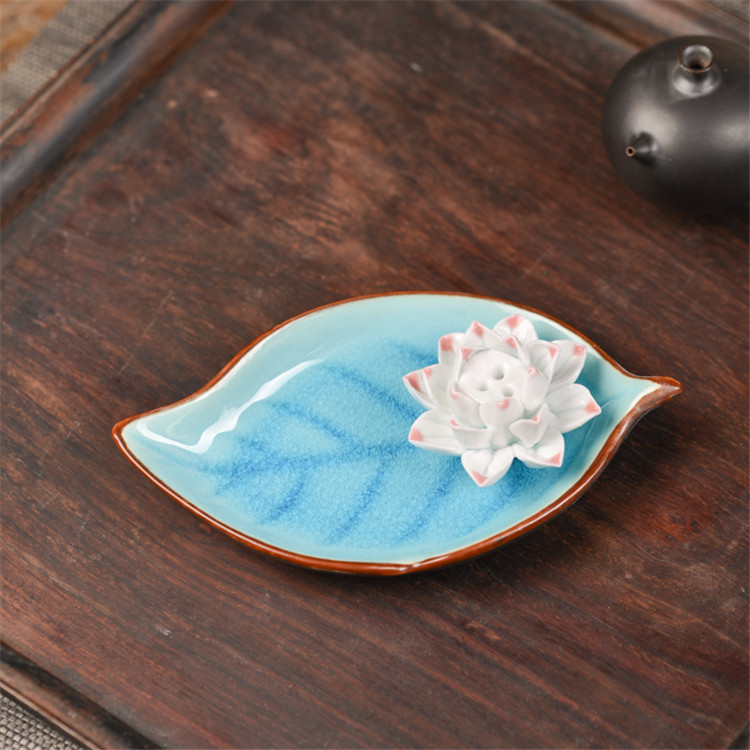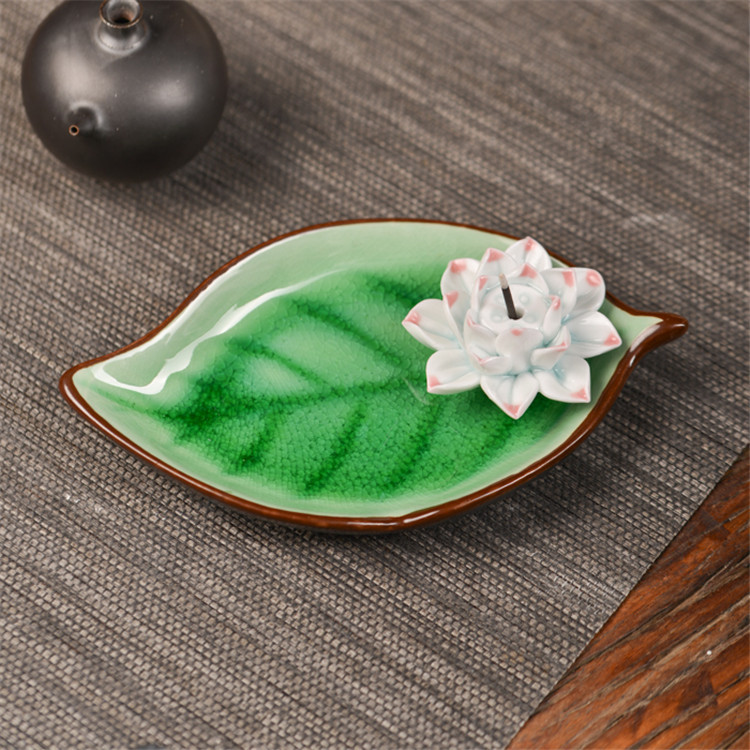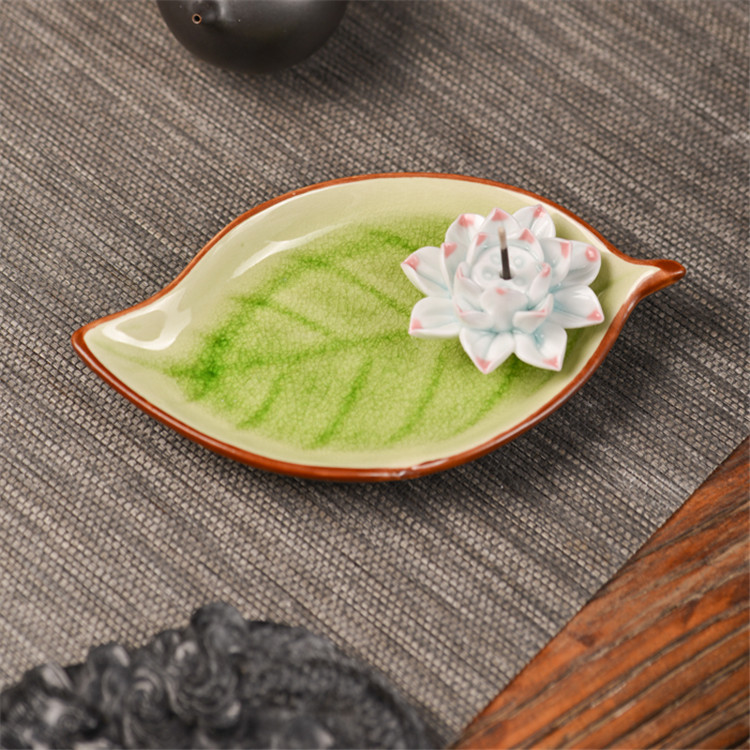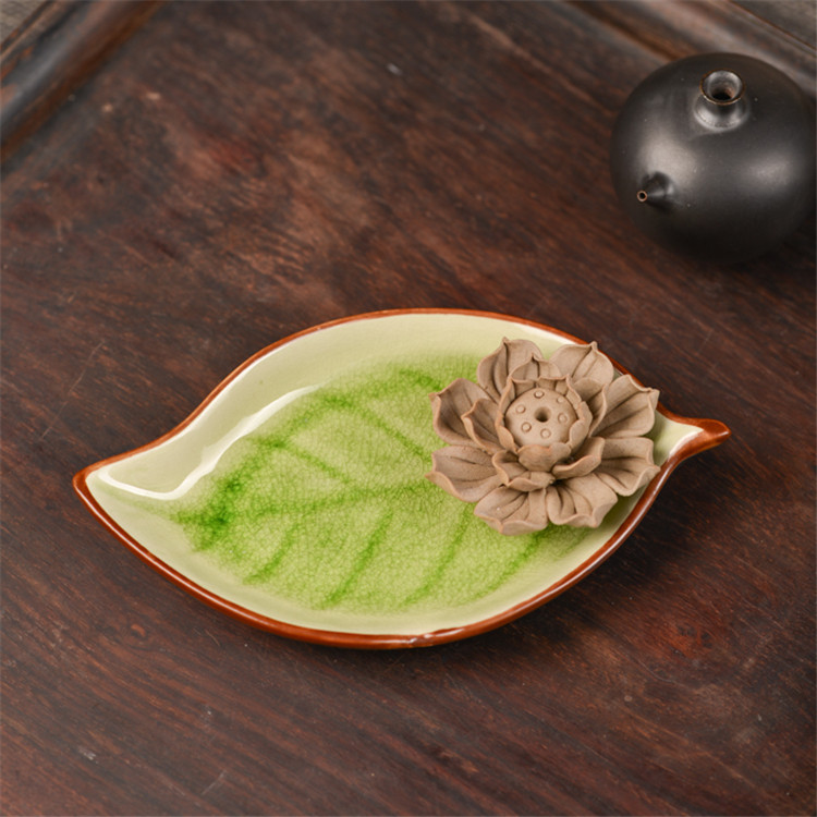 陶瓷香盘 香插 大树叶 摆件装饰品 陶瓷摆件