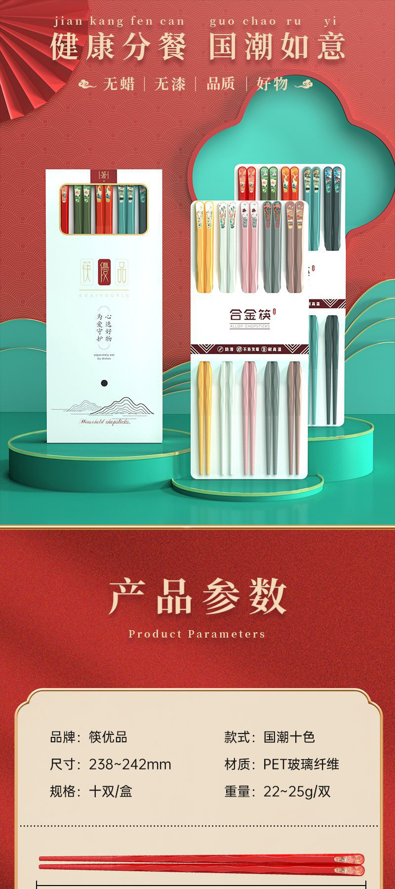 国潮家用分餐筷一人一筷高颜值10双十色合金筷餐具耐高温商用筷子