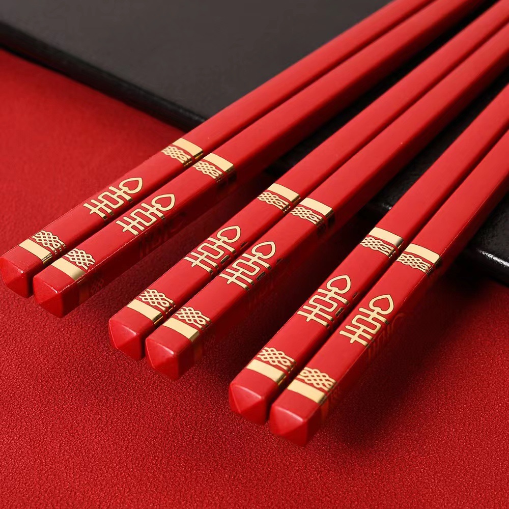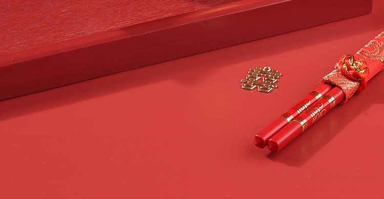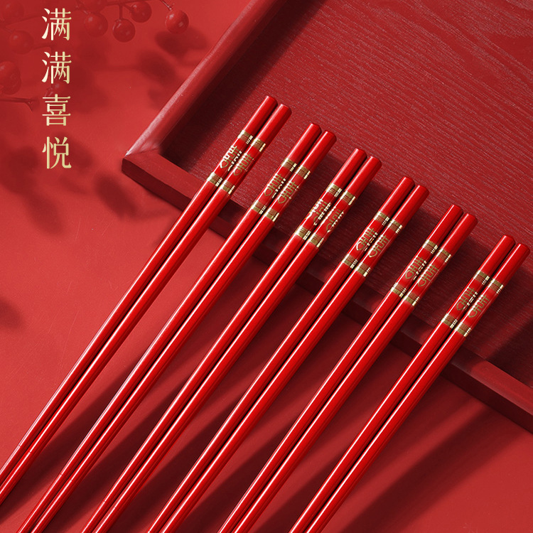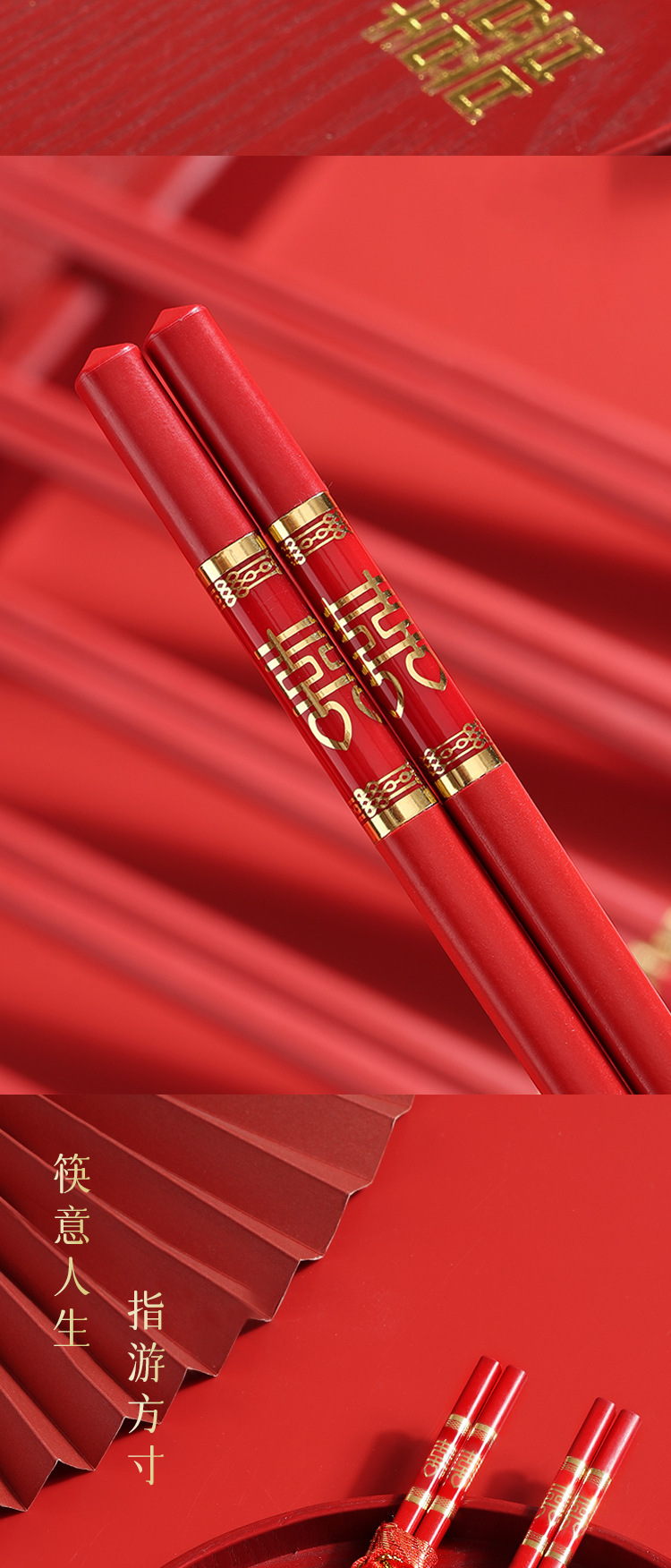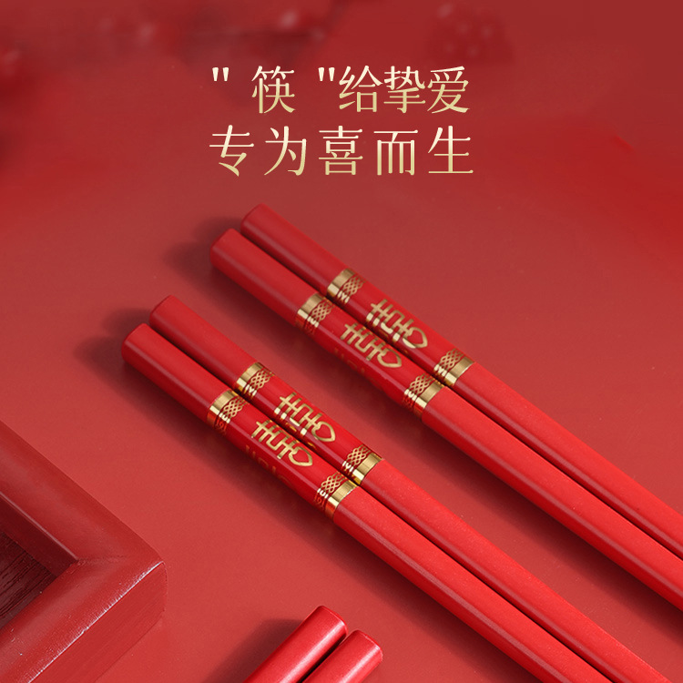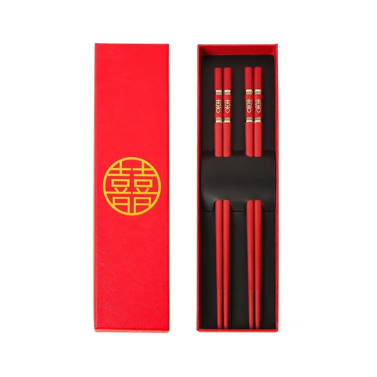 结婚喜字红色筷子盒装高档防滑合金筷子喜庆乔迁龙凤喜筷家用婚礼